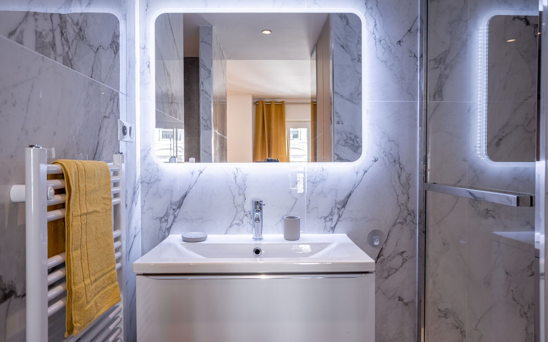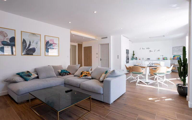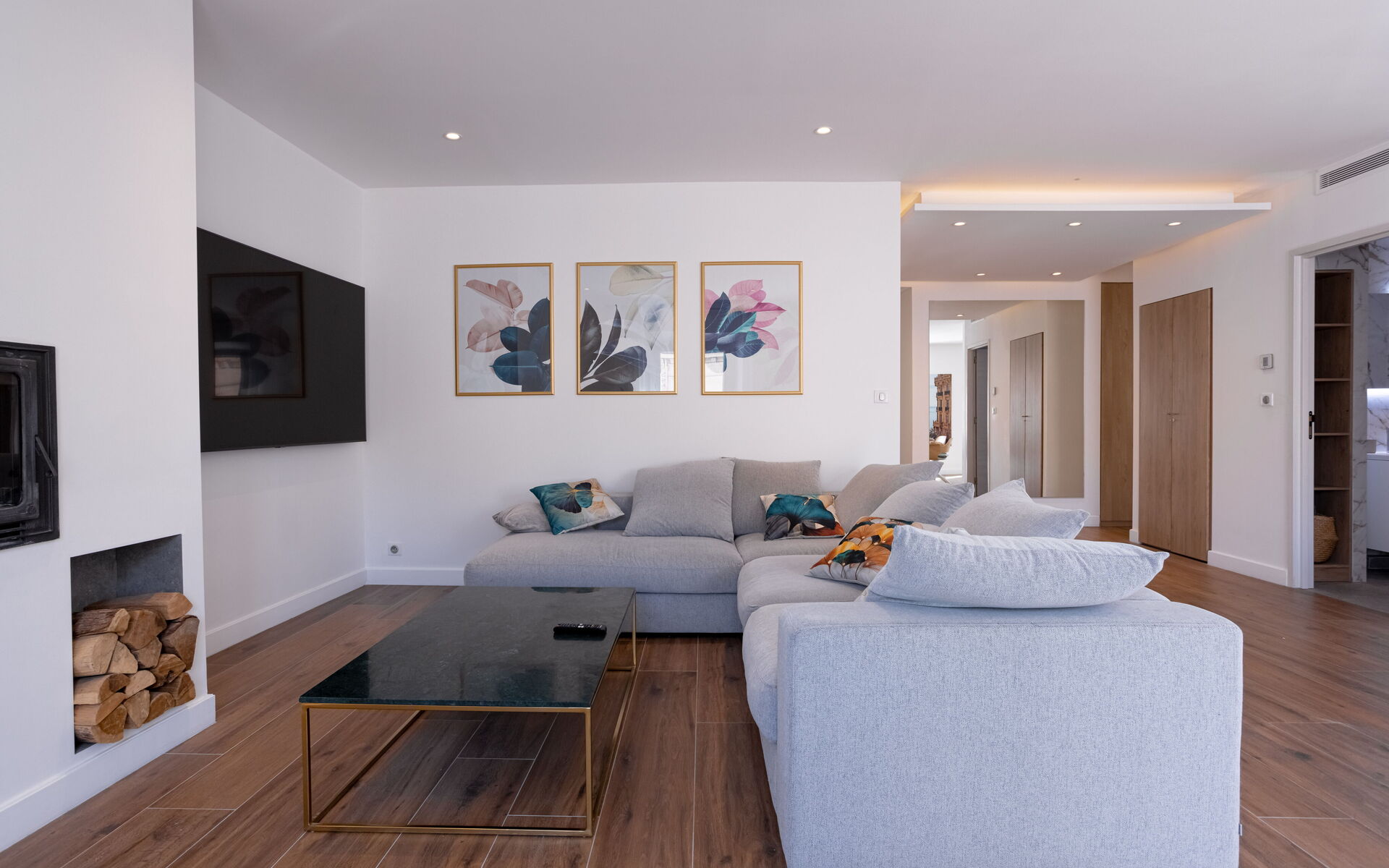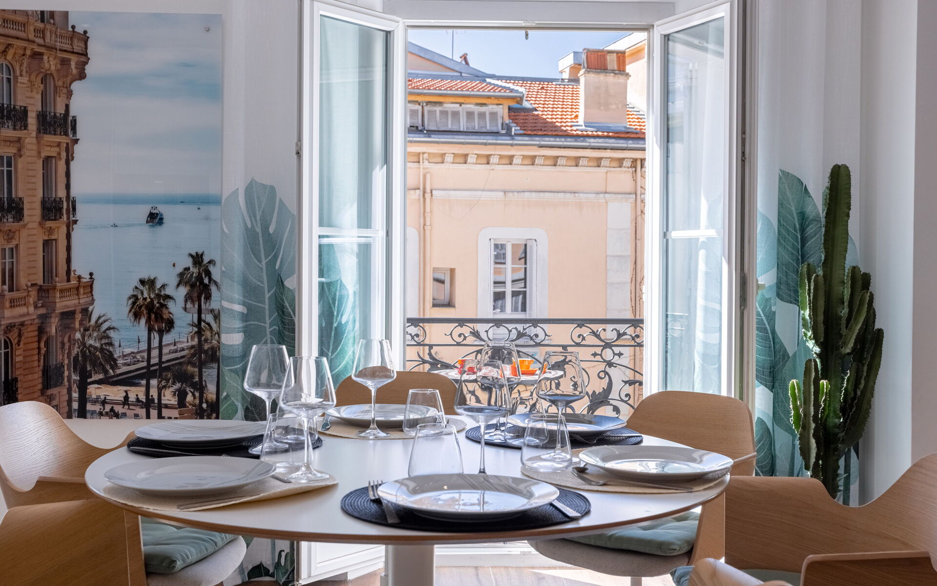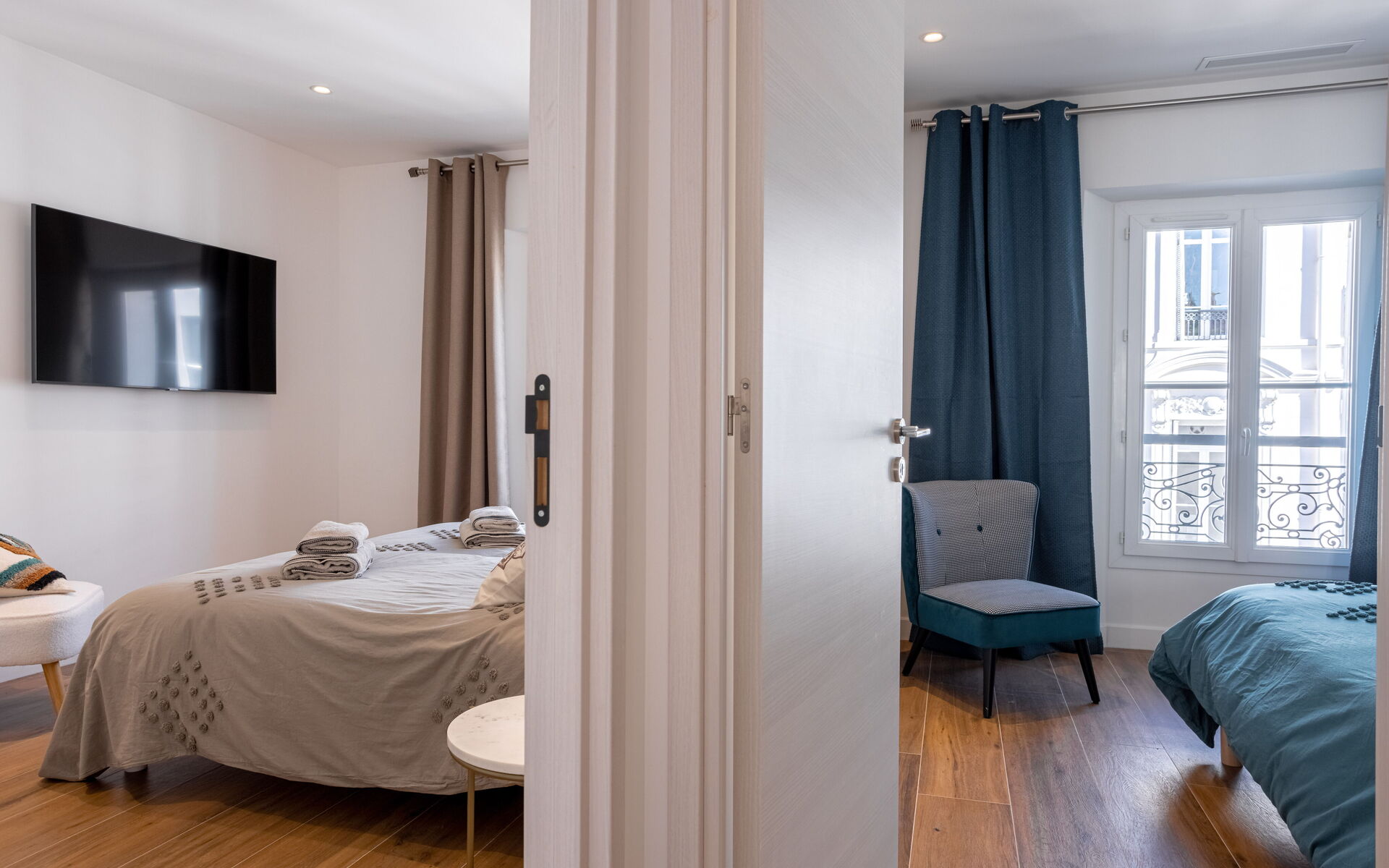 Ce luxueux appartement 5**** entièrement rénové avec climatisation et balcon est situé rue d’Antibes.