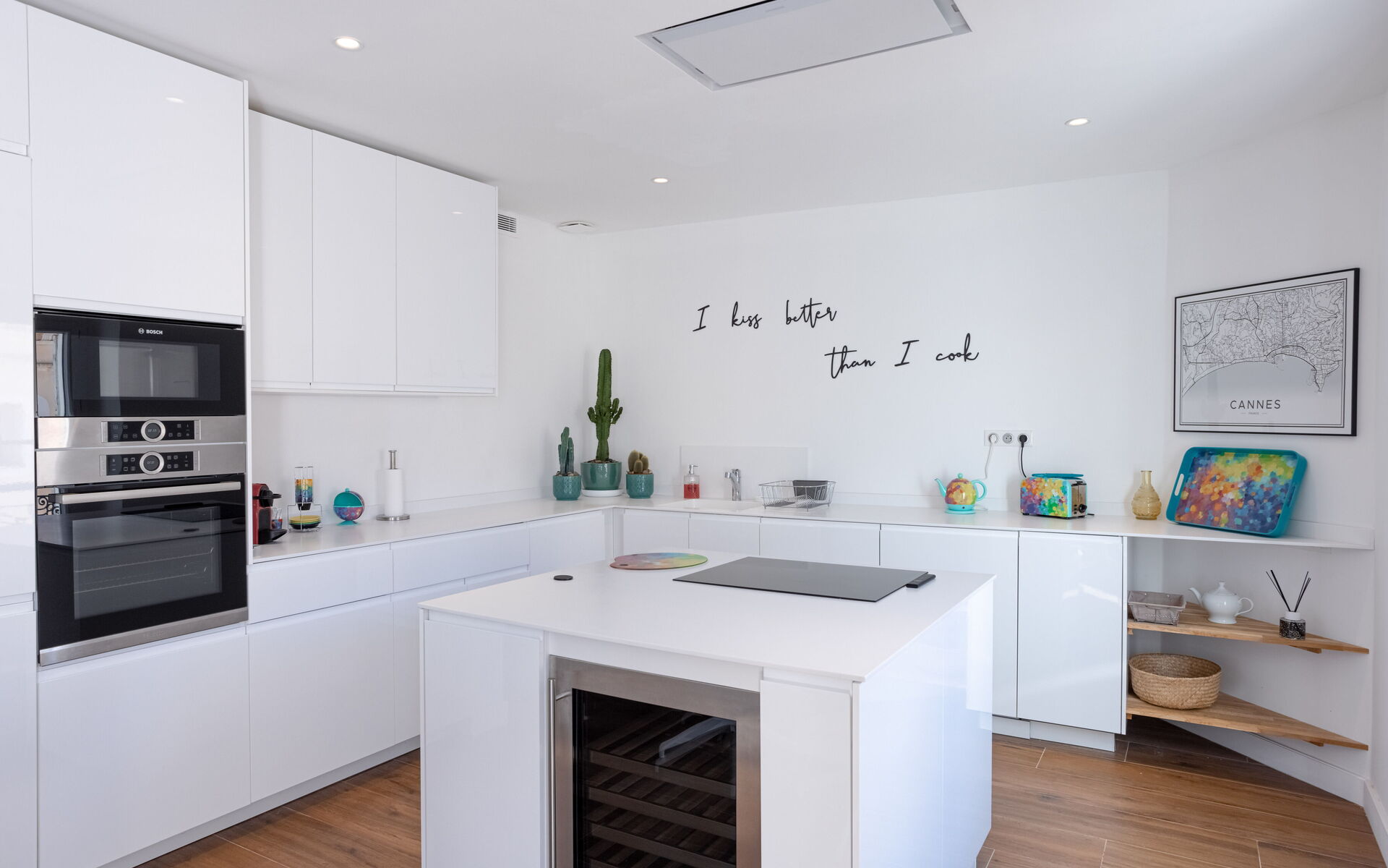 - Cuisine Américaine: frigo + bouilloire + toaster + micro-ondes + Nespresso + four + lave vaiselle