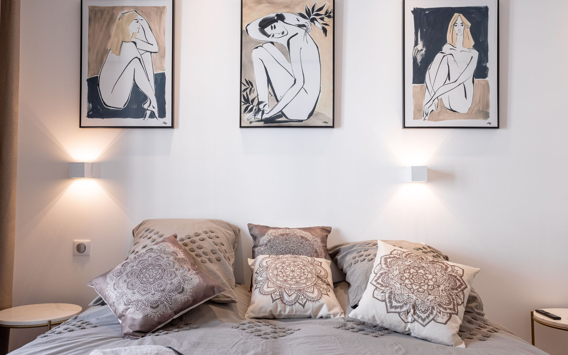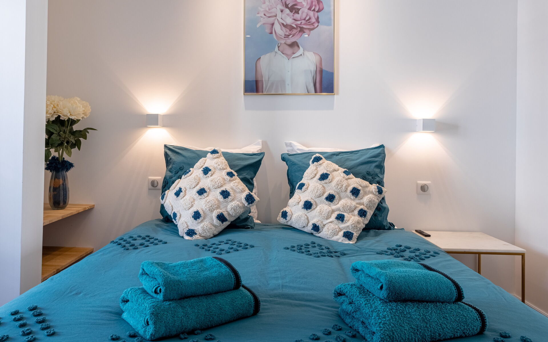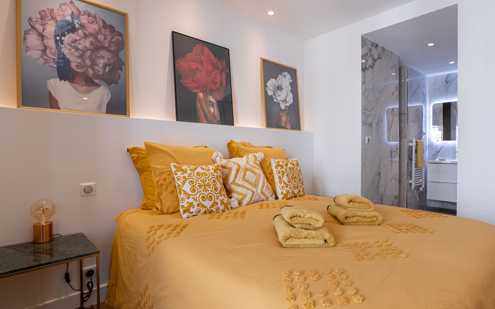 - Chambre 1: lit qeen size (160X200) + salle de douche attenante