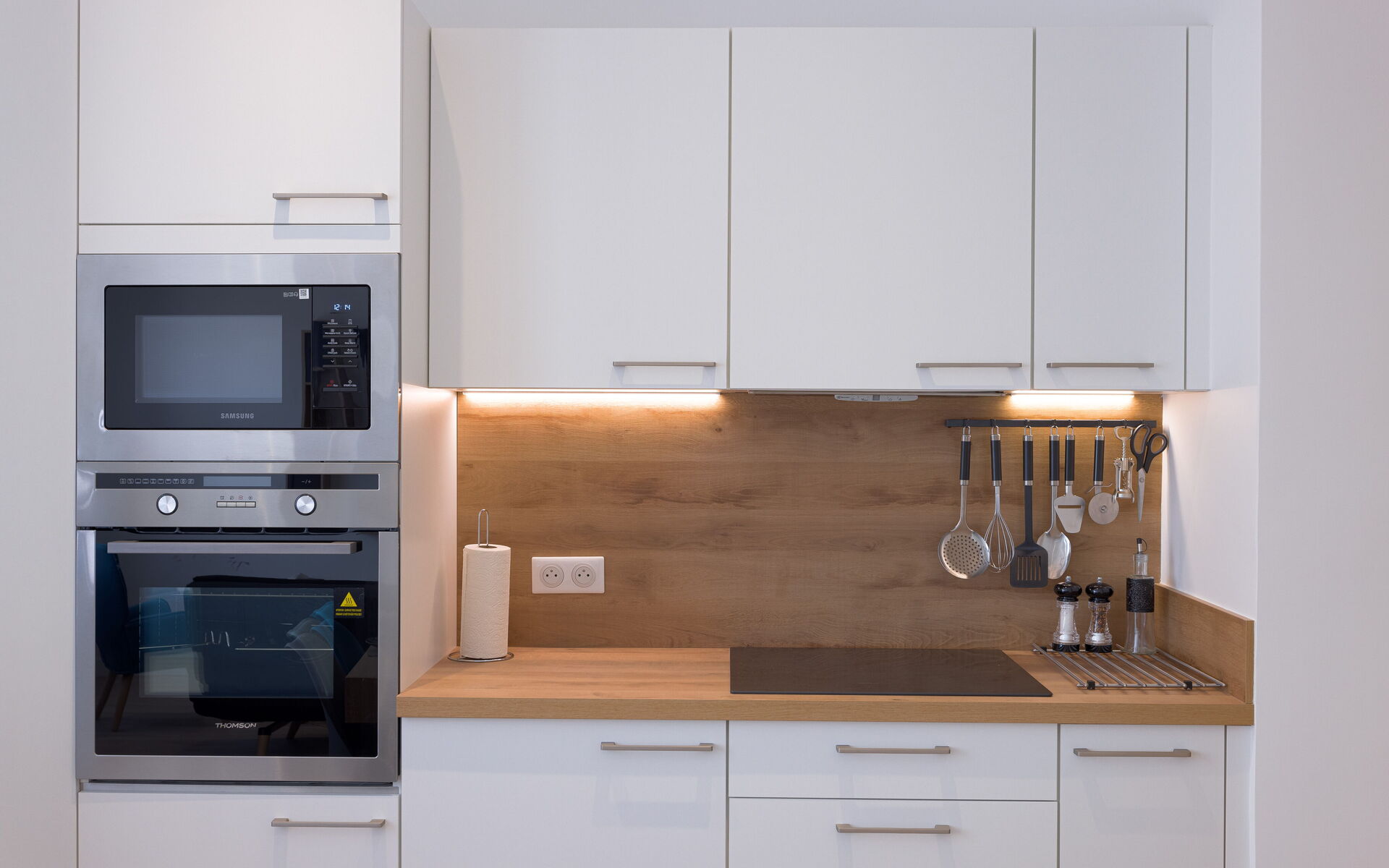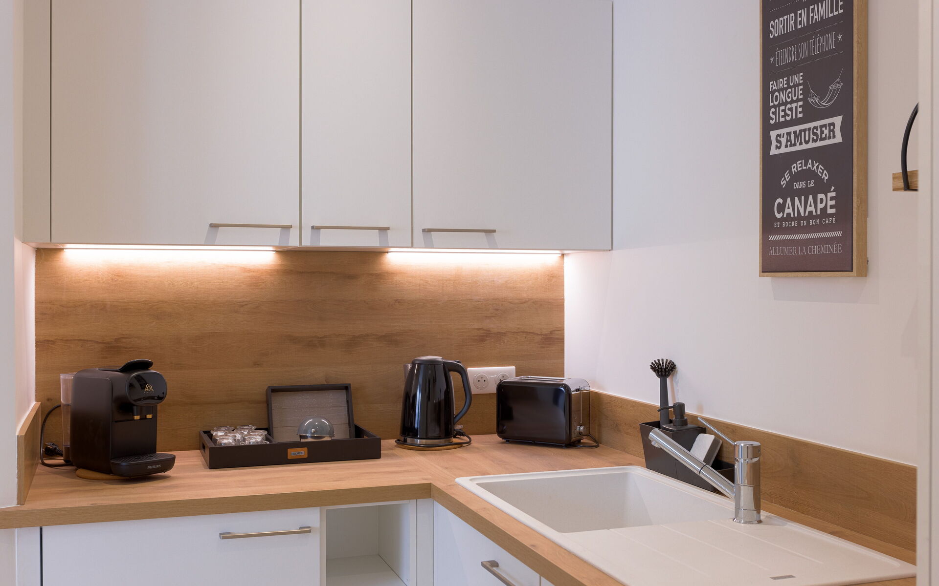 - Cuisine américaine équipée avec machine nespresso, gille pain, bouilloire, micro onde, four, lave vaiselle