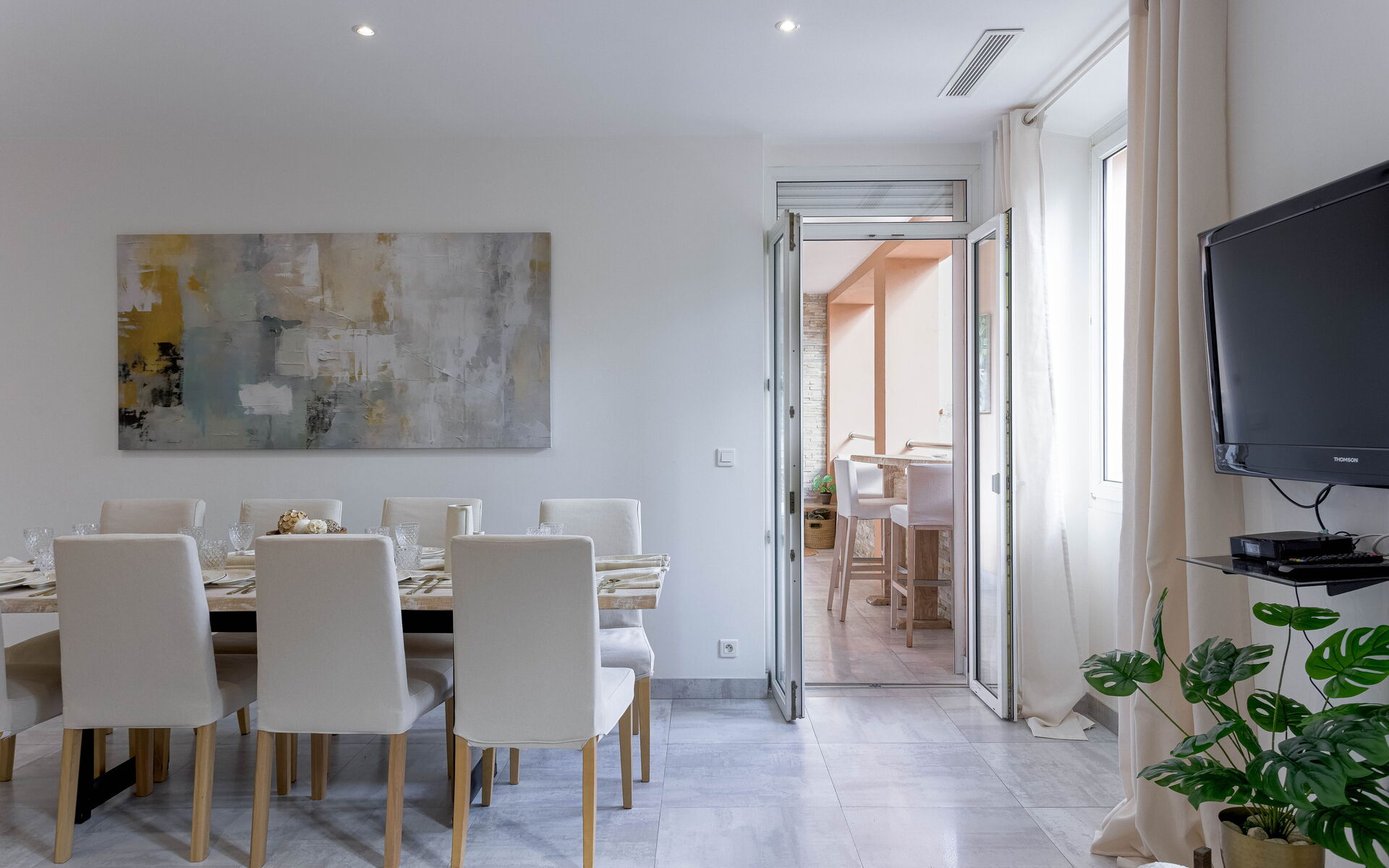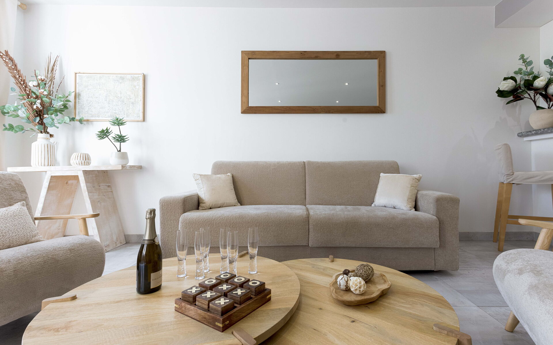 - Large séjour avec TV écran-plat + coin salon + table à manger + canapé lit (160*200)