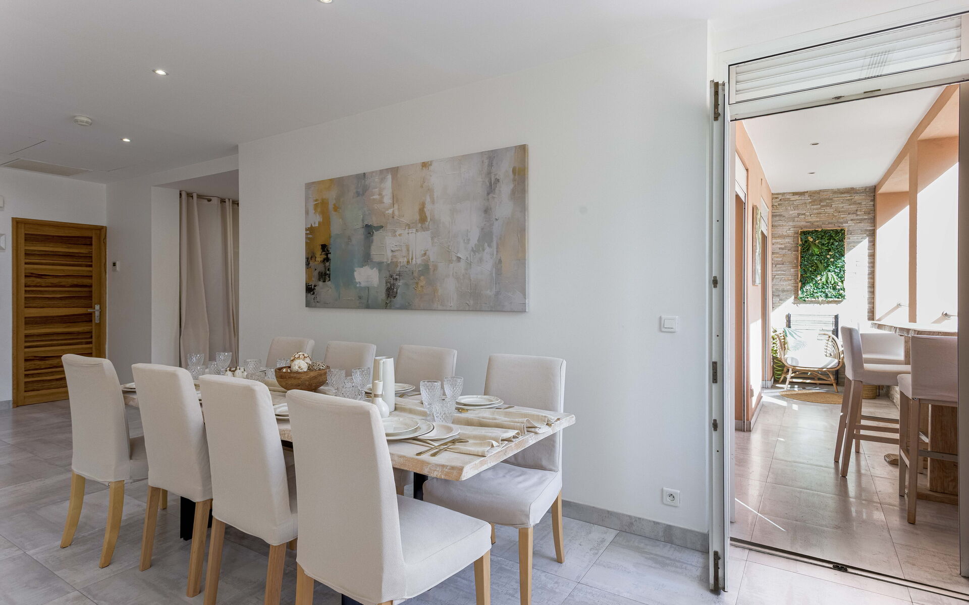 climatisation, table à manger, Sortie sur la terrasse, TV Satellitaire, Détecteur de fumée, Cuisine bien équipée, Internet WiFi, Canapé-lit double