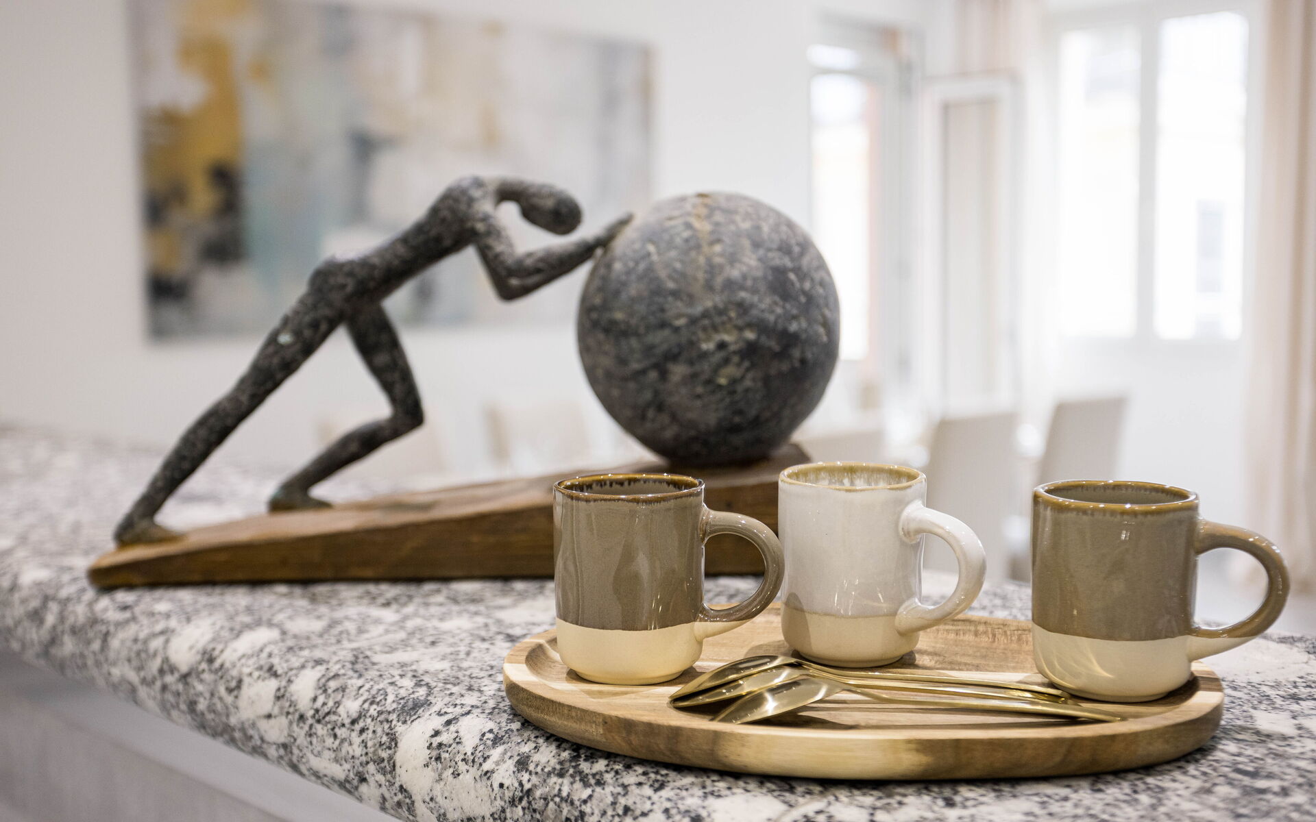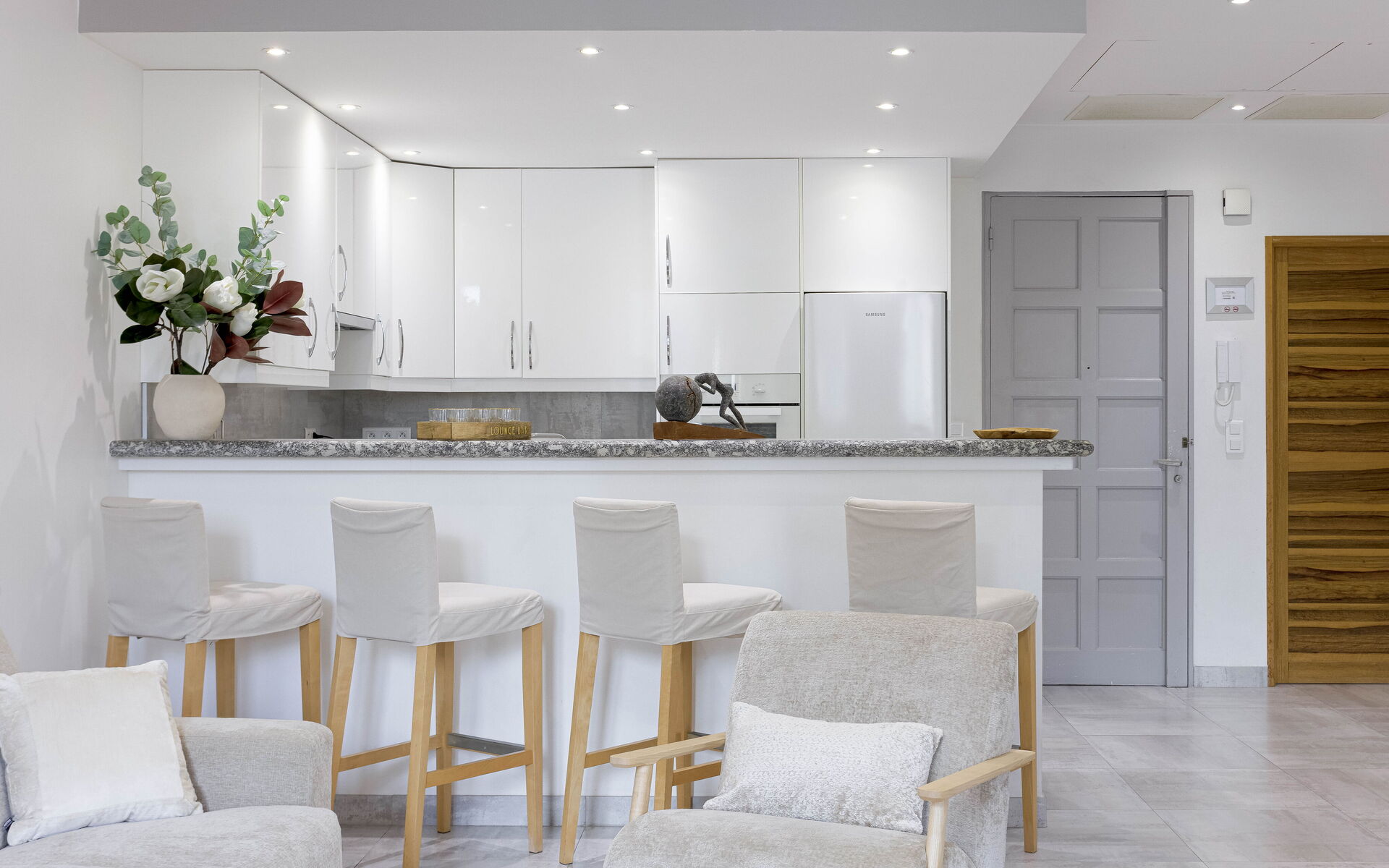 - Cuisine américaine toute équipée : frigo + bouilloire + toaster + micro-ondes + machine à café + lave vaisselle