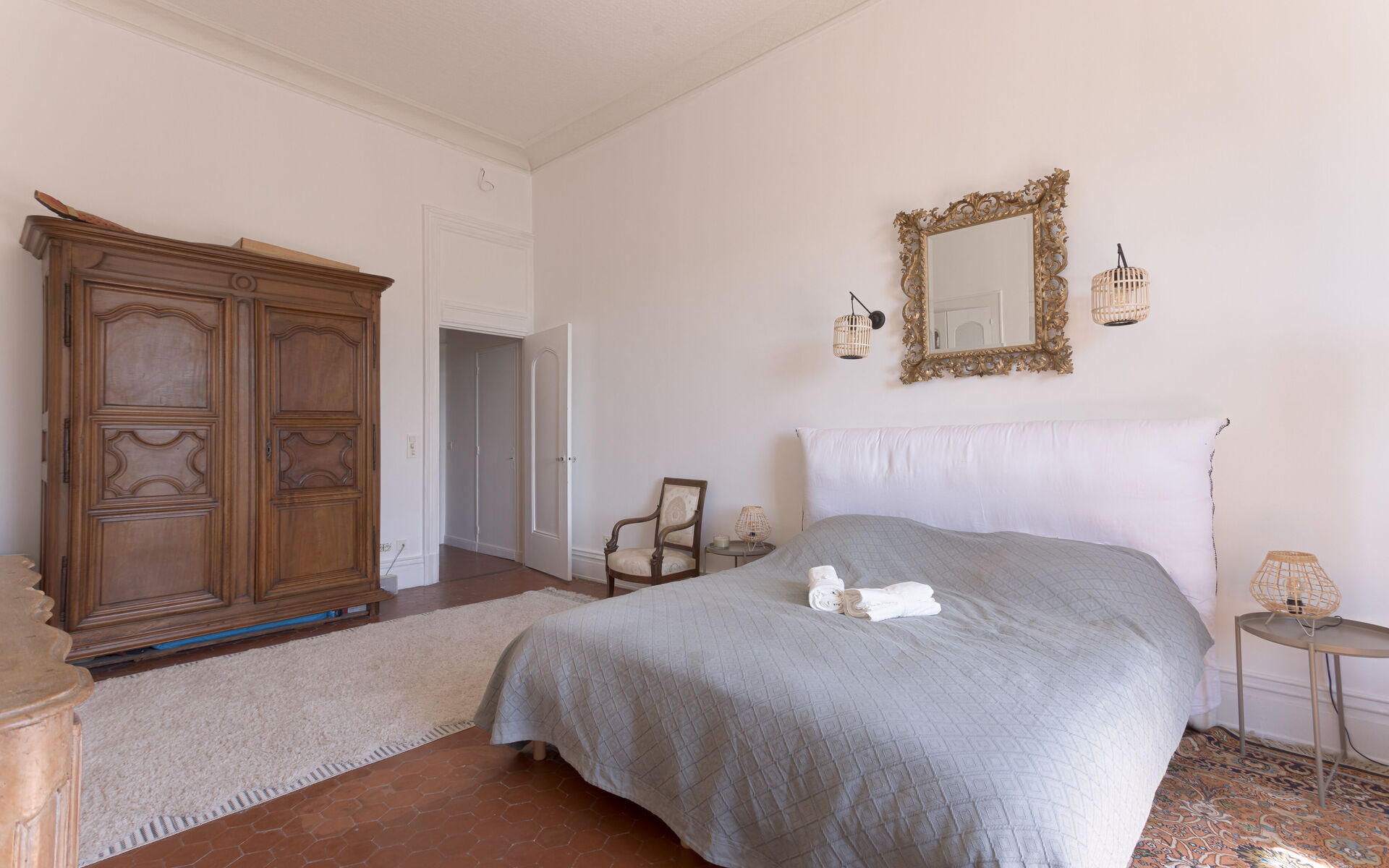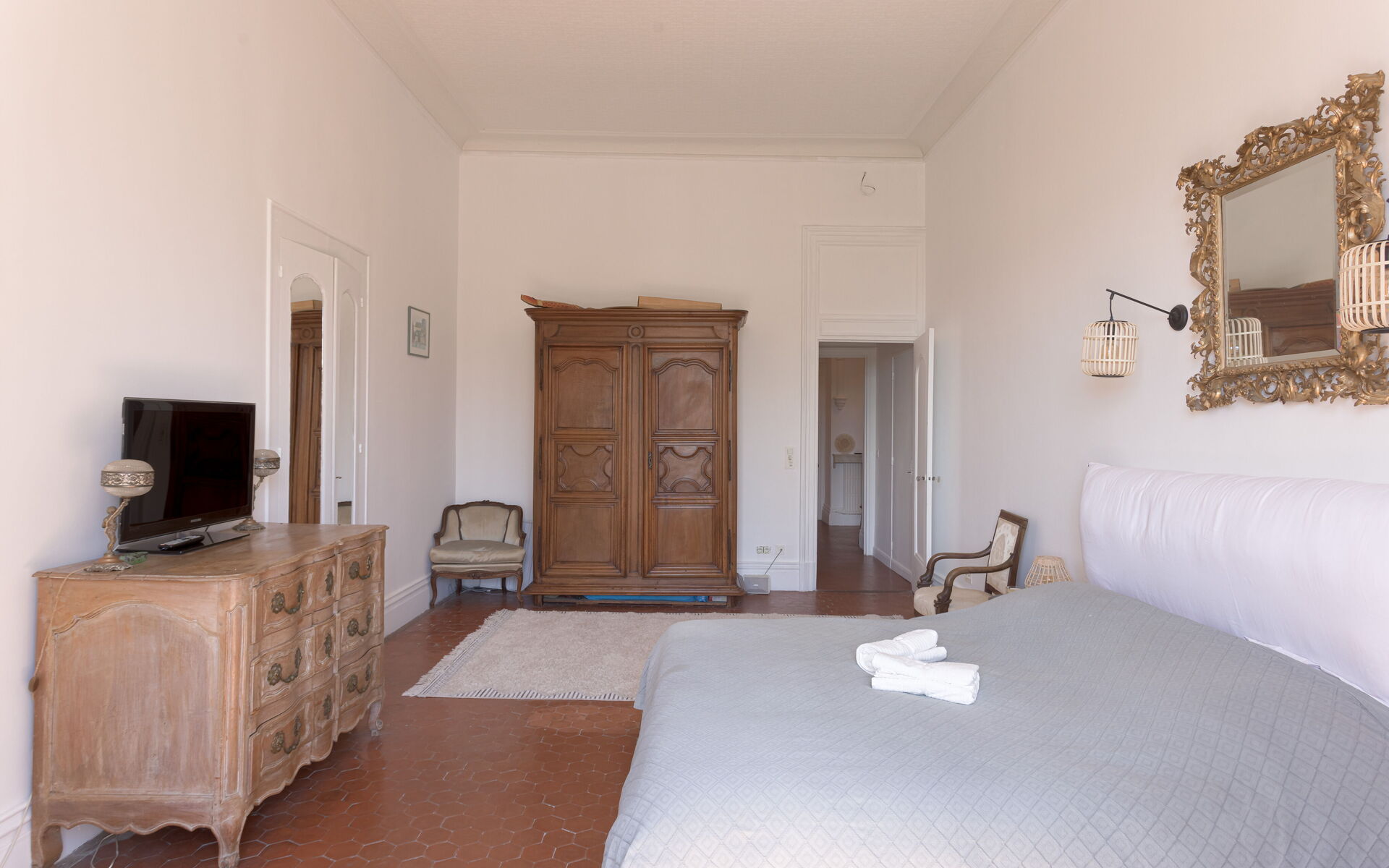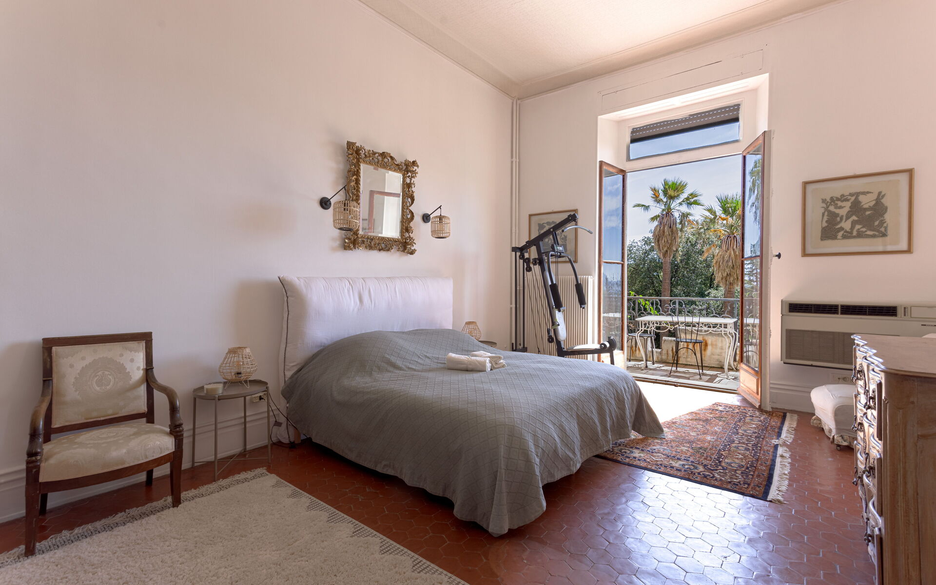 - Bedroom 1: king-size bed (180x200 ) with air-con, opening onto a terrace with a view
