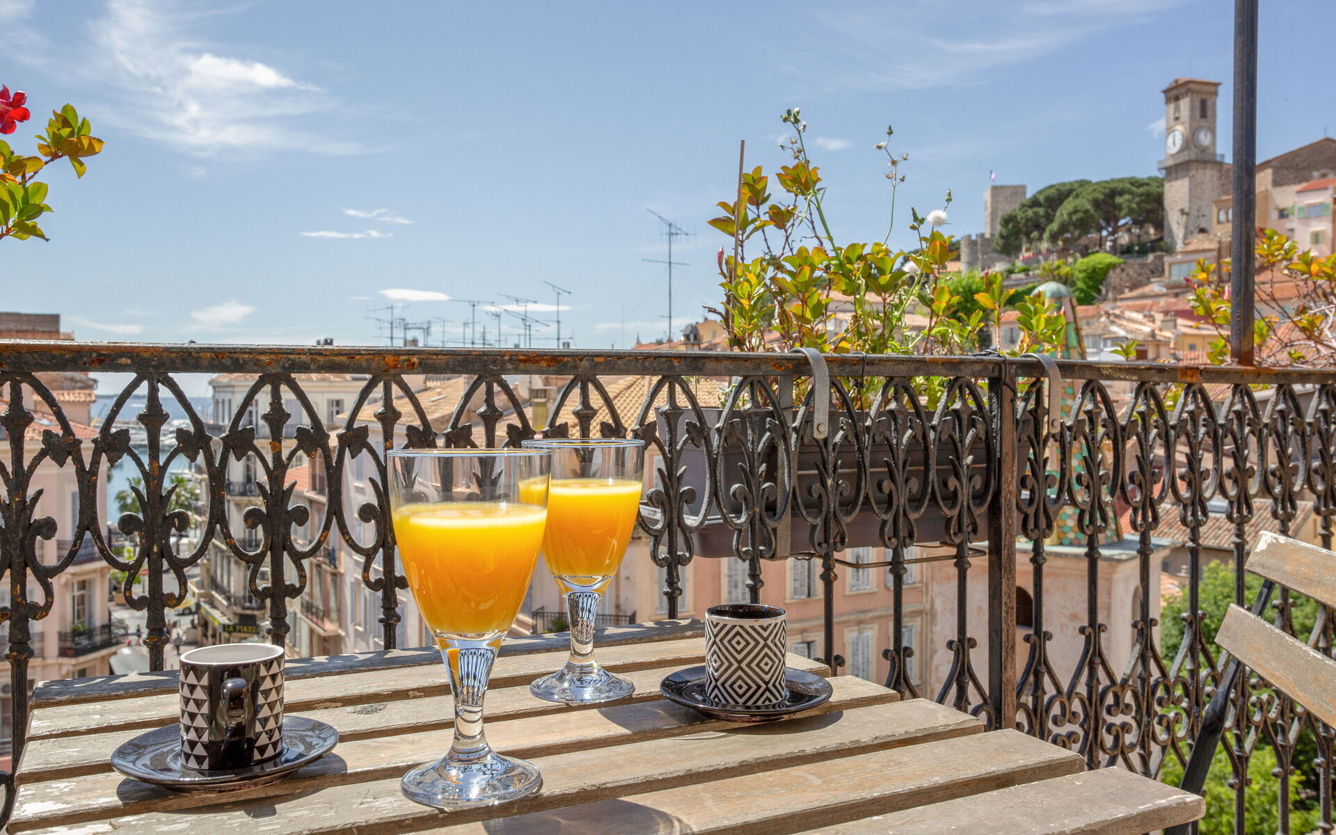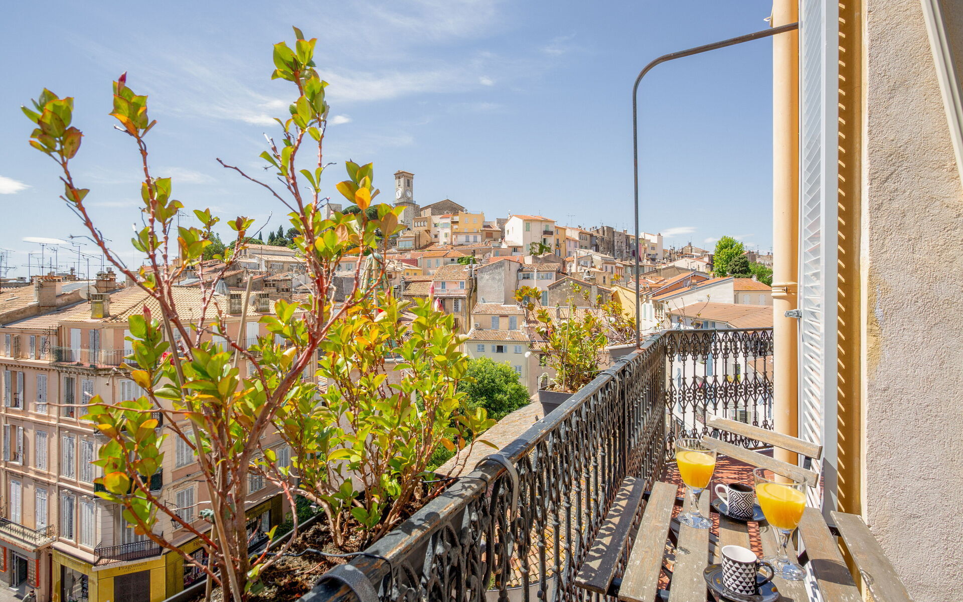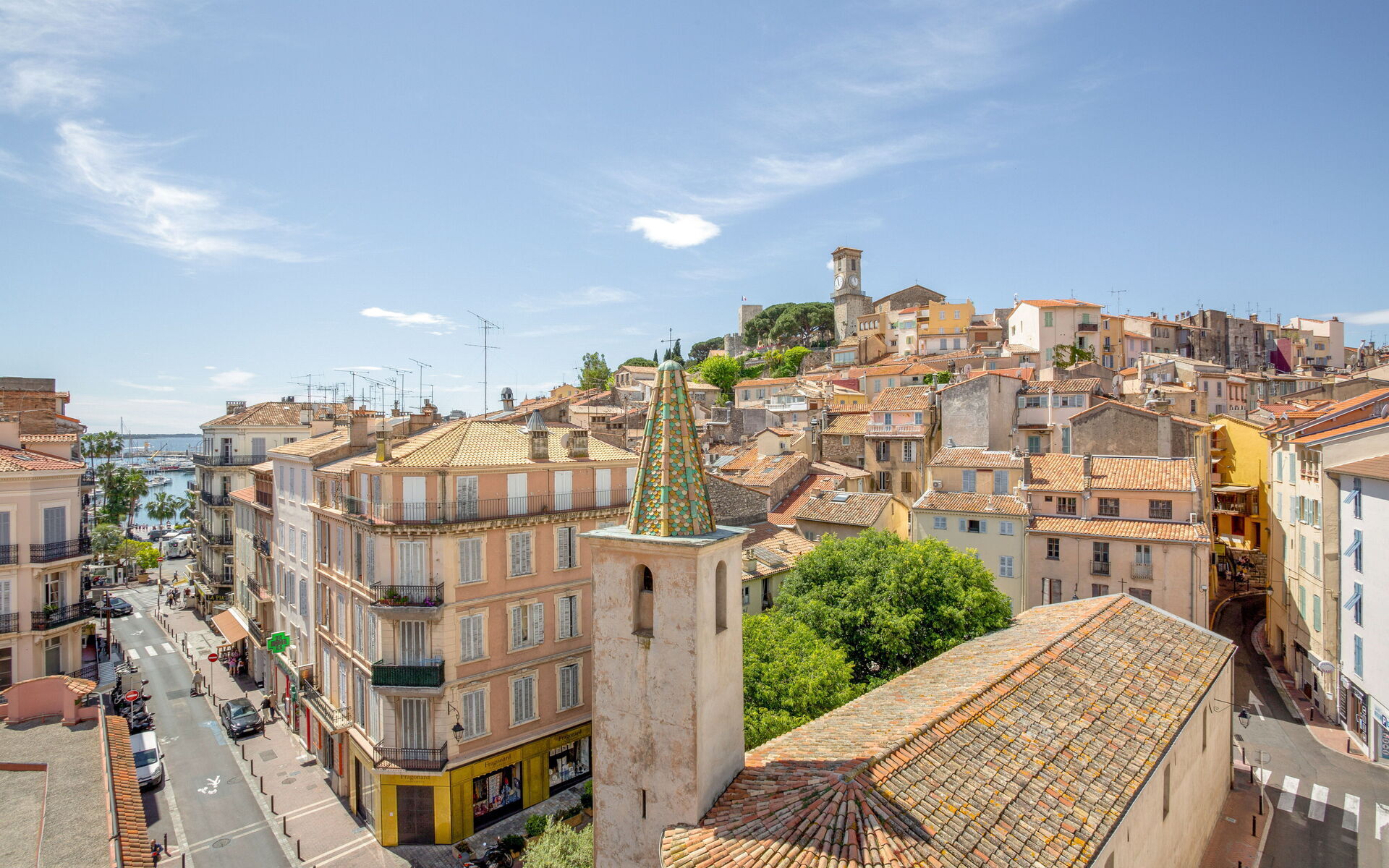You'll be in awe of the gorgeous view from this duplex apartment in Cannes, a light-filled, loft-like space with a commanding position overlooking the surrounding city. Step outside onto the balcony with your morning coffee or an evening glass of wine, come home each afternoon to such comforts as air conditioning and a washer/dryer, and enjoy easy walking access to beaches, the port, and the Palais des Festivals.