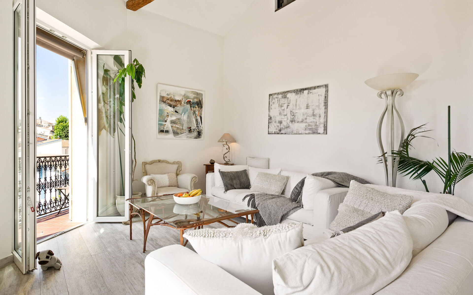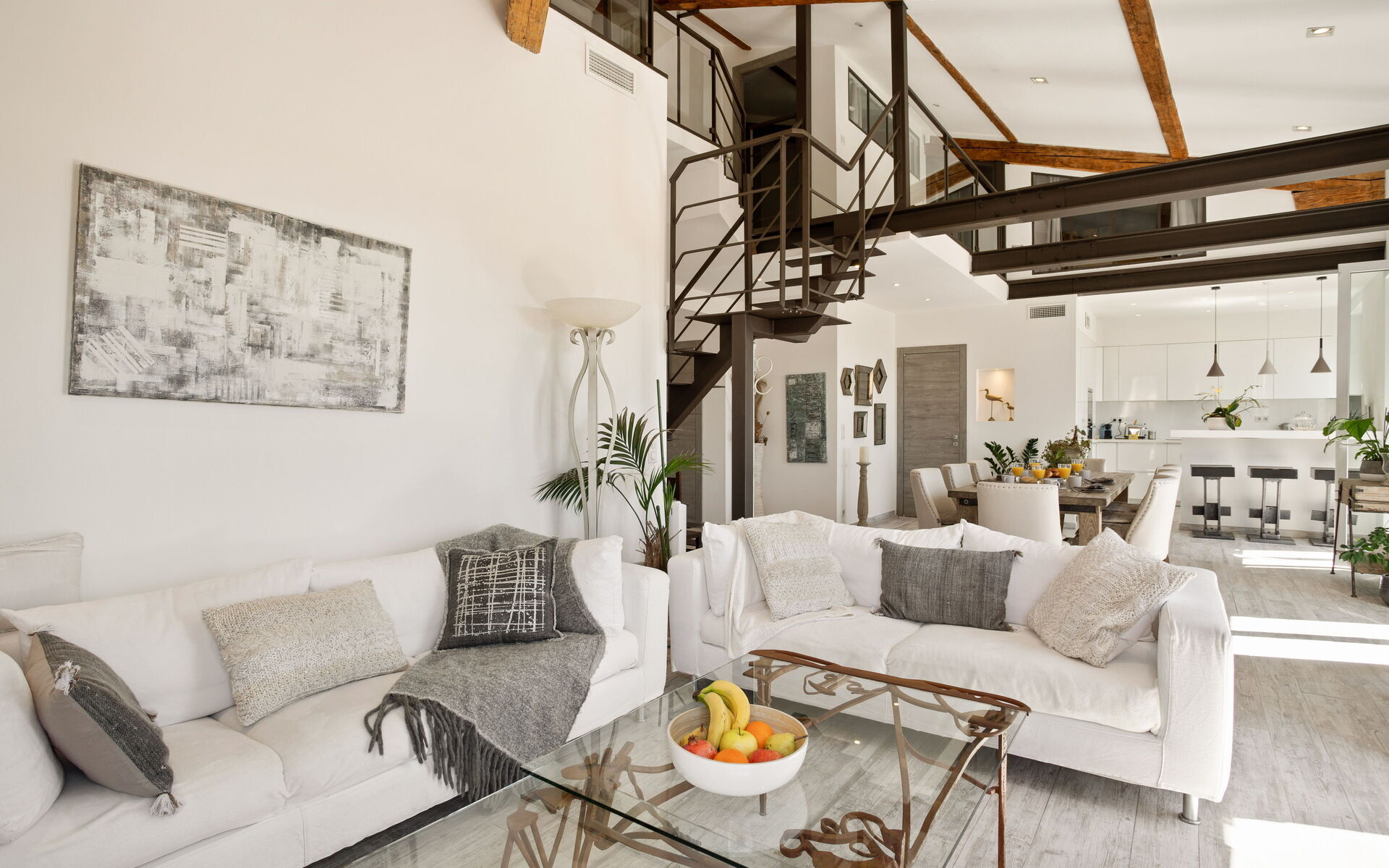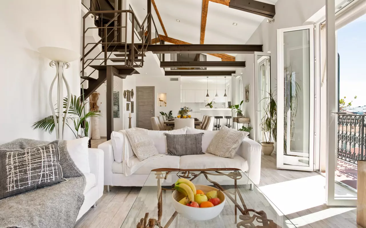 You'll be in awe of the gorgeous view from this duplex apartment in Cannes, a light-filled, loft-like space with a commanding position overlooking the surrounding city. Step outside onto the balcony with your morning coffee or an evening glass of wine, come home each afternoon to such comforts as air conditioning and a washer/dryer, and enjoy easy walking access to beaches, the port, and the Palais des Festivals.