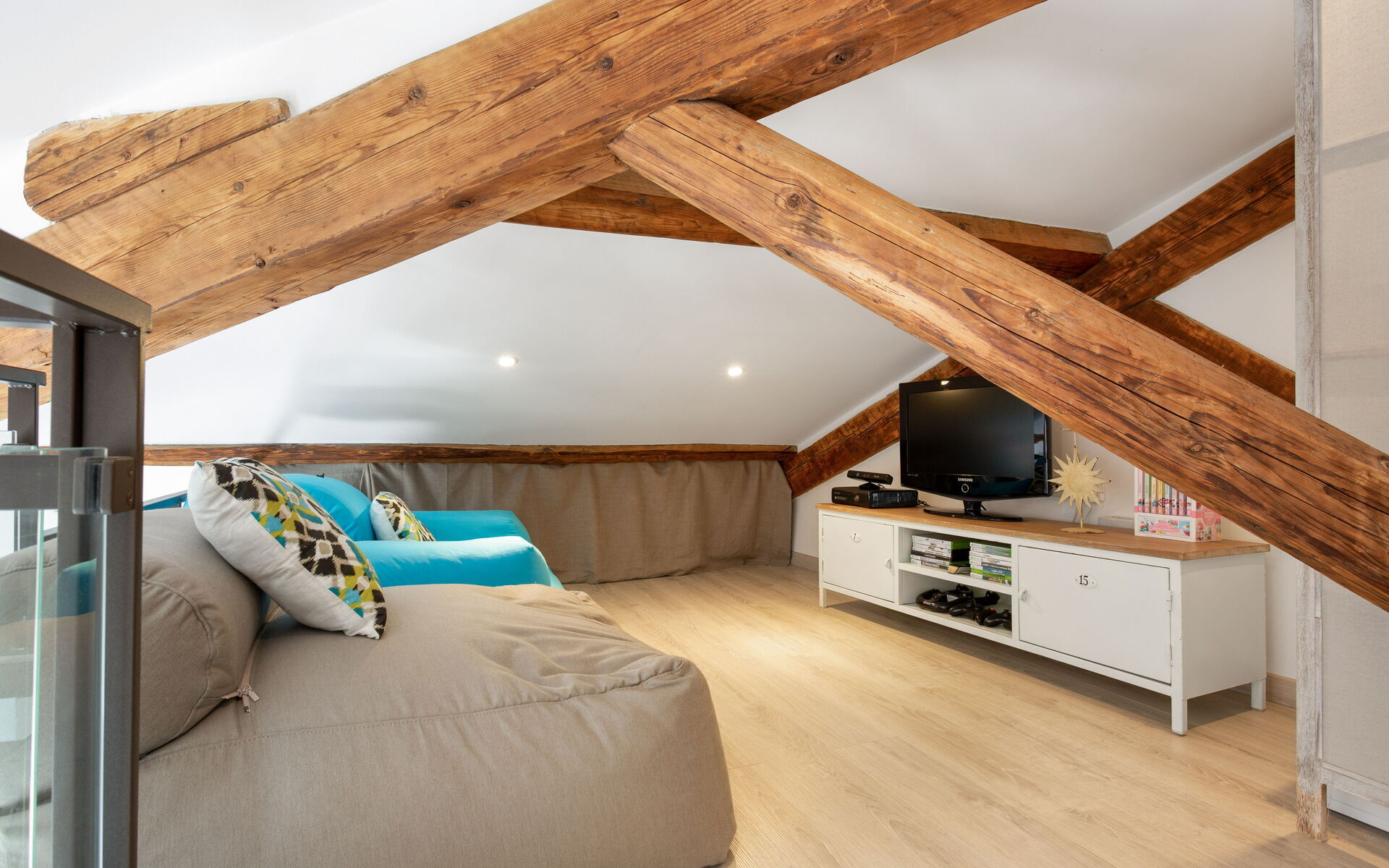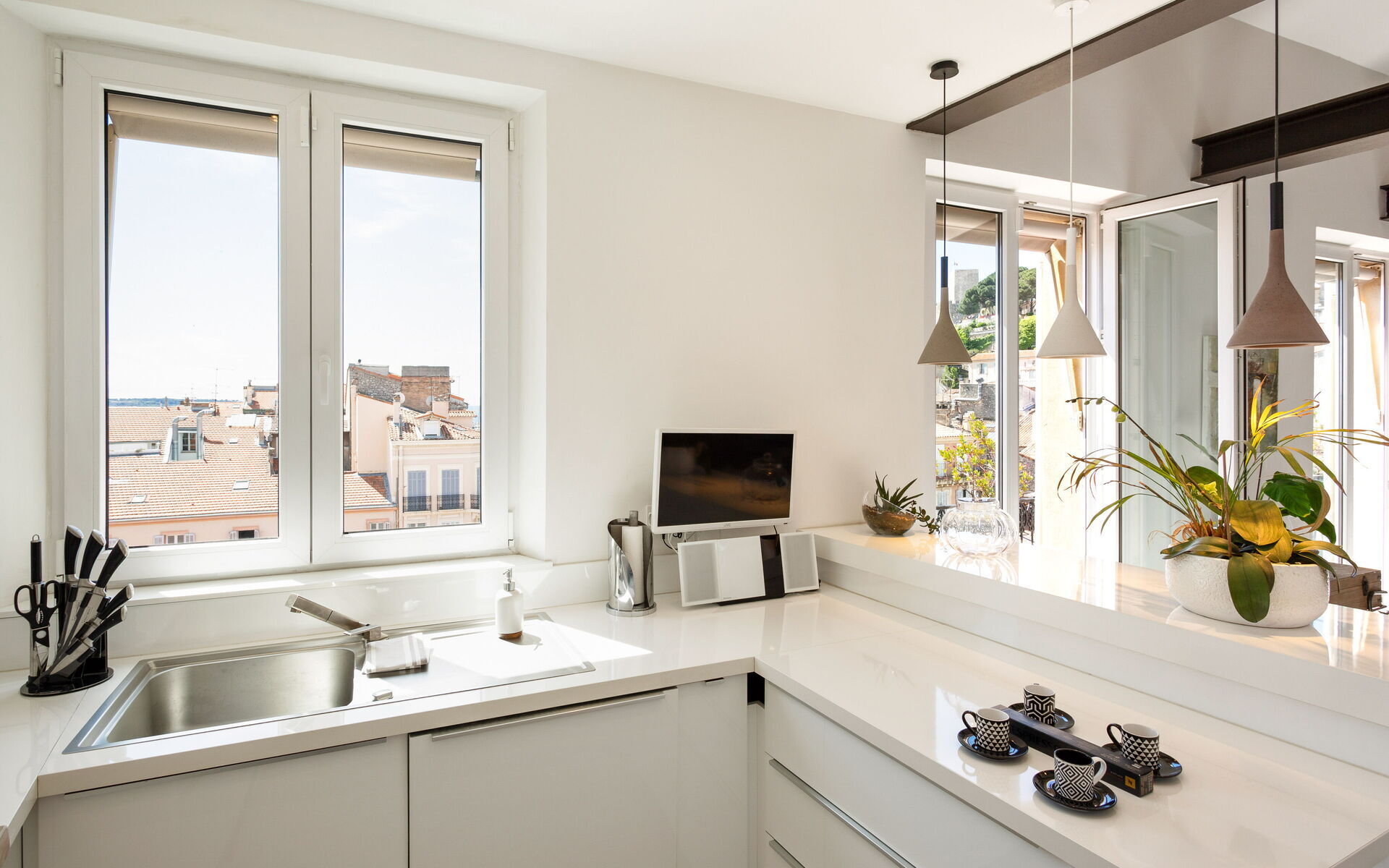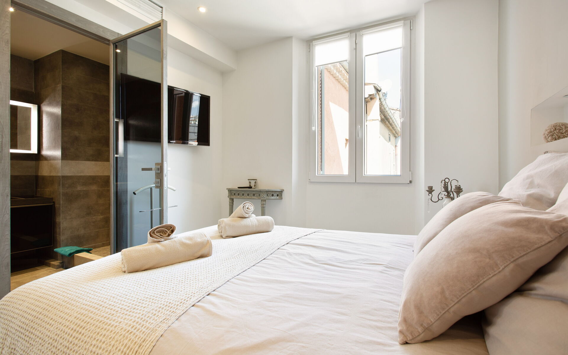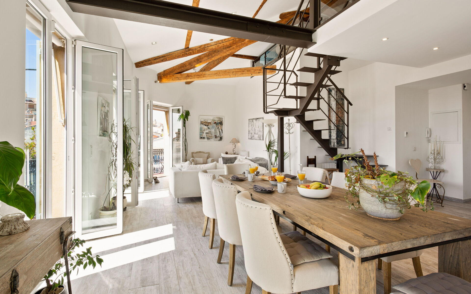 What's nearby: This stunning duplex is located in the center of beautiful Cannes. You won't need a car to visit the city, as both the train station and the bus station are close by. You'll be a quarter-mile stroll from the Palais des Festivals (the site of the Cannes Film Festival) and the port, half a mile northeast of Midi Beach, and three-quarters of a mile west of the beach, seaside promenade, and luxury boutiques of La Croisette. The neighboring Forville Market is open daily, and several excellent restaurants, including Bistrot Gourmand, are steps away.