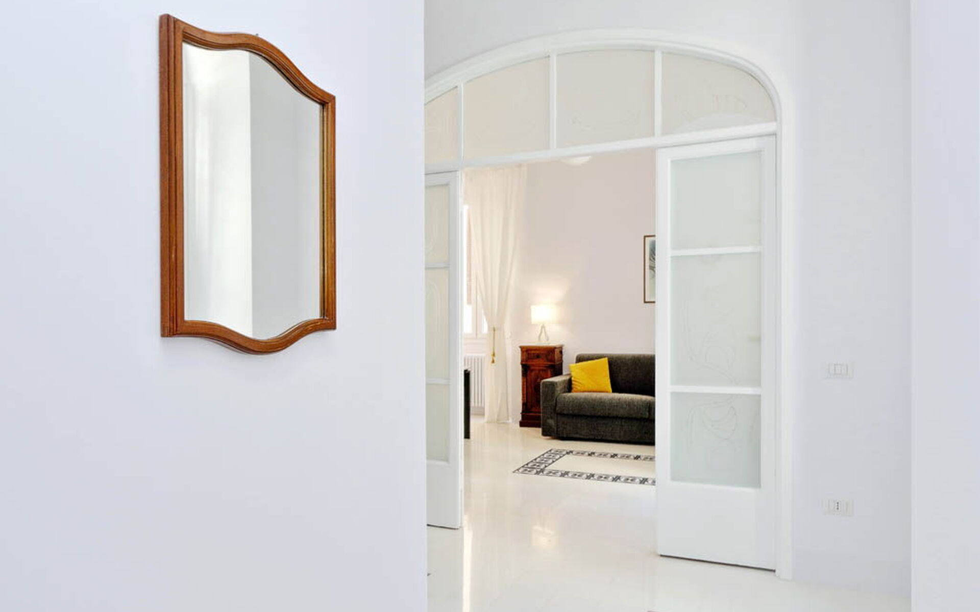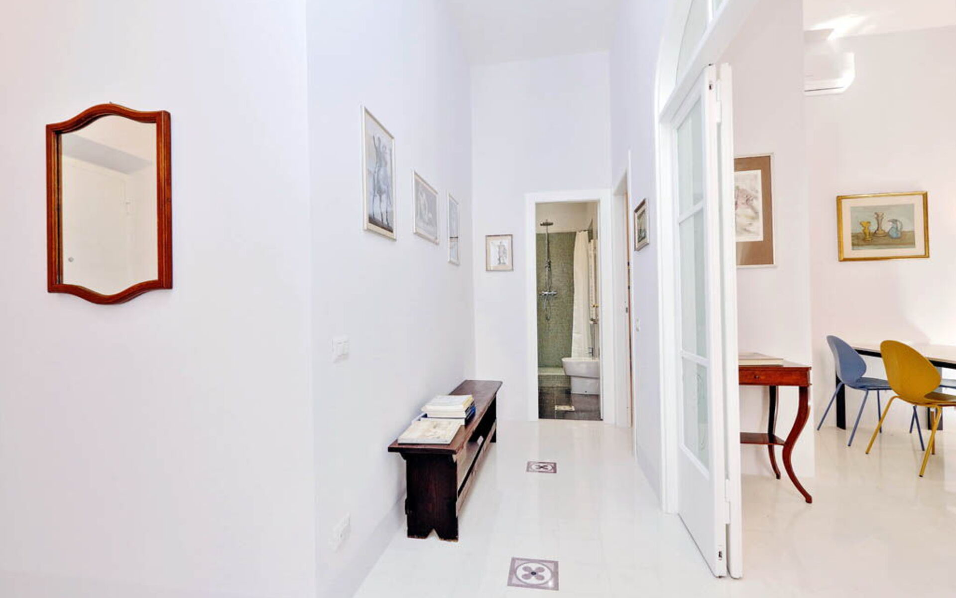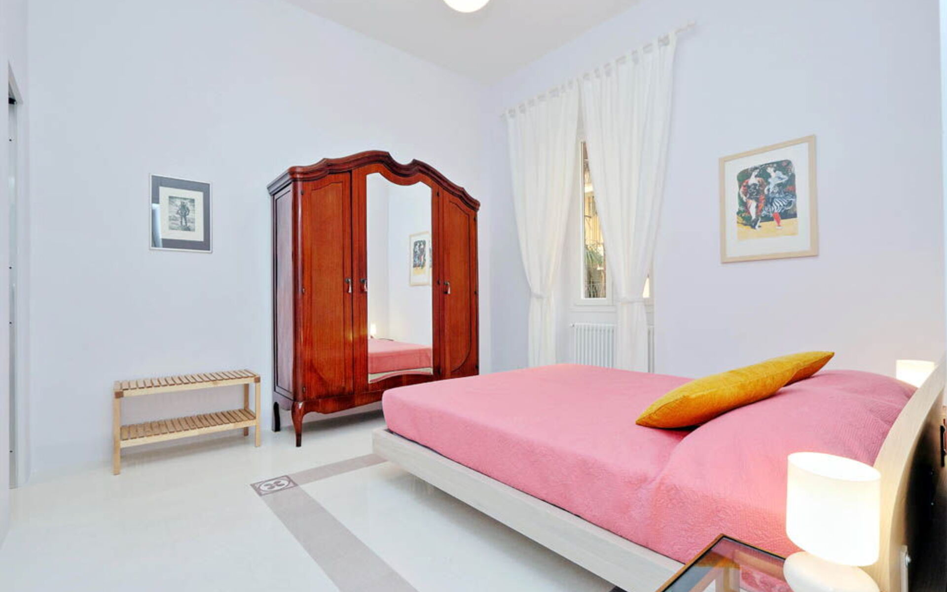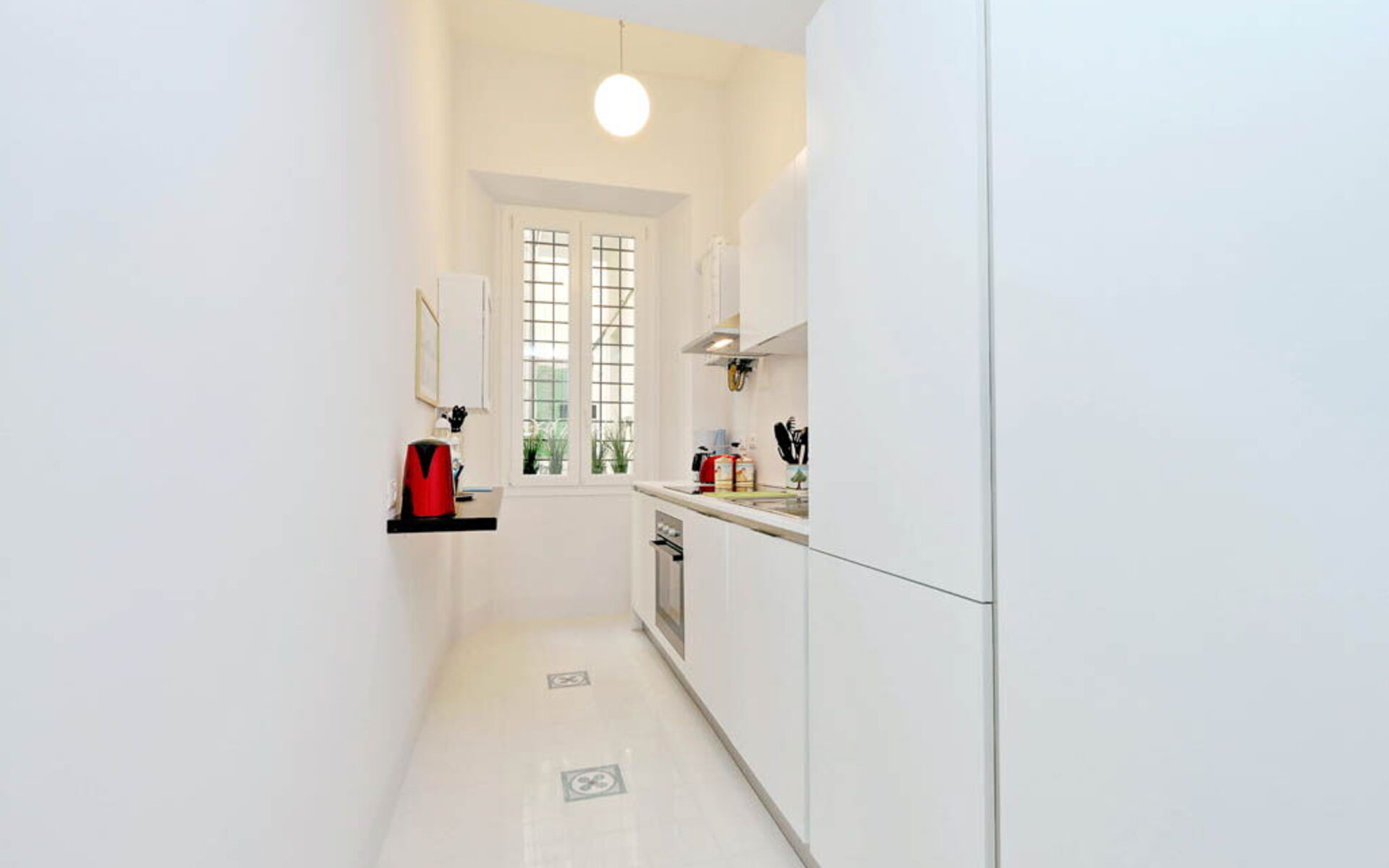 This 55 sqm apartment is located on the second floor and is provided with elevator. It consists of a bedroom, living room, two bathrooms and kitchen. The apartment has enough light and is quiet, since the windows overlook an internal courtyard. The apartment is in the Esquilino, a neighborhood located in the centre of Rome, full of history and art. The most ethnic district of central Rome, it retains the elegant architecture of the Umbertino period dating back to end of the '800, the only surviving example in Rome.