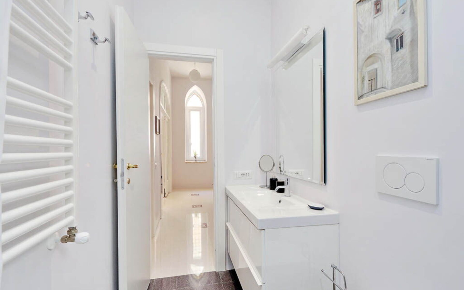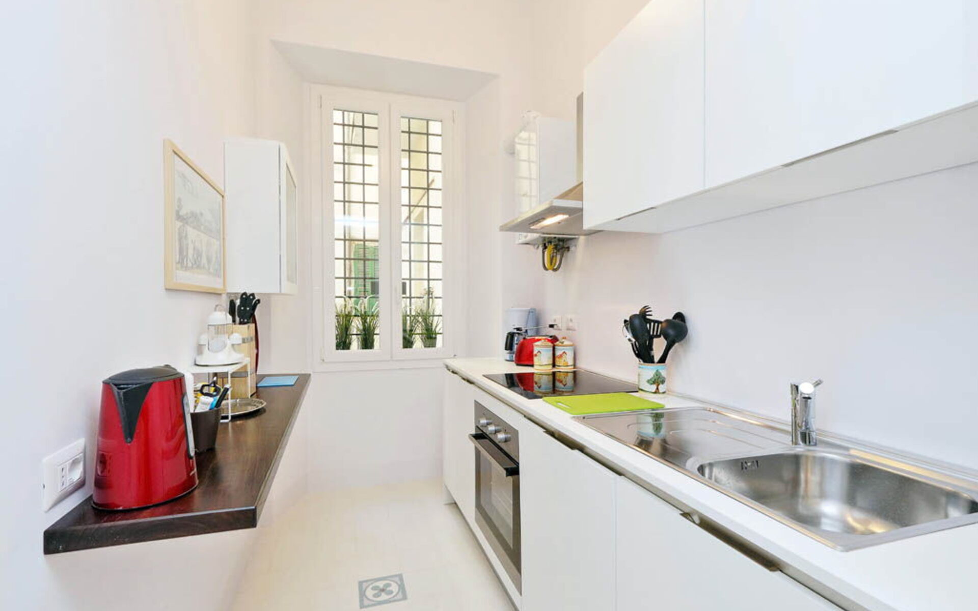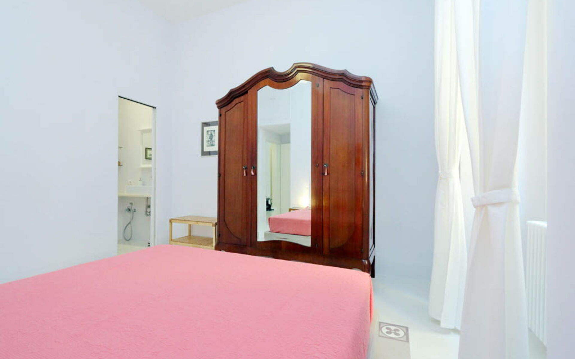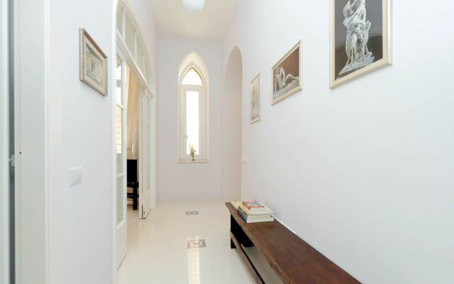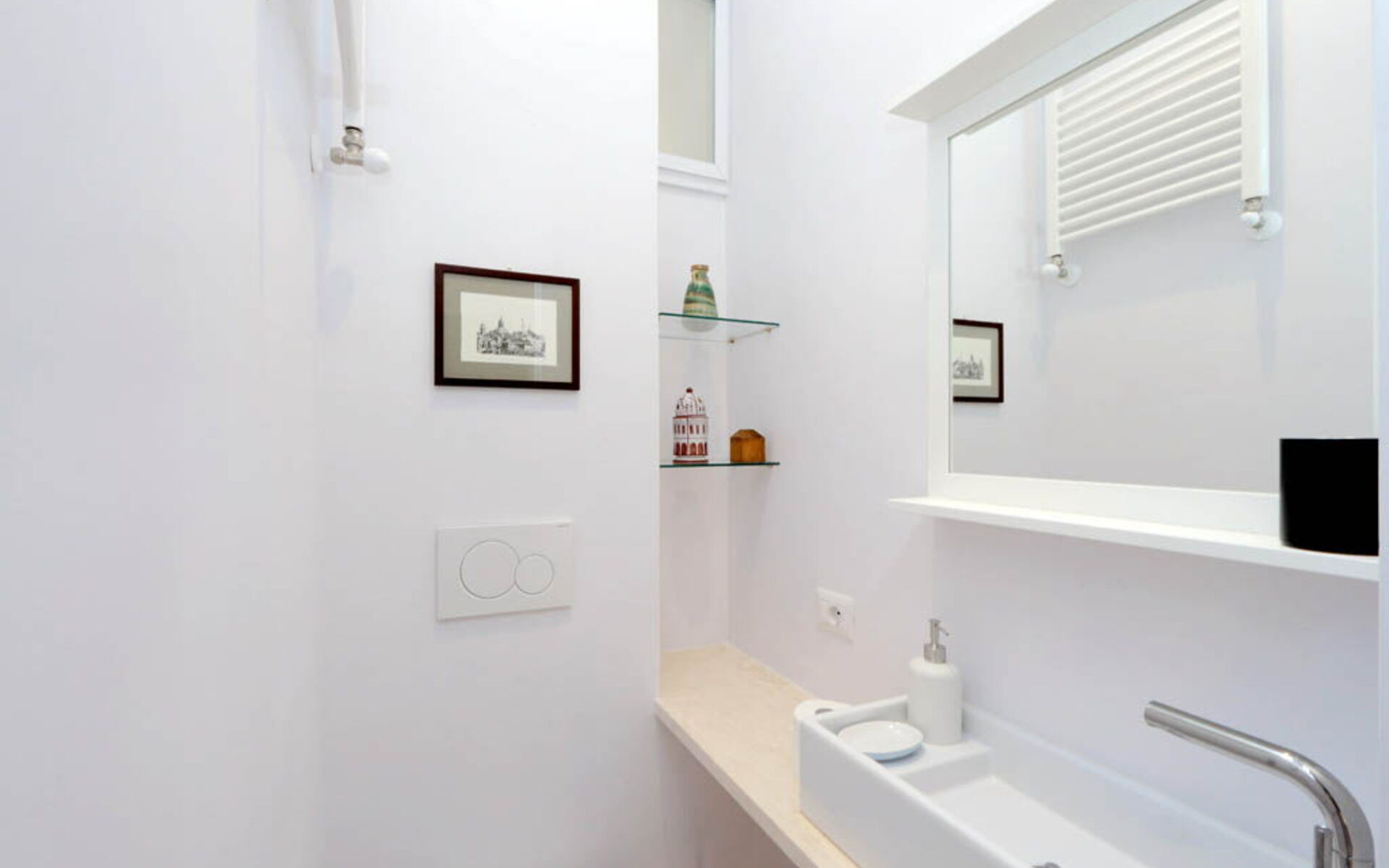 This 55 sqm apartment is located on the second floor and is provided with elevator. It consists of a bedroom, living room, two bathrooms and kitchen. The apartment has enough light and is quiet, since the windows overlook an internal courtyard. The apartment is in the Esquilino, a neighborhood located in the centre of Rome, full of history and art. The most ethnic district of central Rome, it retains the elegant architecture of the Umbertino period dating back to end of the '800, the only surviving example in Rome.