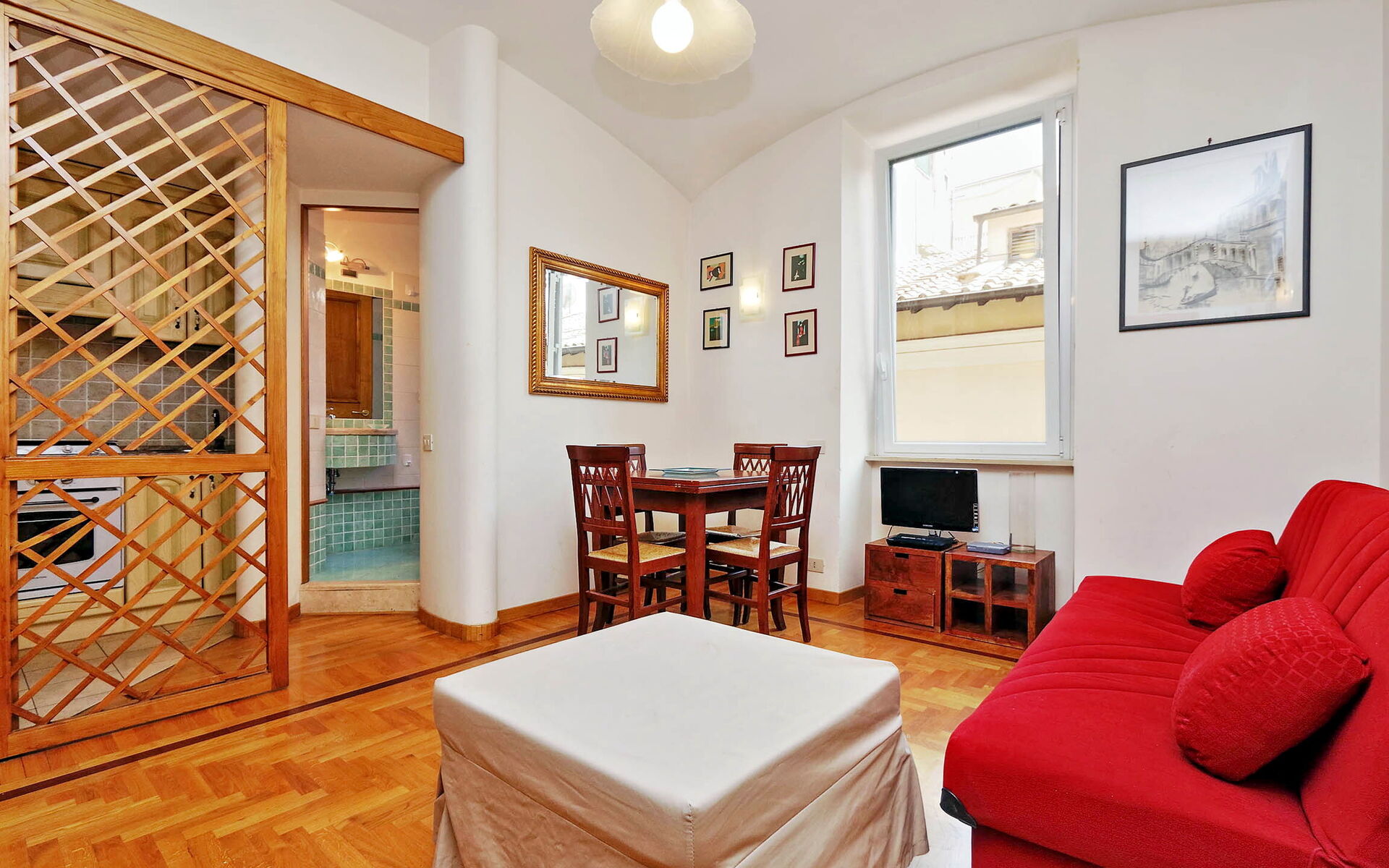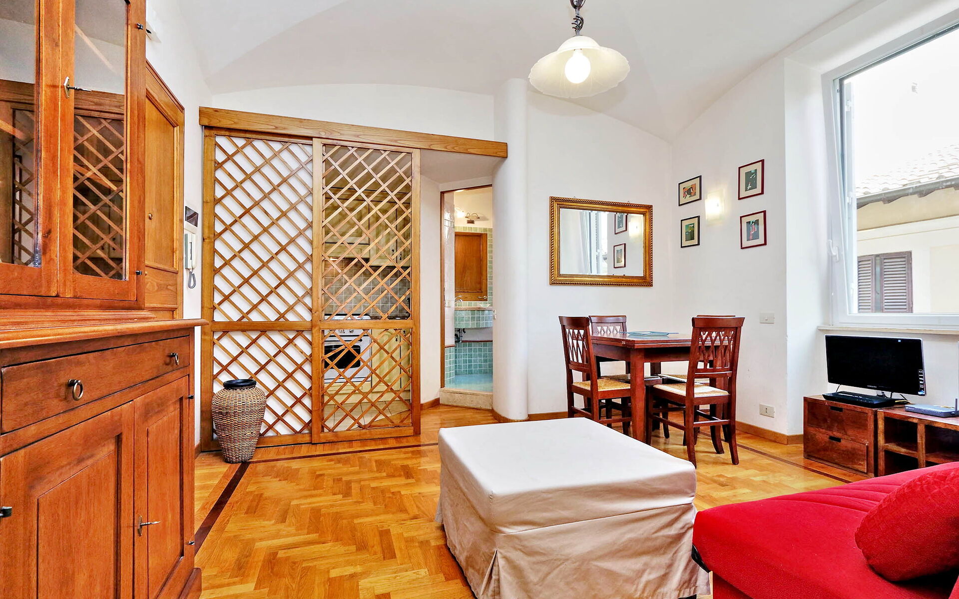 Adorable bright and sunny one bedroom apartment for rent in Rome located on the second floor of a historical building (without elevator) nestled right by St. Peter’s.