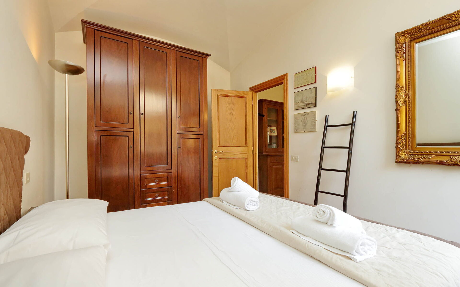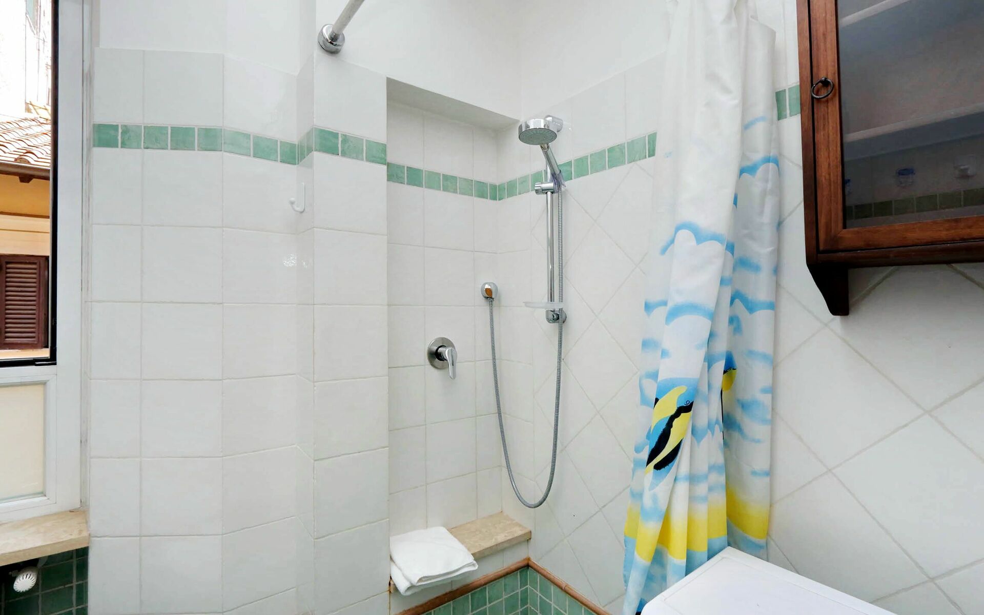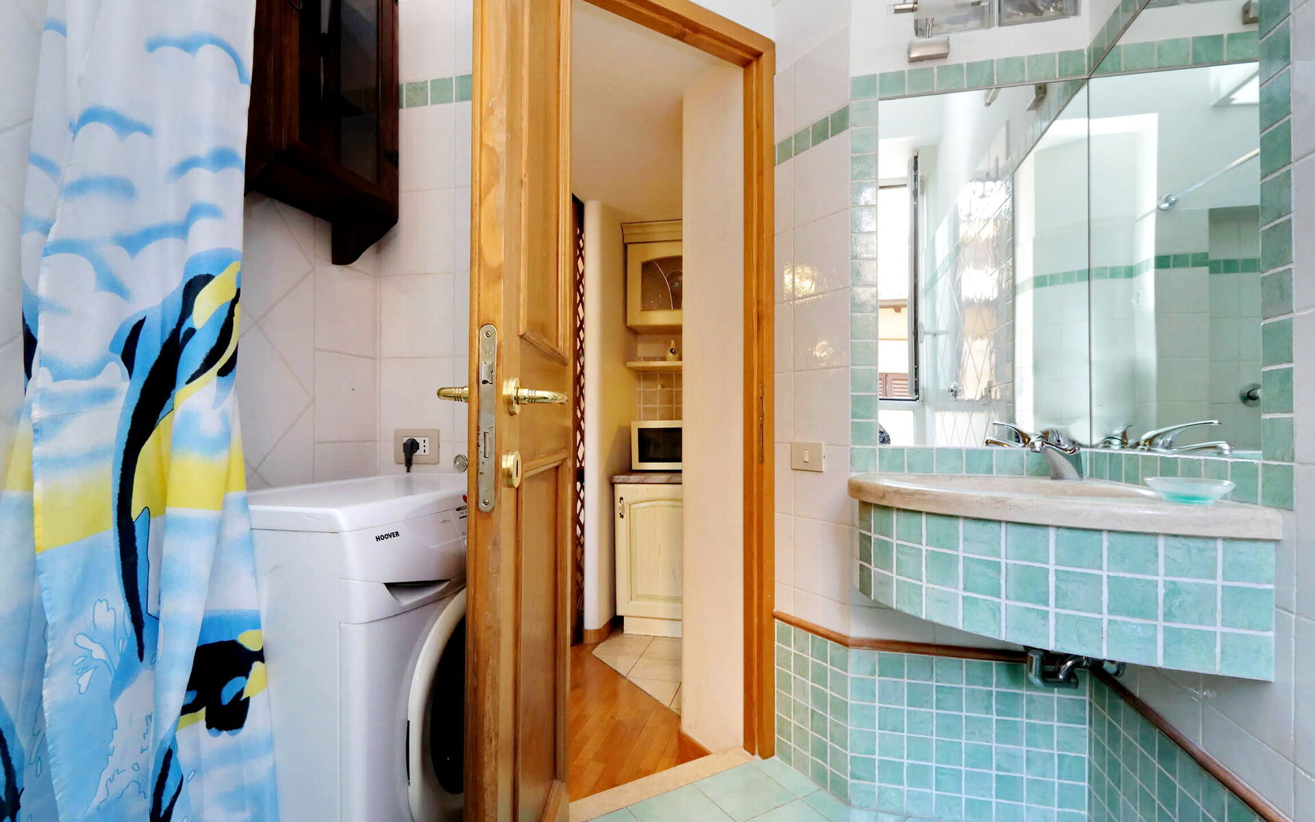 Whilst the entrance to the apartment is in an inner courtyard, the front entrance to this lovely historical building is in a characteristic street of the olden Rome, offering plenty of restaurants, cafés and boutiques.