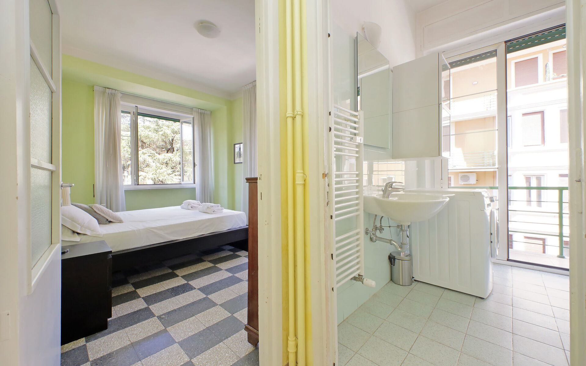 The apartment is located in the Bologna-Nomentana neighbourhood, in a strategic position to reach Villa Torlonia and Via Nomentana.