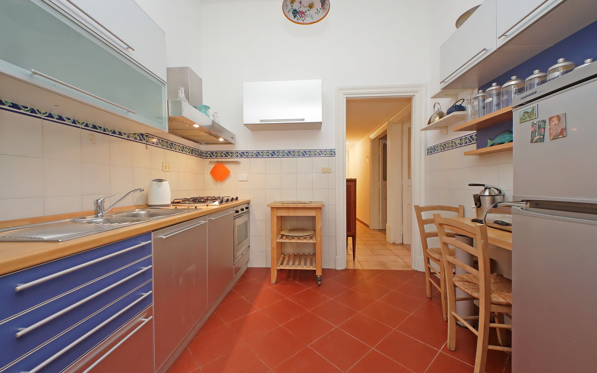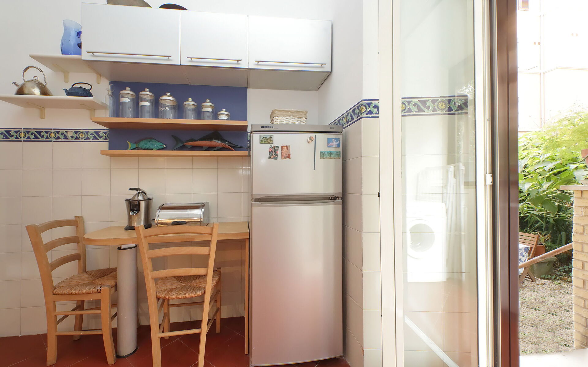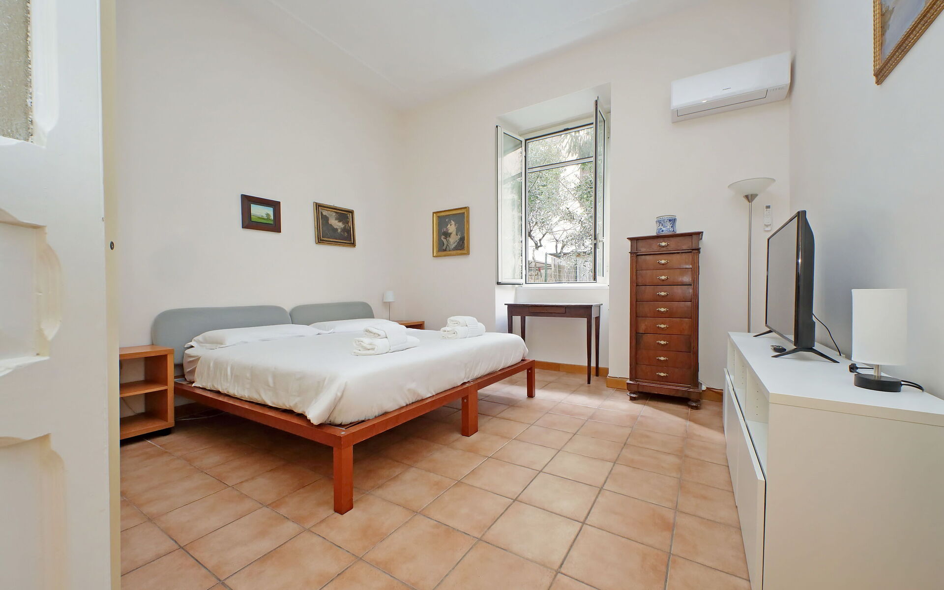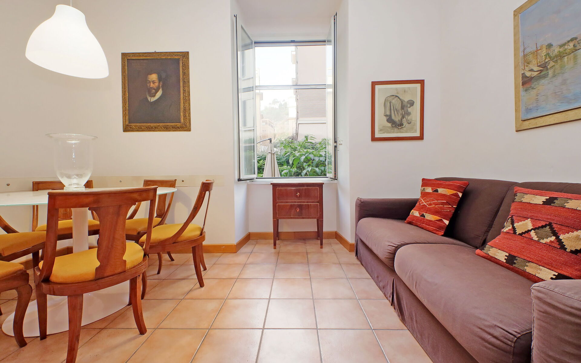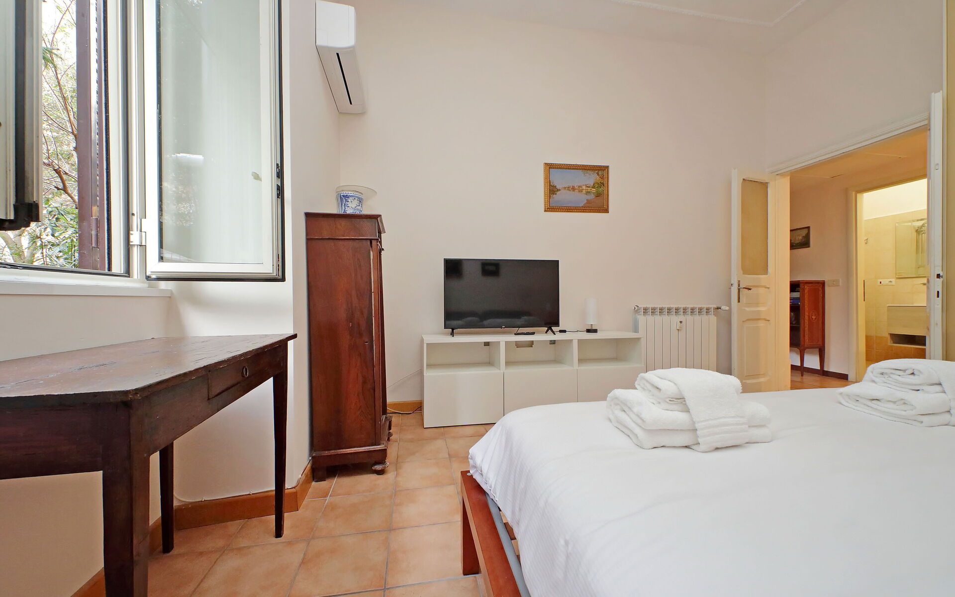 Two-room apartment of about 60sqm with private garden located on the ground floor in a period building in the Delle Vittorie neighbourhood. The underground station Ottaviano (1.5km) is a 20-minute walk away. The Vatican City and the Prati neighbourhood is only a 40-minute walk or 30 minutes by public transport.