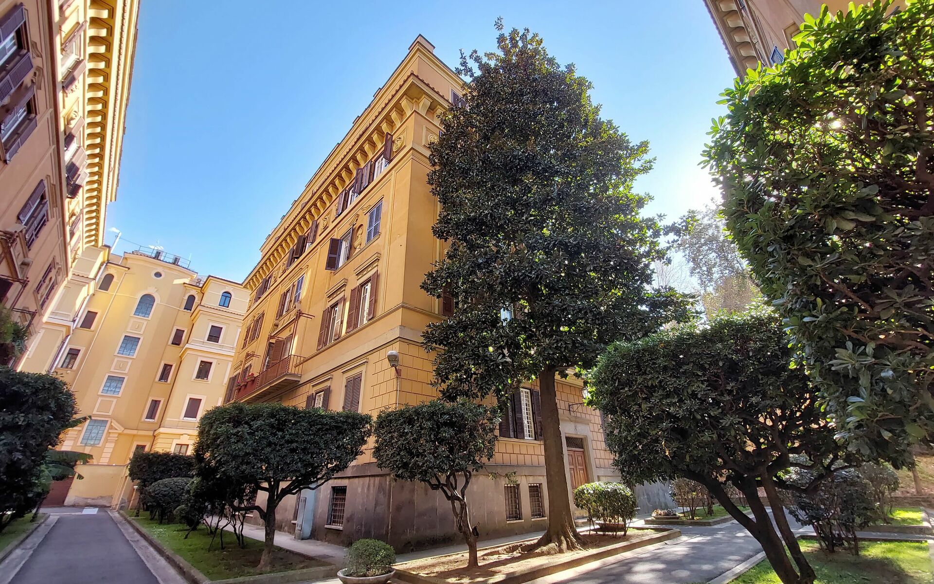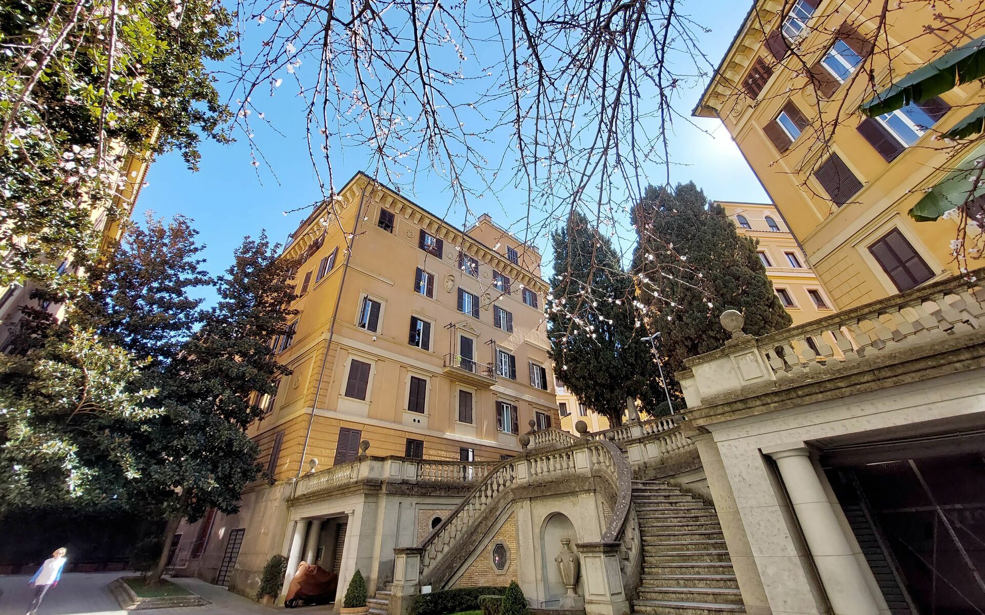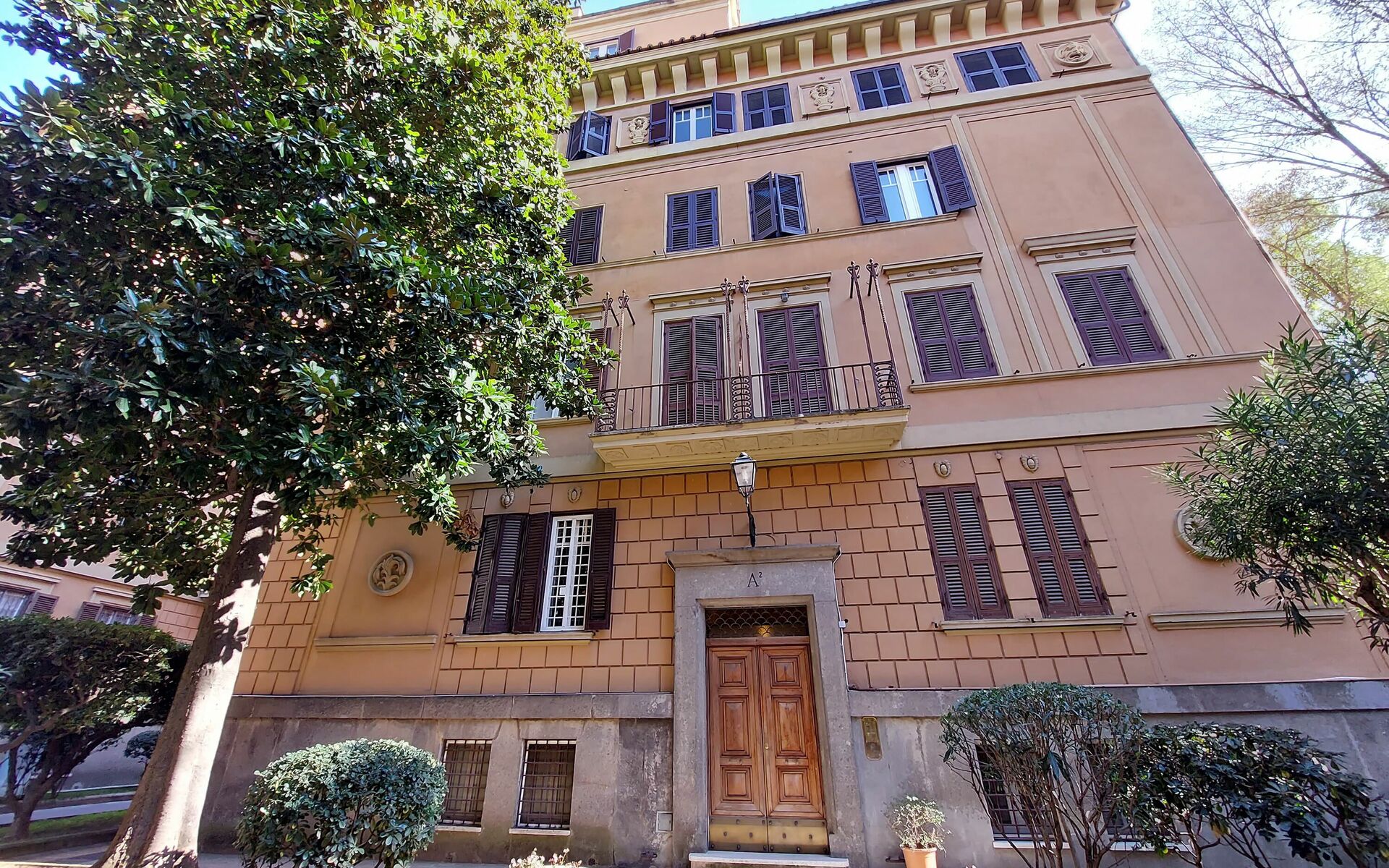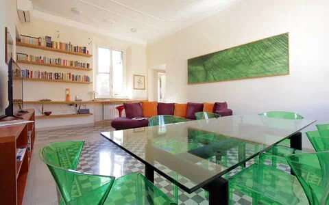 Parioli is one of the most elegant and residential neighbourhoods of Rome, not far from the city centre. It is full of high-level restaurants, cinemas, theatres and stores of the best brands. It is located between two large parks: Villa Ada, ideal for sports lovers, and Villa Borghese, an enchanting setting for pleasant walks to Via Veneto, Piazza di Spagna, Piazza del Popolo and the famous Borghese Museum. Newly renovated 110 sqm apartment with a terrace in a twentieth century, Baroque style building in a wonderful condominium in the Pinciano (Parioli) neighbourhood. The condominium is located 3.5 km north east of the historic centre of Rome and only a 12 minute walk from Villa Borghese. The condominium has a large garden and there is a 5 minute walk and stairs(30) to do from the entrance to the building to the apartment.
