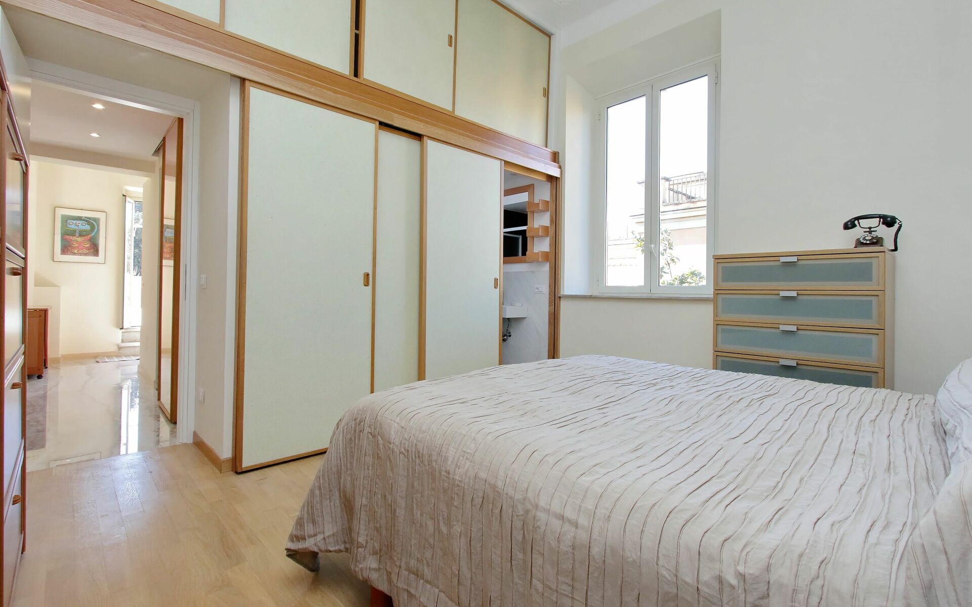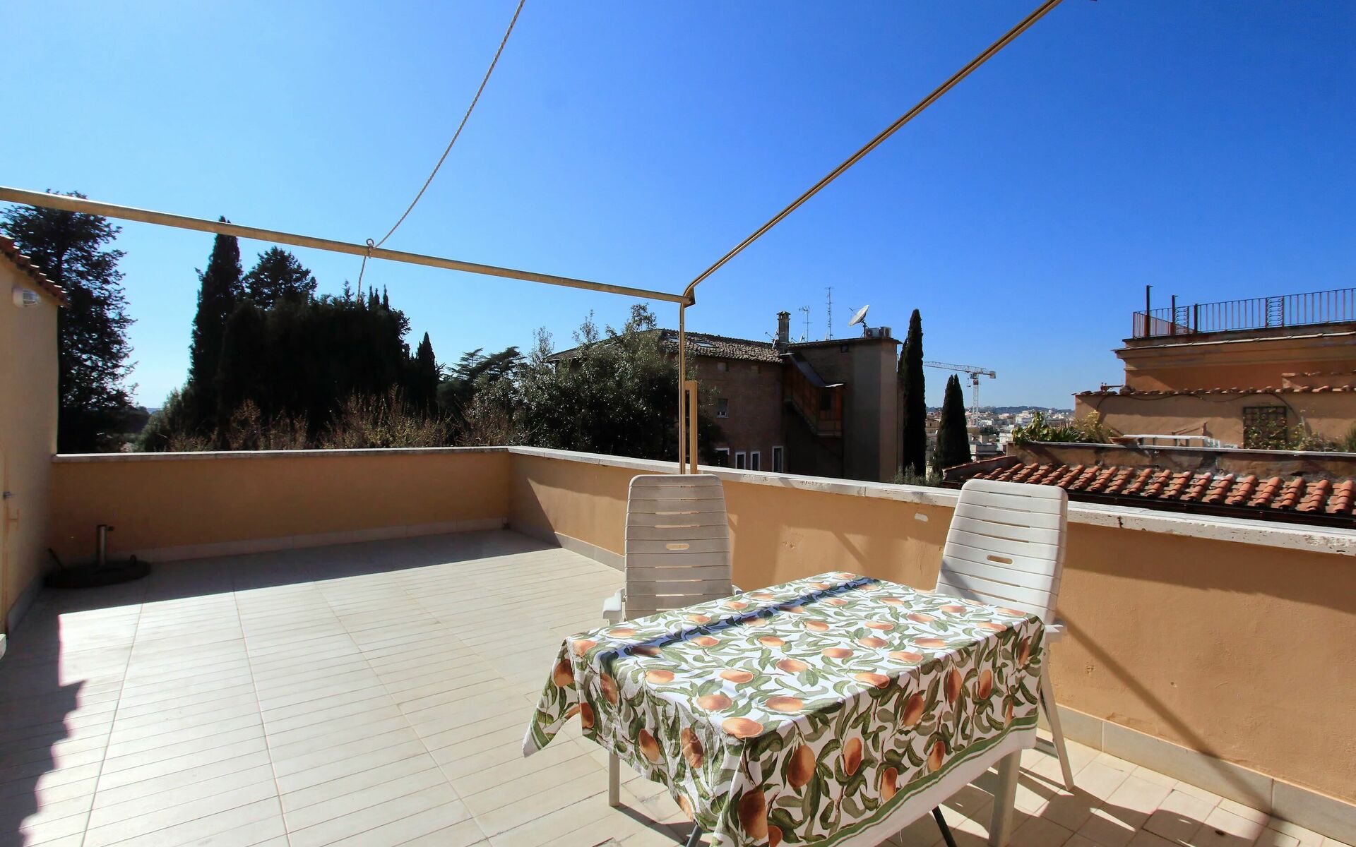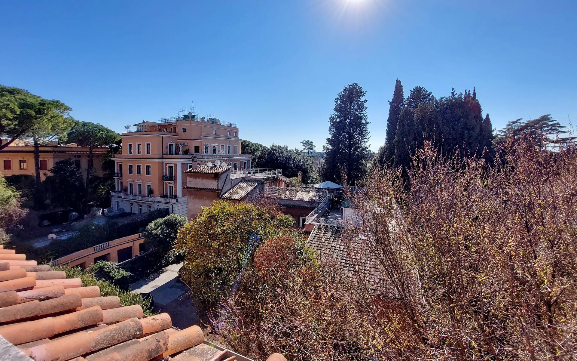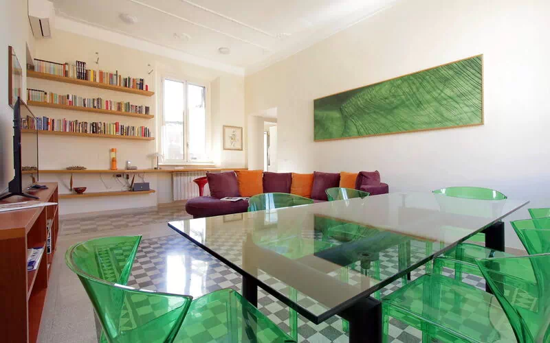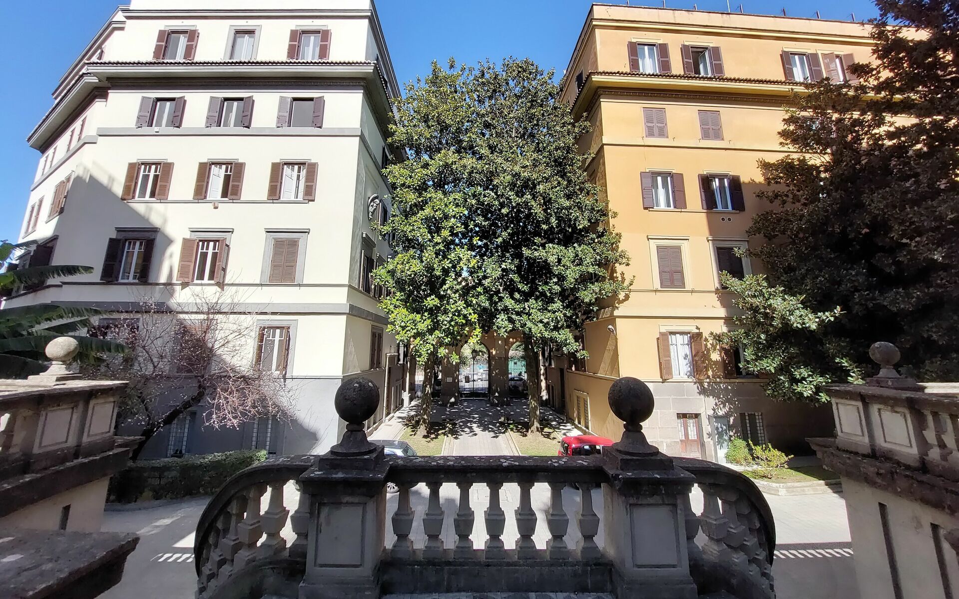 Parioli is one of the most elegant and residential neighbourhoods of Rome, not far from the city centre. It is full of high-level restaurants, cinemas, theatres and stores of the best brands. It is located between two large parks: Villa Ada, ideal for sports lovers, and Villa Borghese, an enchanting setting for pleasant walks to Via Veneto, Piazza di Spagna, Piazza del Popolo and the famous Borghese Museum. Newly renovated 110 sqm apartment with a terrace in a twentieth century, Baroque style building in a wonderful condominium in the Pinciano (Parioli) neighbourhood. The condominium is located 3.5 km north east of the historic centre of Rome and only a 12 minute walk from Villa Borghese. The condominium has a large garden and there is a 5 minute walk and stairs(30) to do from the entrance to the building to the apartment.