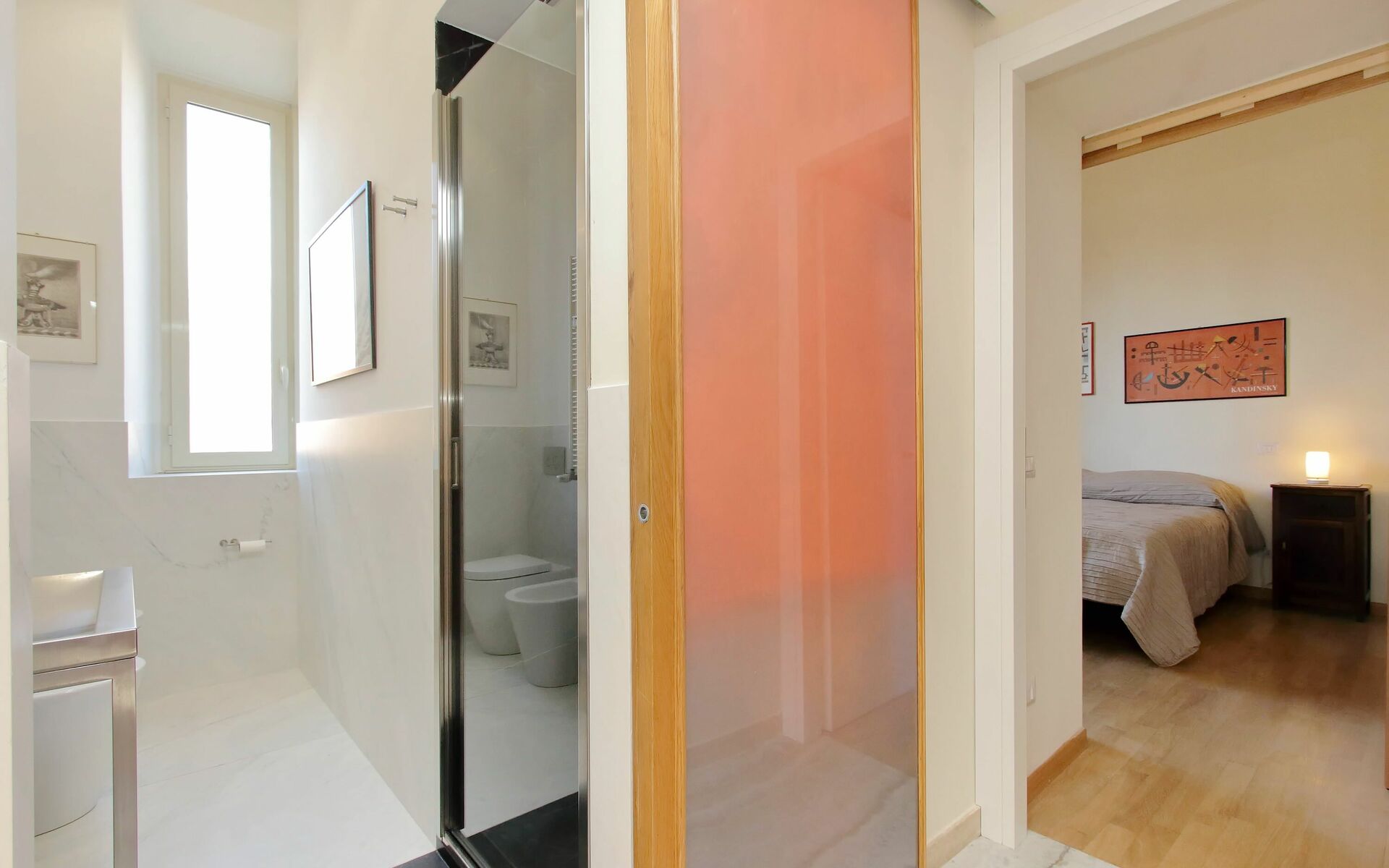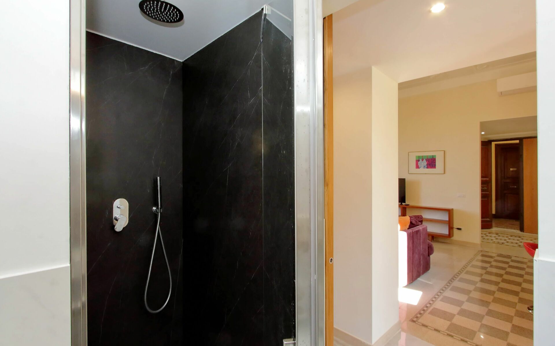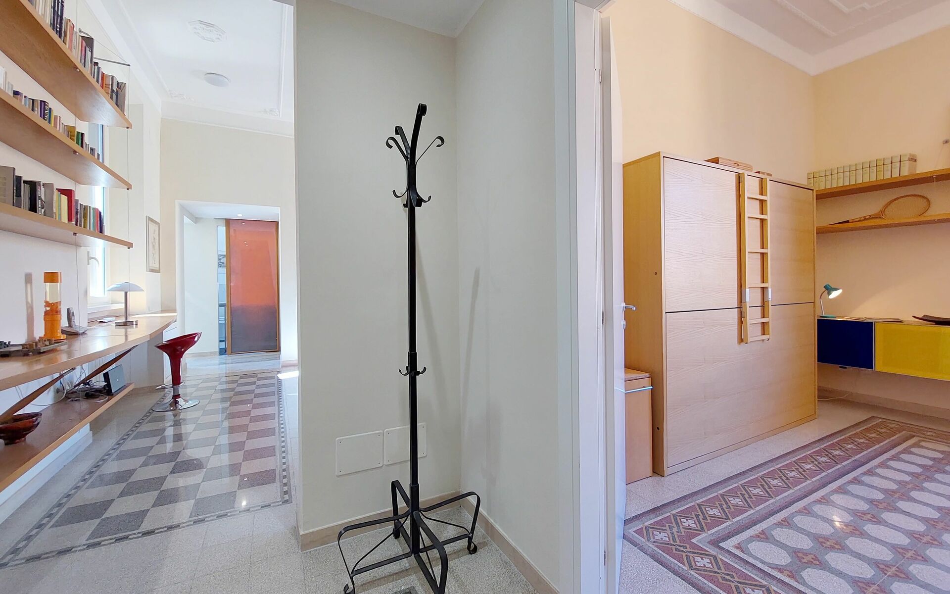 Parioli is one of the most elegant and residential neighbourhoods of Rome, not far from the city centre. It is full of high-level restaurants, cinemas, theatres and stores of the best brands. It is located between two large parks: Villa Ada, ideal for sports lovers, and Villa Borghese, an enchanting setting for pleasant walks to Via Veneto, Piazza di Spagna, Piazza del Popolo and the famous Borghese Museum. Newly renovated 110 sqm apartment with a terrace in a twentieth century, Baroque style building in a wonderful condominium in the Pinciano (Parioli) neighbourhood. The condominium is located 3.5 km north east of the historic centre of Rome and only a 12 minute walk from Villa Borghese. The condominium has a large garden and there is a 5 minute walk and stairs(30) to do from the entrance to the building to the apartment.
