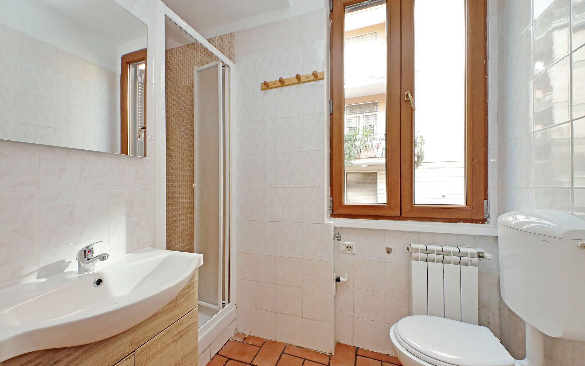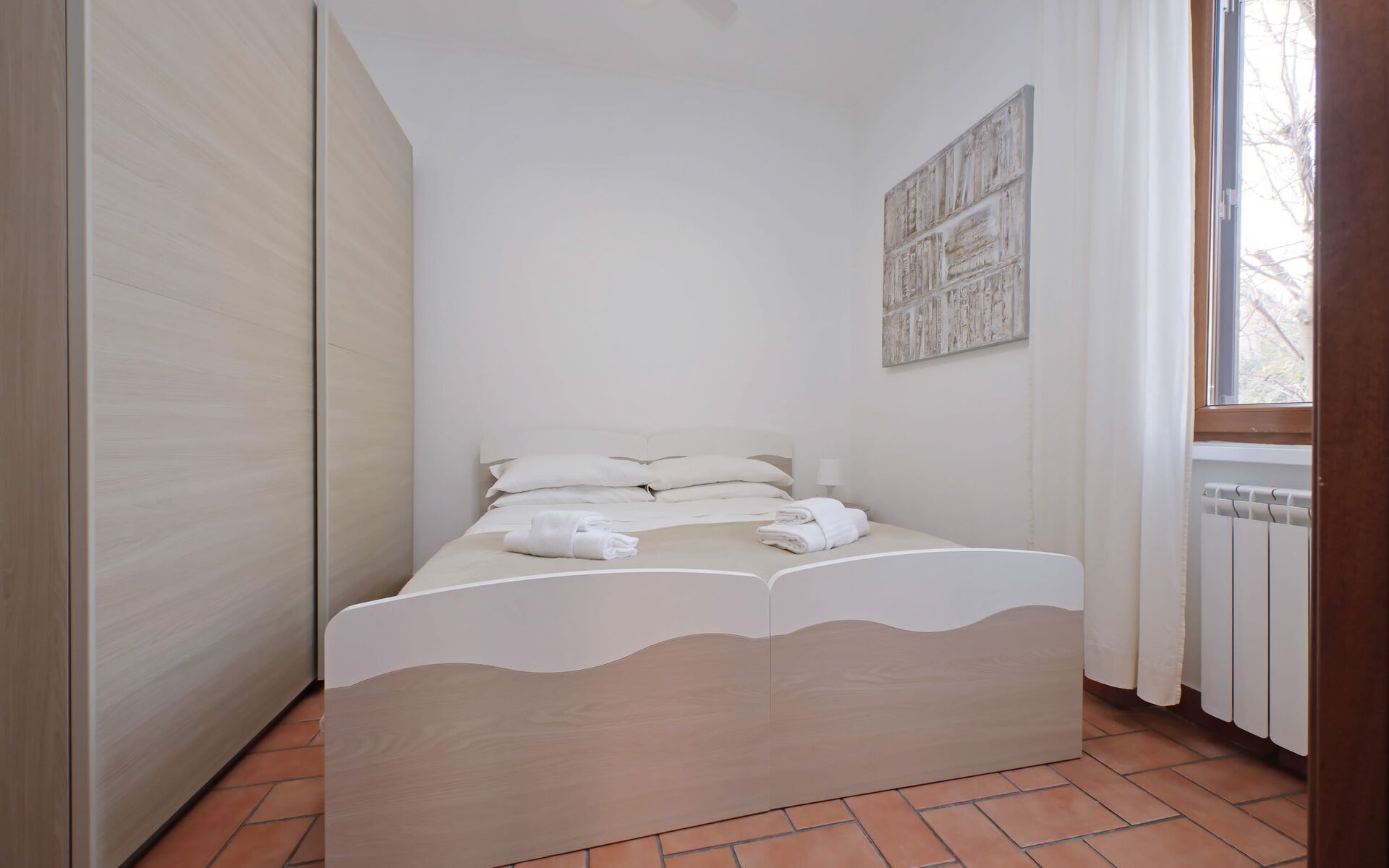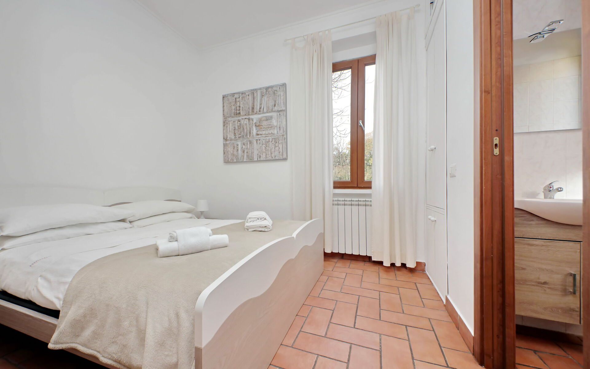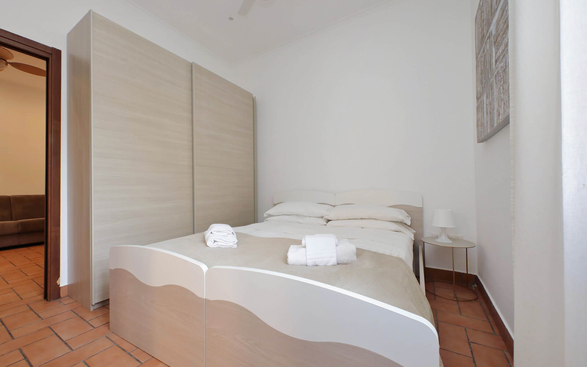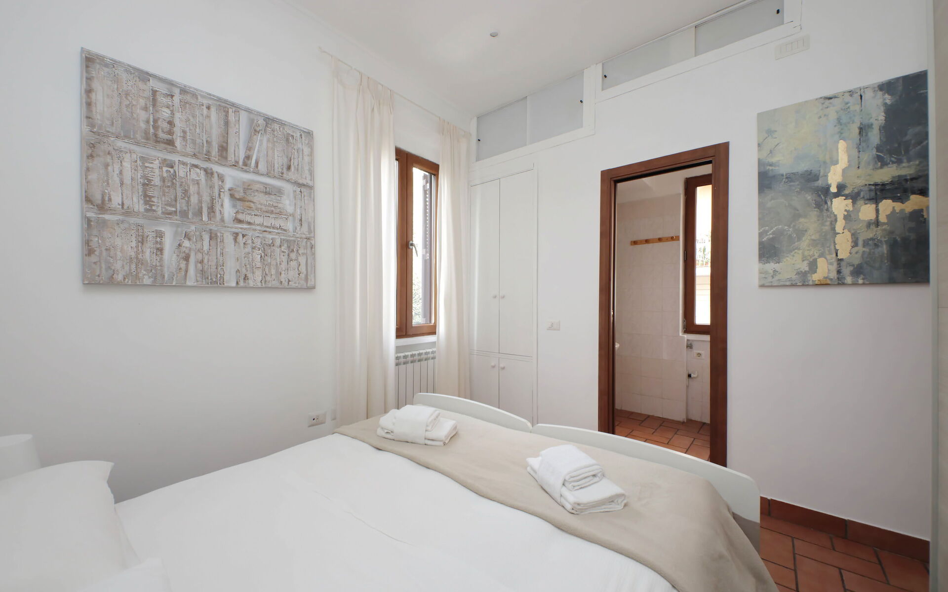 A minimal and comfortable apartment of approximately 45sqm ideal for business, study and holiday stays in Via Homs in the Trieste/Africano neighbourhood, one that seems like a village despite being among the smallest neighbourhoods in Rome. This street dates back to 1922 and was dedicated to the city of Homs in Libya and is just a few steps away from the famous Devil's Chair which in medieval times was believed to be a demonic place and the throne of Satan. The underground line B, Viale Libia station is a 10-minute walk away. The apartment is located on the first floor (no lift/18 steps) and consists of a living room with kitchenette and a bedroom with ensuite bathroom.