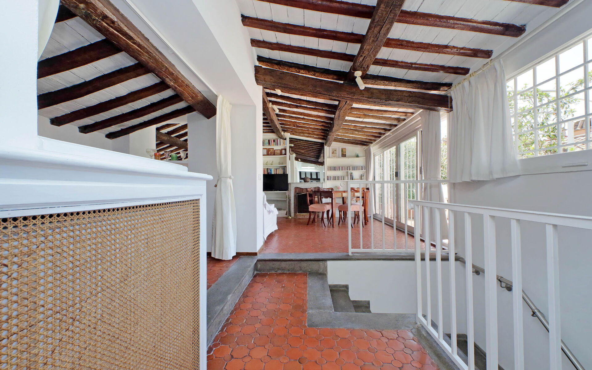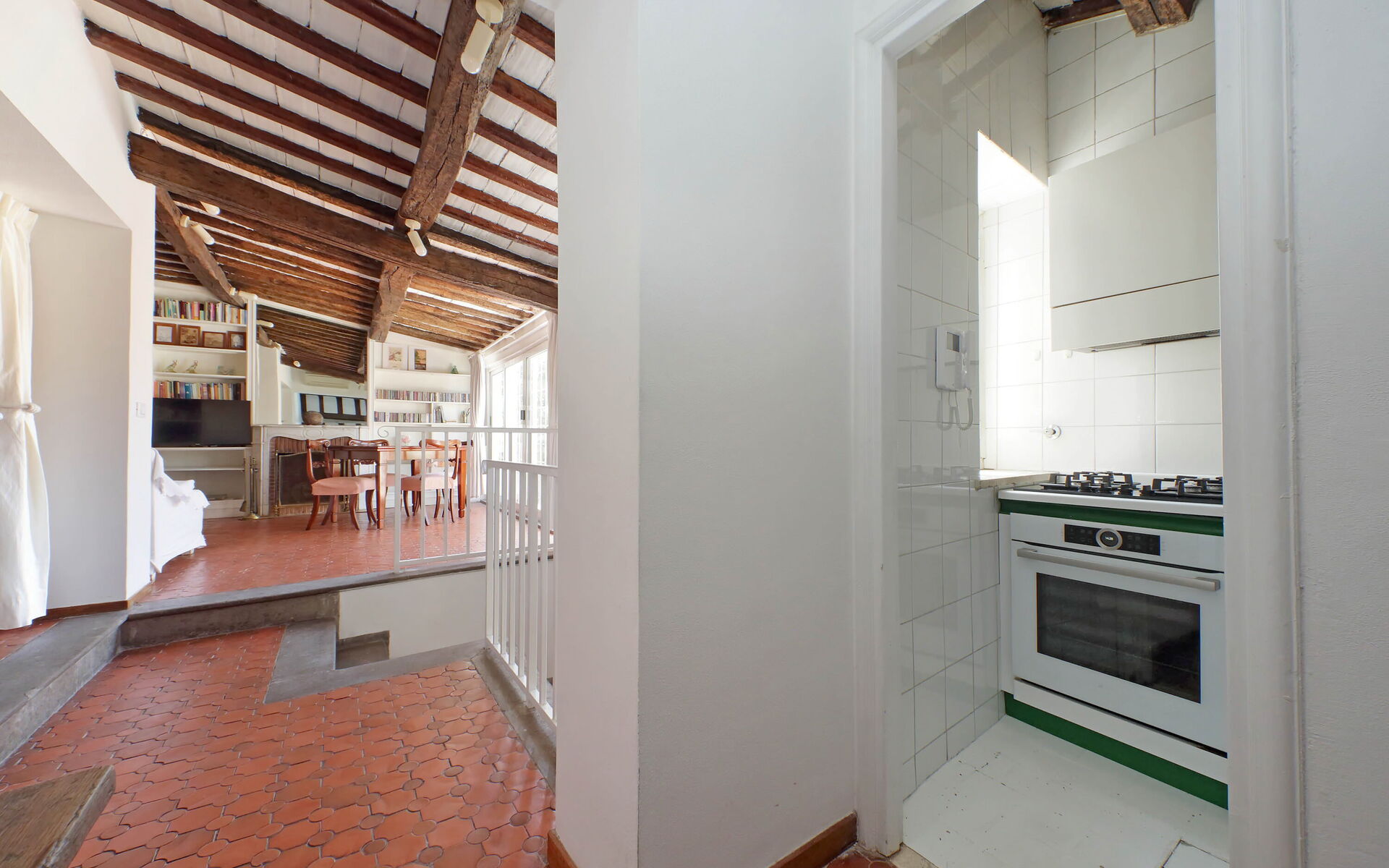 The apartment is developed on two floors with an internal staircase(10 steps), the living room, kitchen and terrace are located on the first floor and the two bedrooms and bathrooms are located on the floor through which you access the house.