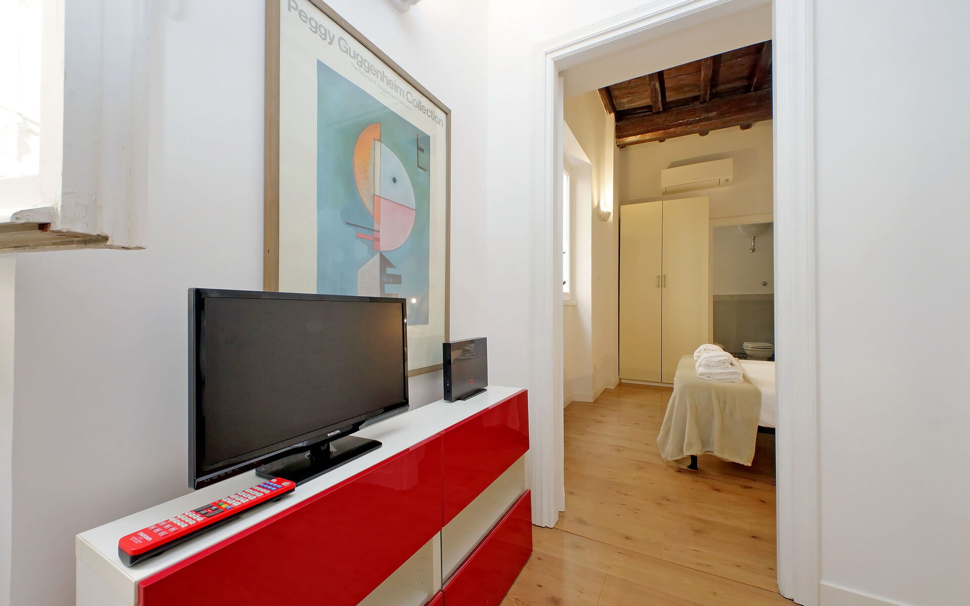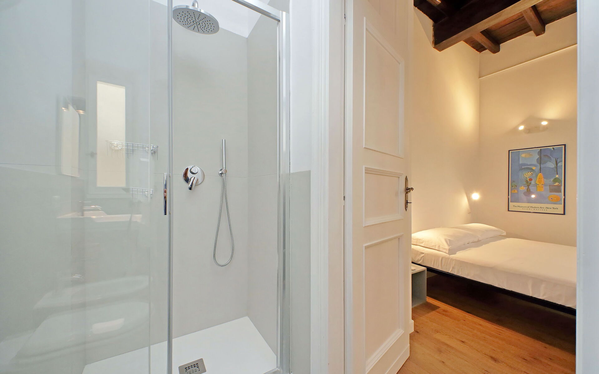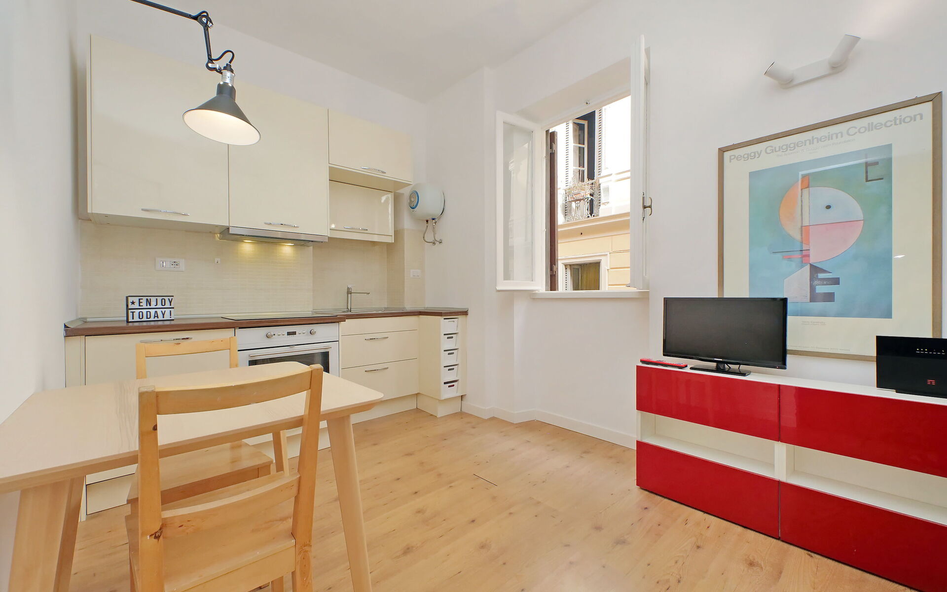 Cosy and quiet apartment in Monti, certainly one of the best-loved neighbourhoods in the centre of Rome, from where you can reach the Colosseum in 12 minutes on foot. The underground station Cavour is only 400 m away and the central railway station Termini is 700 m away. The apartment is approximately 32 sq. m. and is located on the first floor (without an elevator), and consists of a bedroom, living room with kitchenette and a bathroom. All views are external.