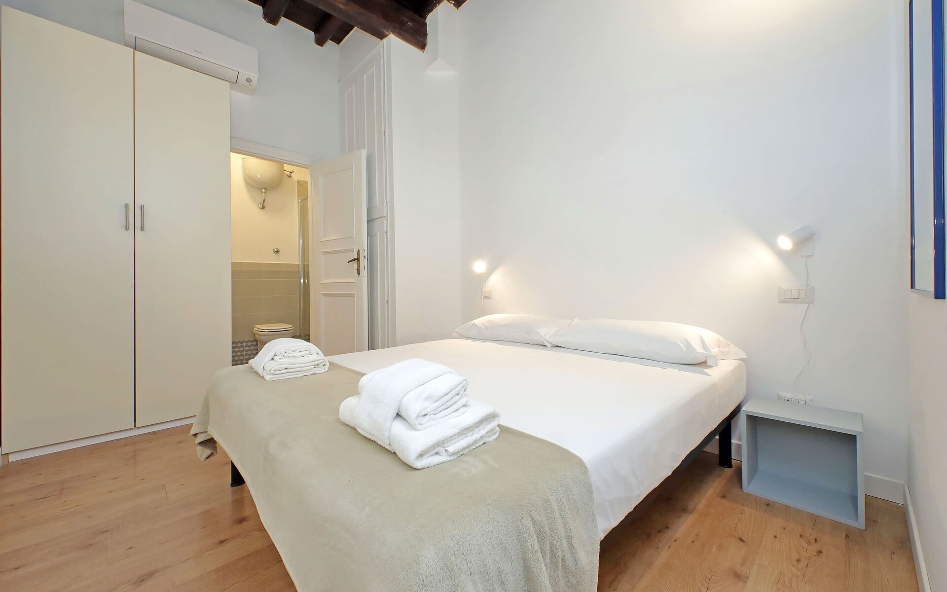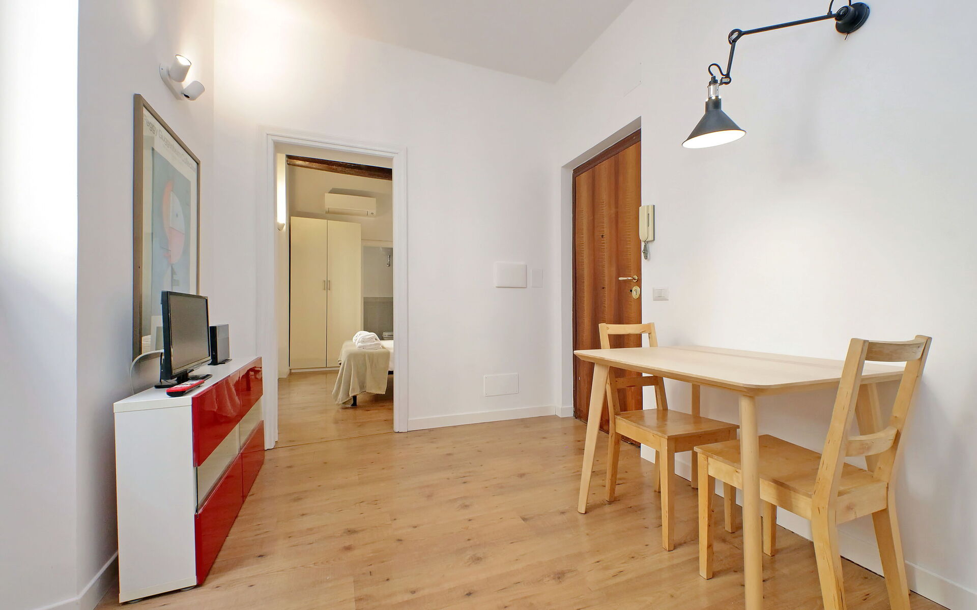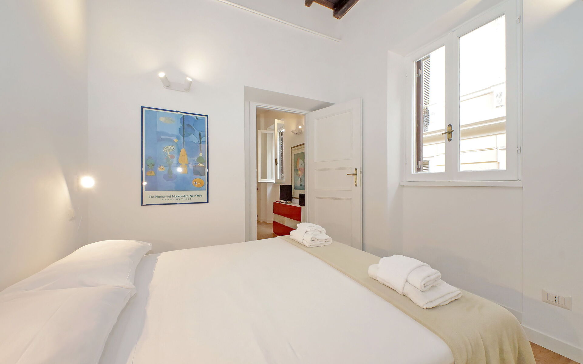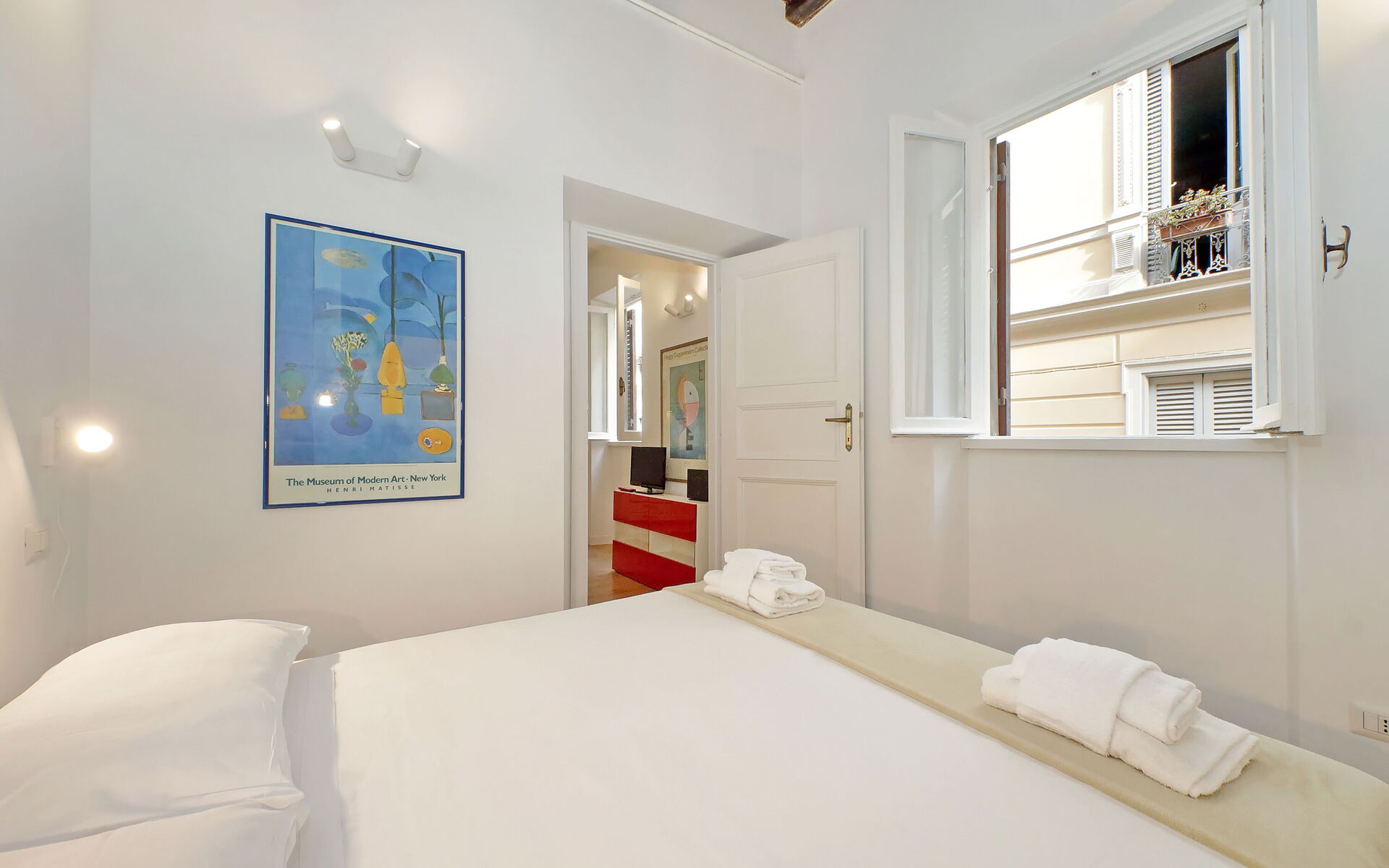 Cosy and quiet apartment in Monti, certainly one of the best-loved neighbourhoods in the centre of Rome, from where you can reach the Colosseum in 12 minutes on foot. The underground station Cavour is only 400 m away and the central railway station Termini is 700 m away. The apartment is approximately 32 sq. m. and is located on the first floor (without an elevator), and consists of a bedroom, living room with kitchenette and a bathroom. All views are external.