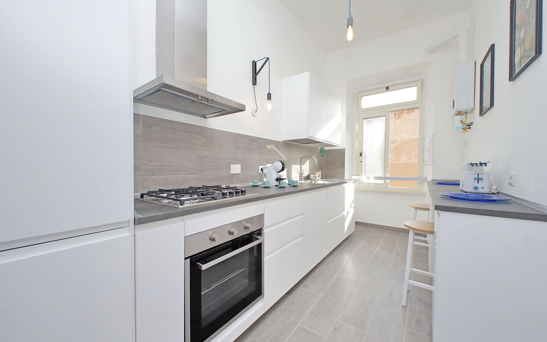 Beautiful, bright newly renovated two-bedroom, two-bathroom apartment located on the fifth floor with an elevator in a period building in the Della Vittoria neighbourhood, one of the most beautiful neighbourhoods in Rome. Central but away from the chaos, close to everything and well connected by public transportation. It is an elegant and quiet neighbourhood, on foot with only 25 minutes you can reach St. Peter's Square and the Vatican Museums, the Metro A, Ottaviano station is 600 m from the apartment.