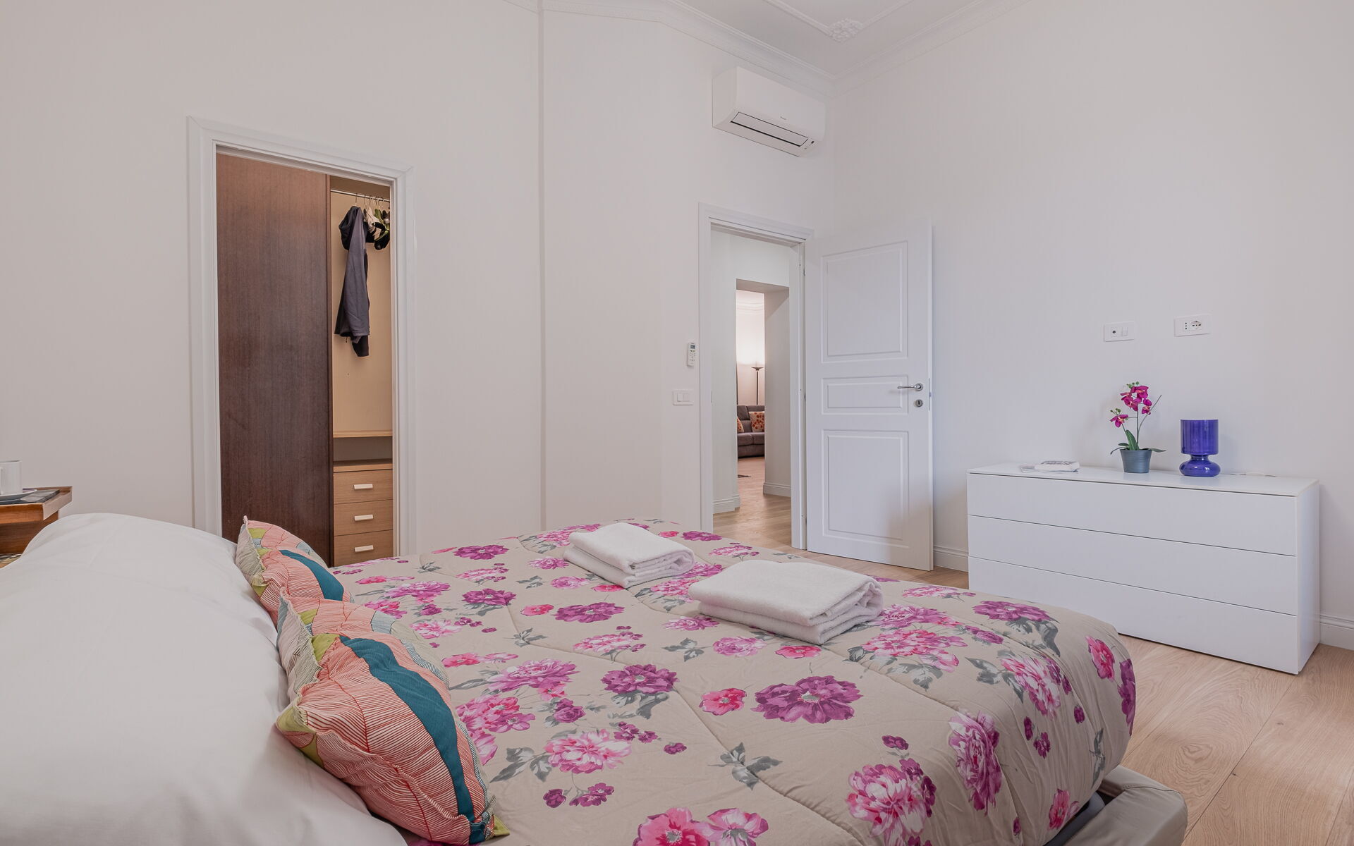 The apartment is equipped with air conditioning, two bathrooms with showers, and a smart TV, and Wi-Fi connection.