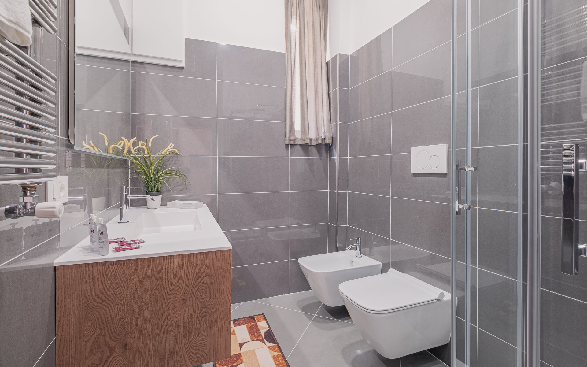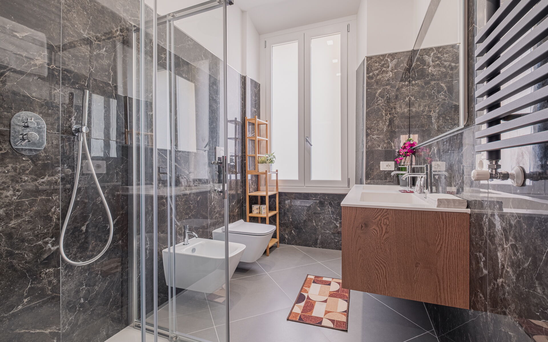 both with shower, bidet and WC