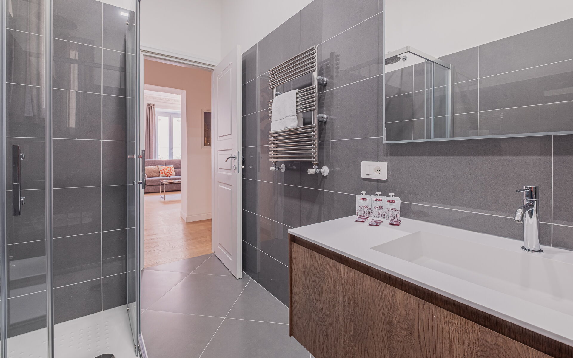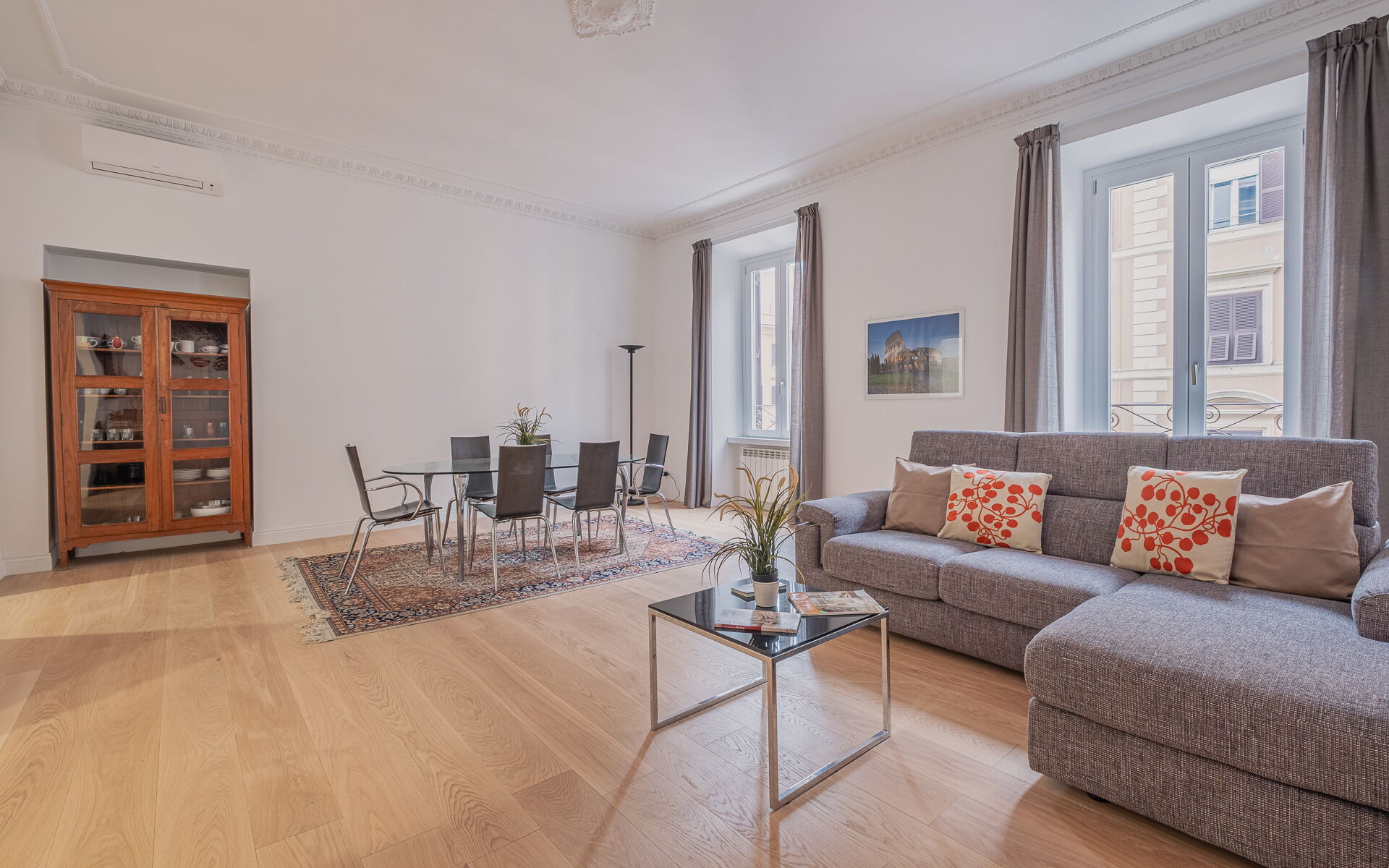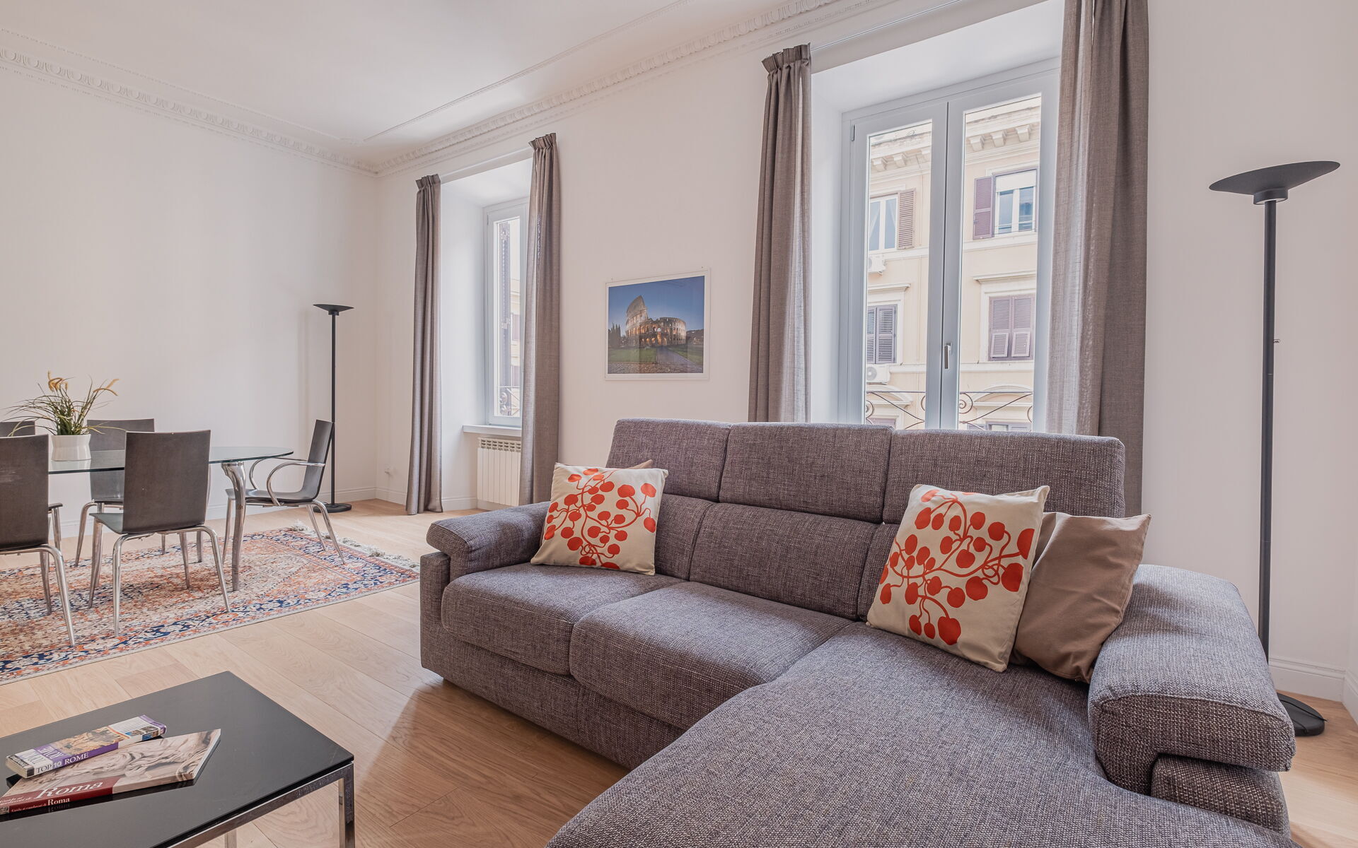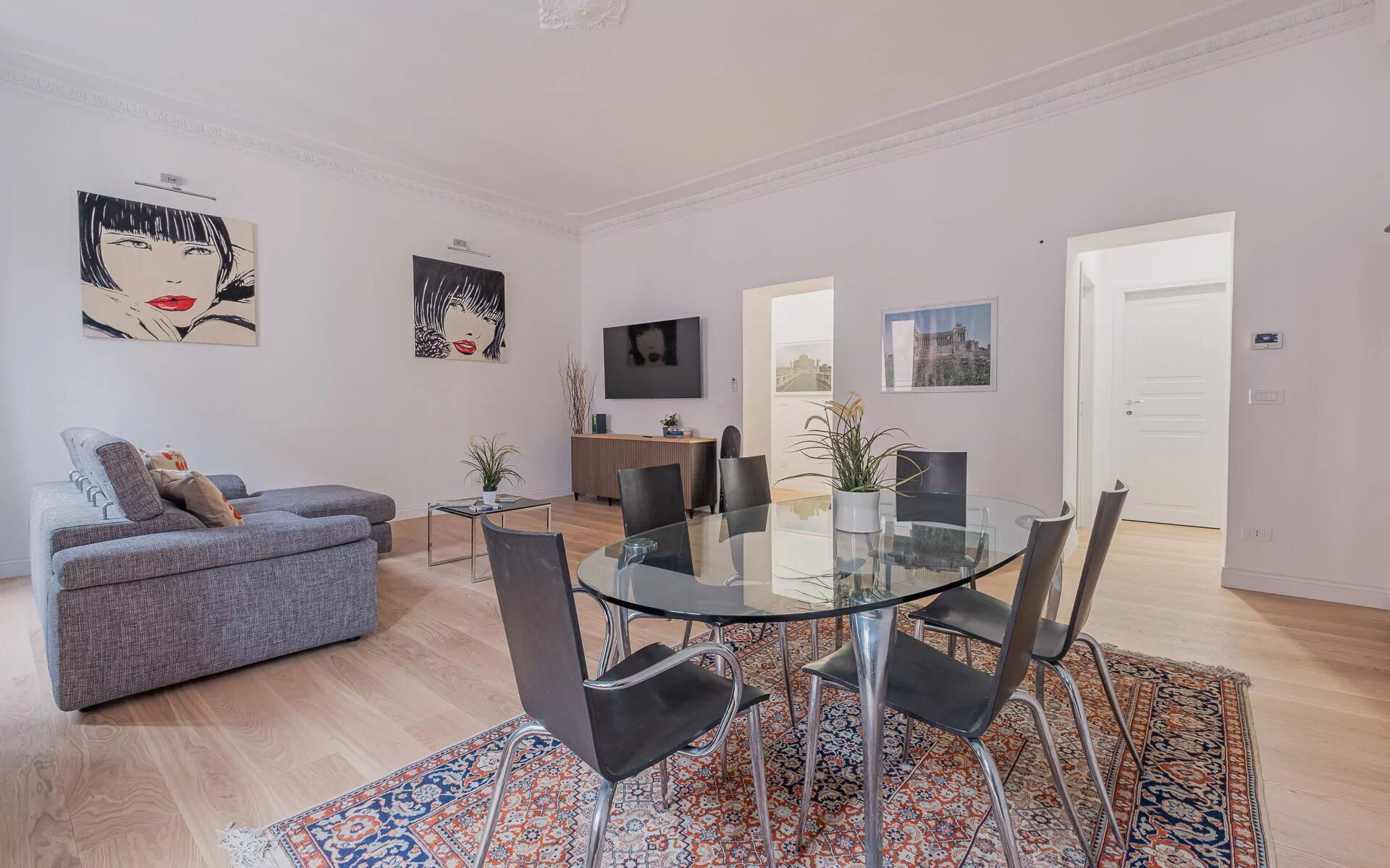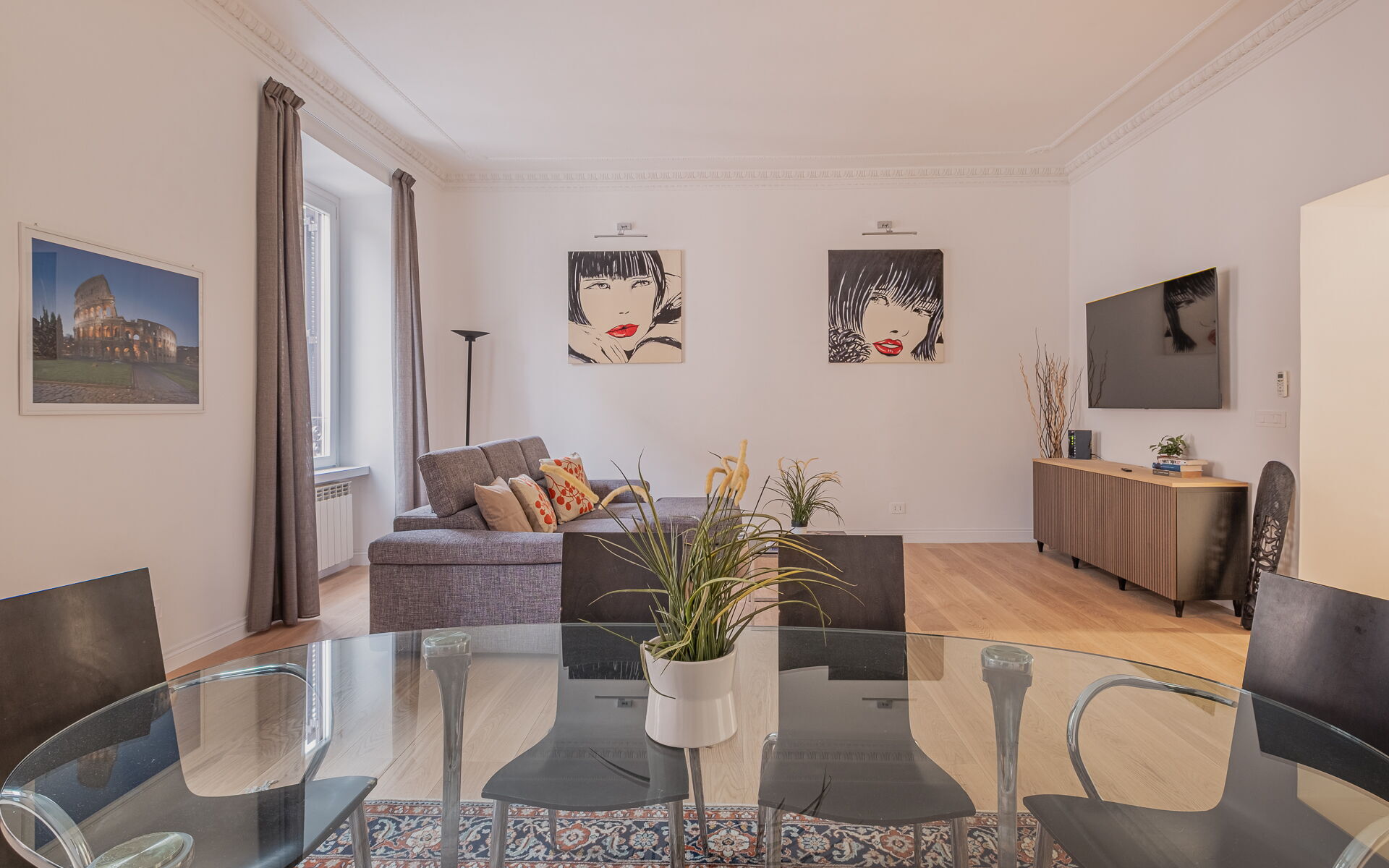 This bright apartment, located on the third floor of a prestigious building, is situated in the elegant Prati district of Rome, an ideal base for experiencing the city. If you're traveling with family or friends, you'll fall in love with its spacious rooms, high ceilings with large windows, and its location near some of the most famous tourist attractions of the Eternal City.
