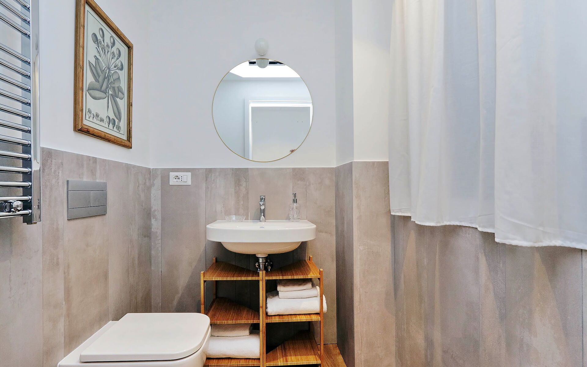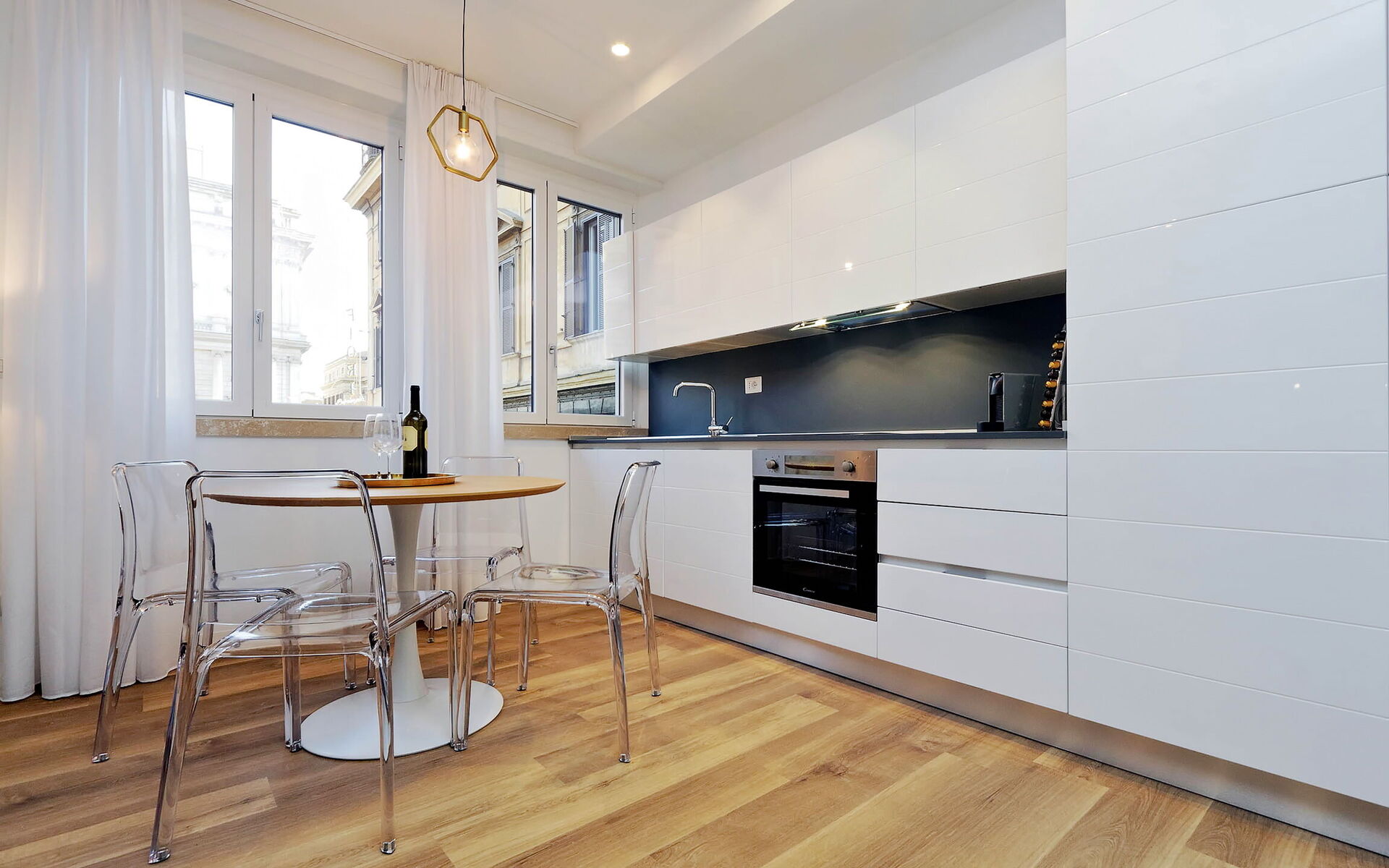 The heating and air conditioning system is centralized with ceiling fan coils with an individual room thermostat. The building was built in 1949 and designed by Architect Angelo di Castro and was totally renovated in late 2019. The architectural particularity and a careful choice of furniture highlight its brightness and modernism.