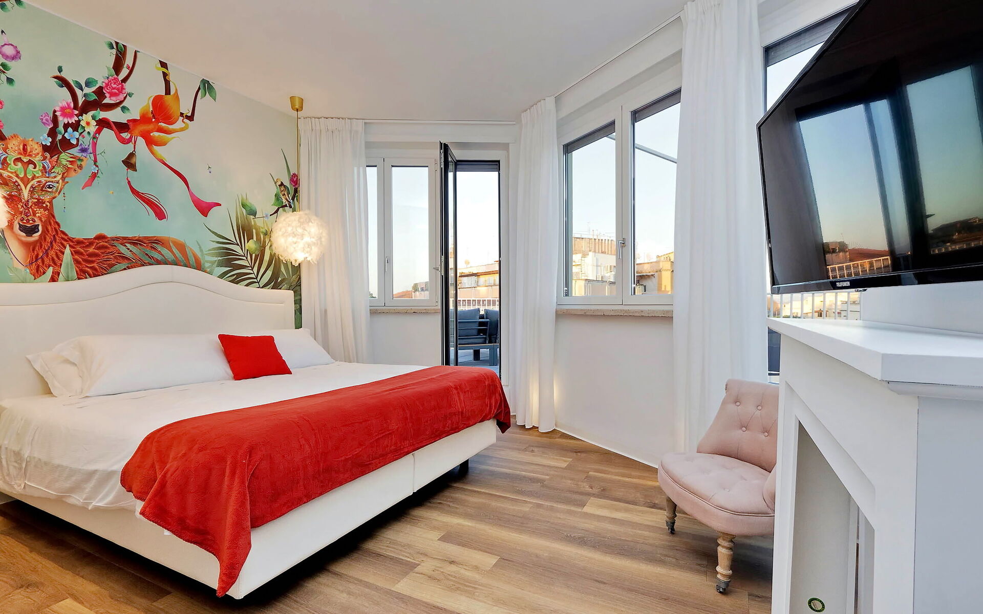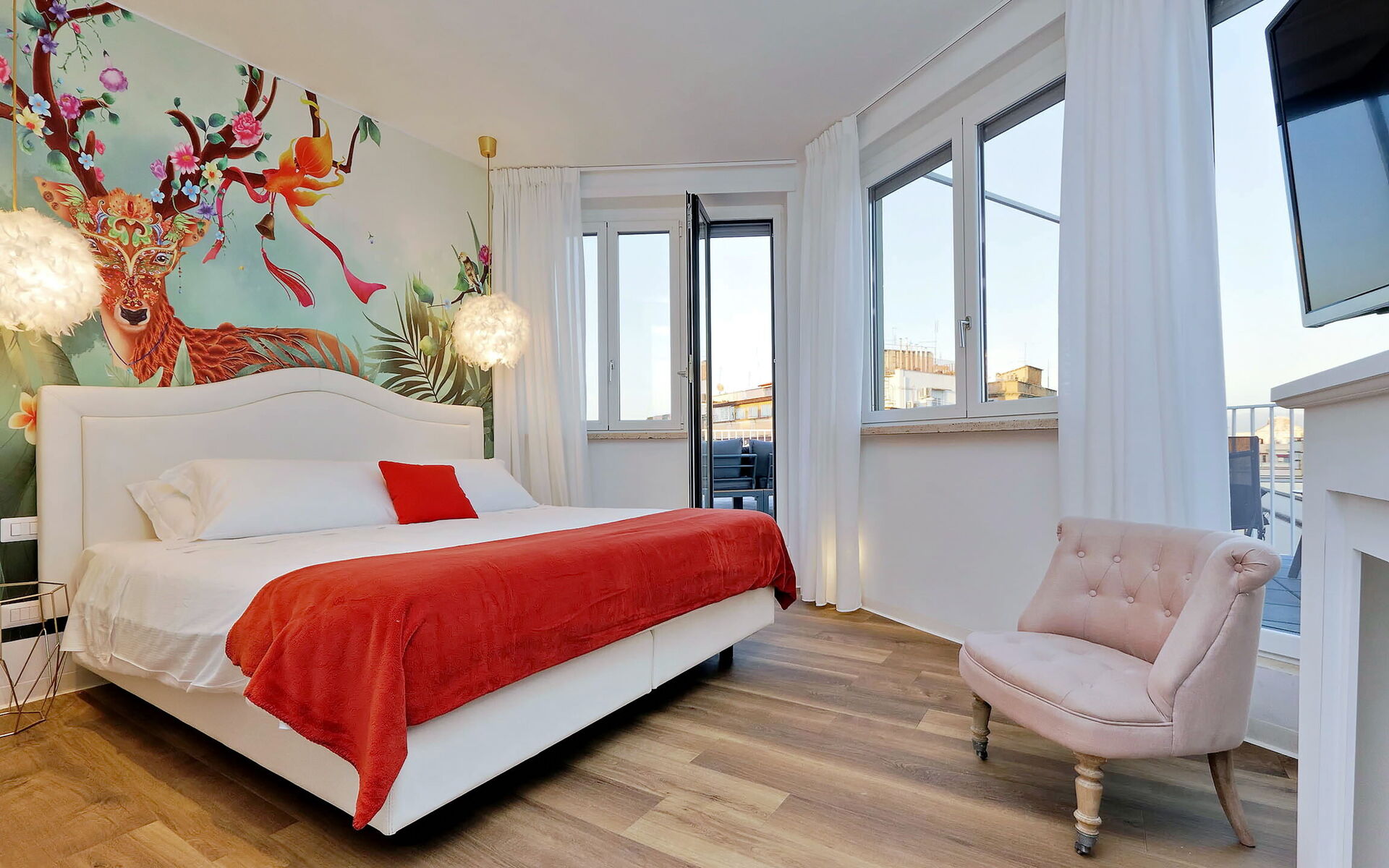 climatisation, fauteuil, lit double, Sortie sur la terrasse, Détecteur de fumée, Télévision