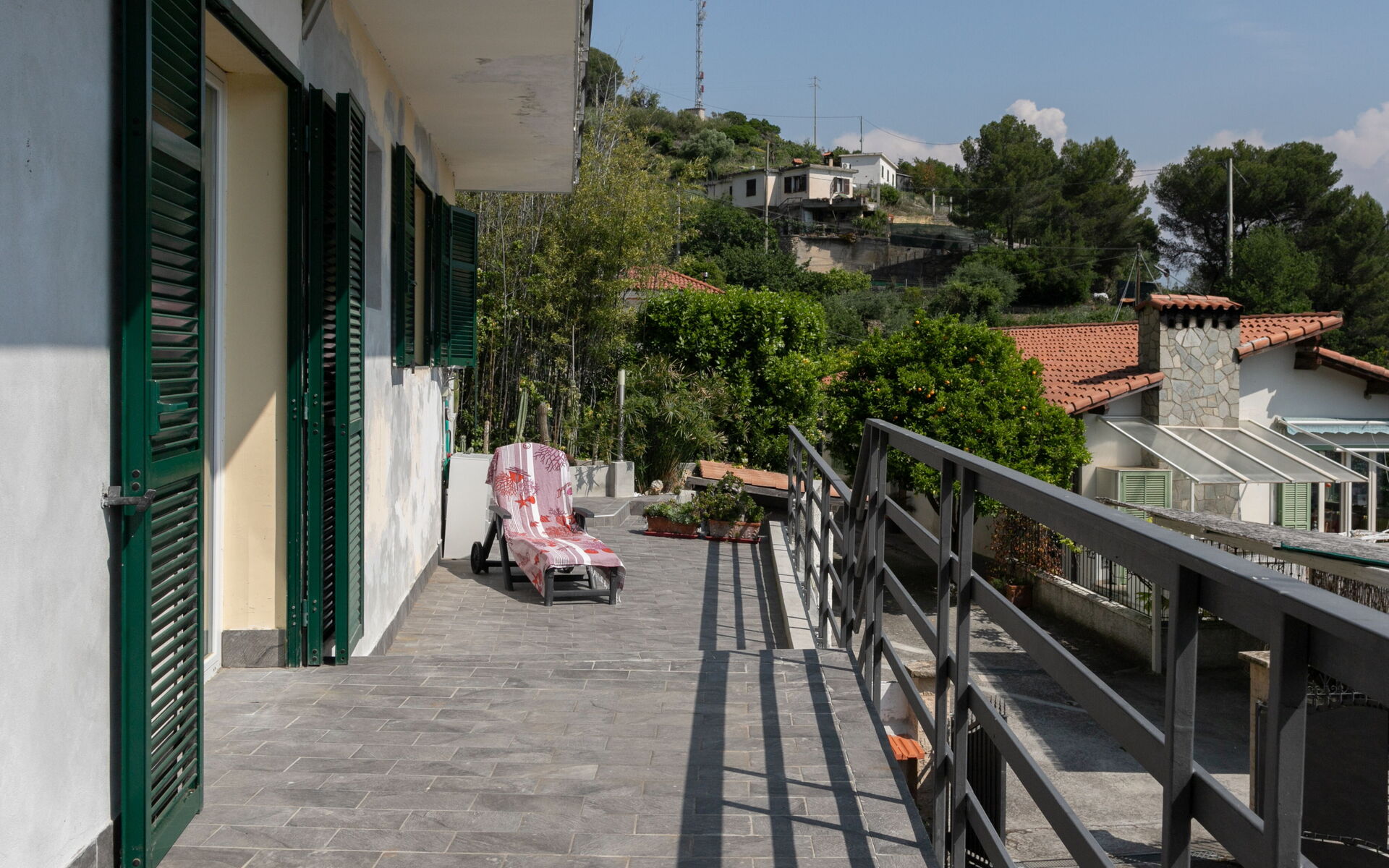 The terrace is set up with a table for 4 people and comfortable deck chairs.