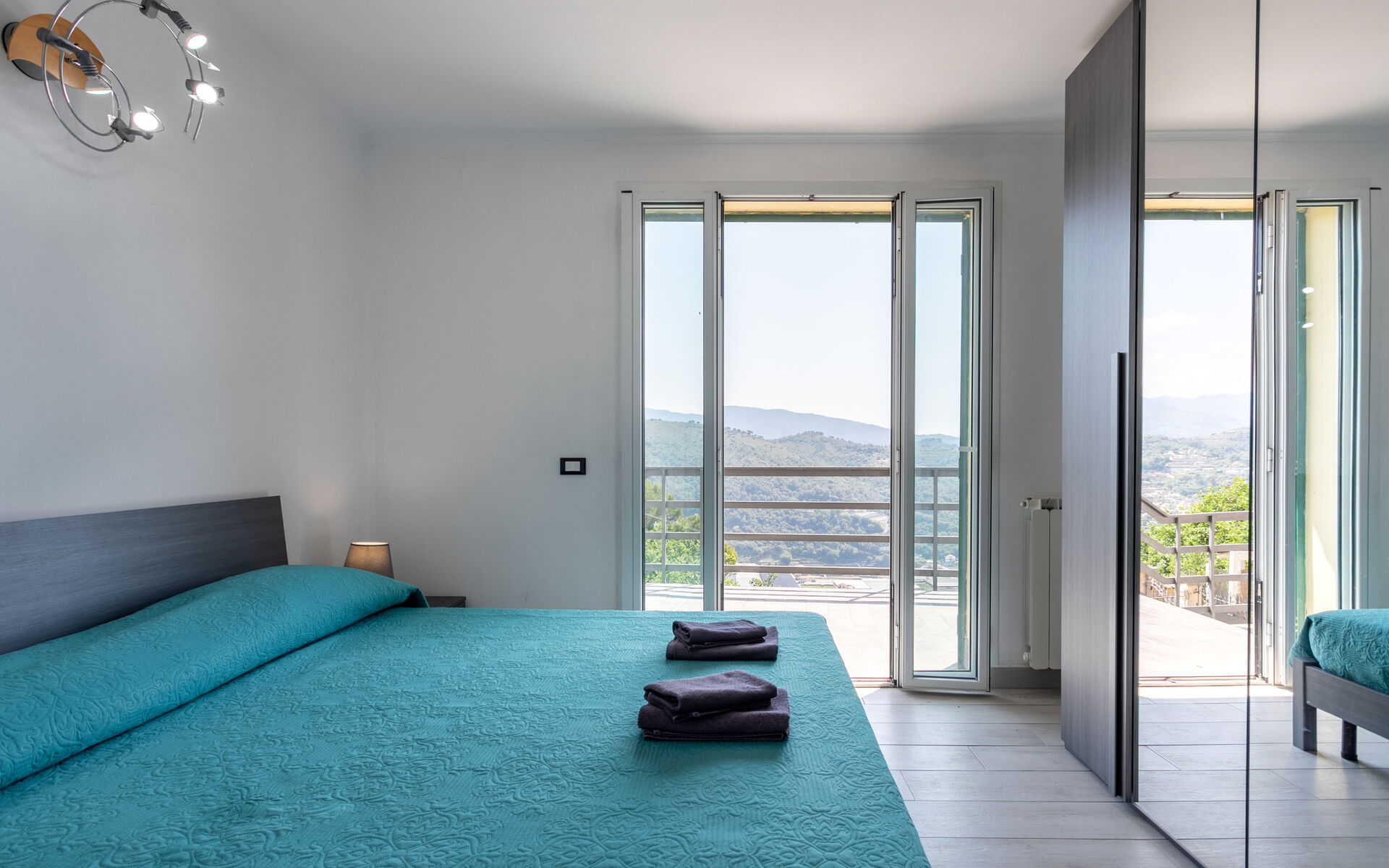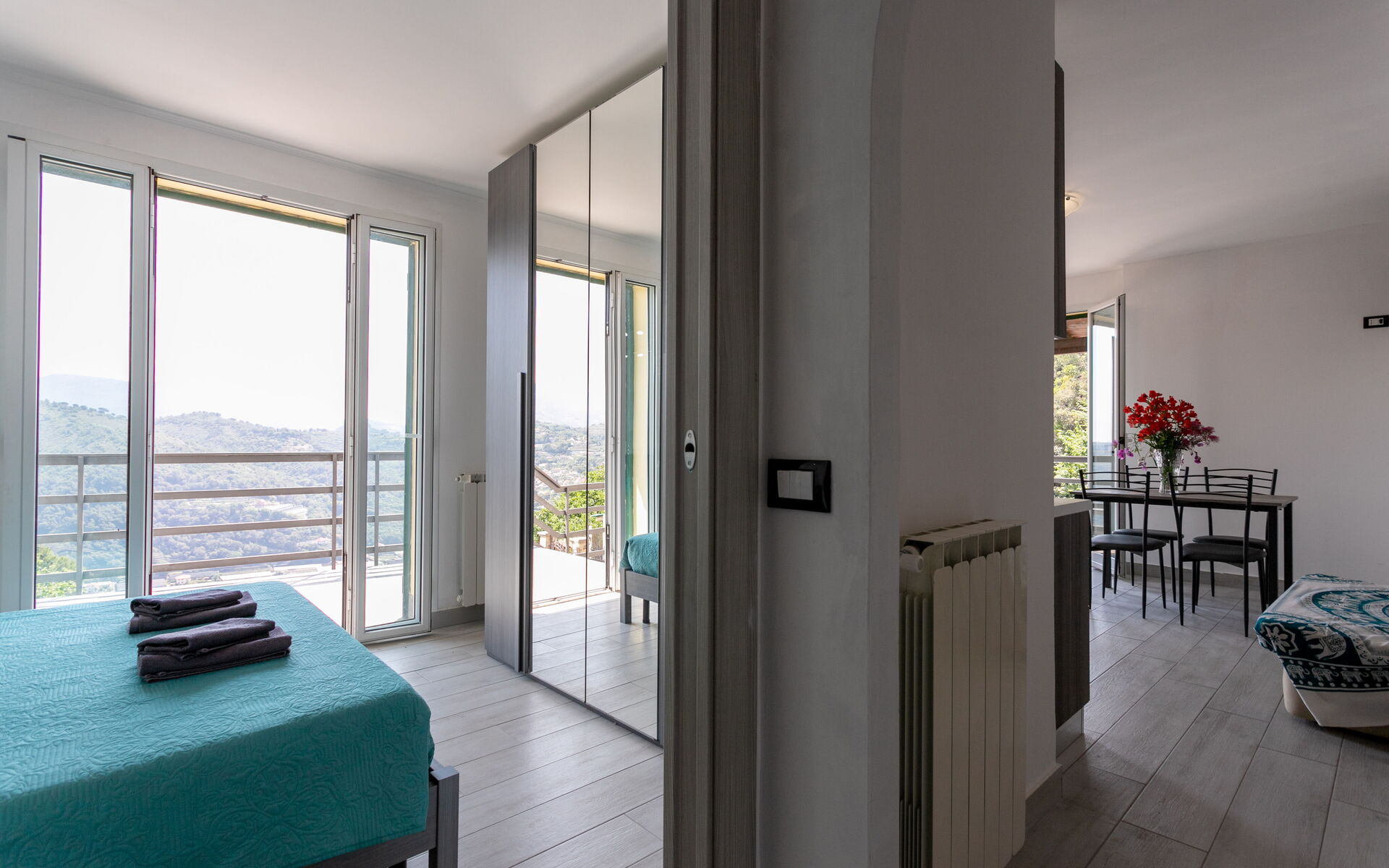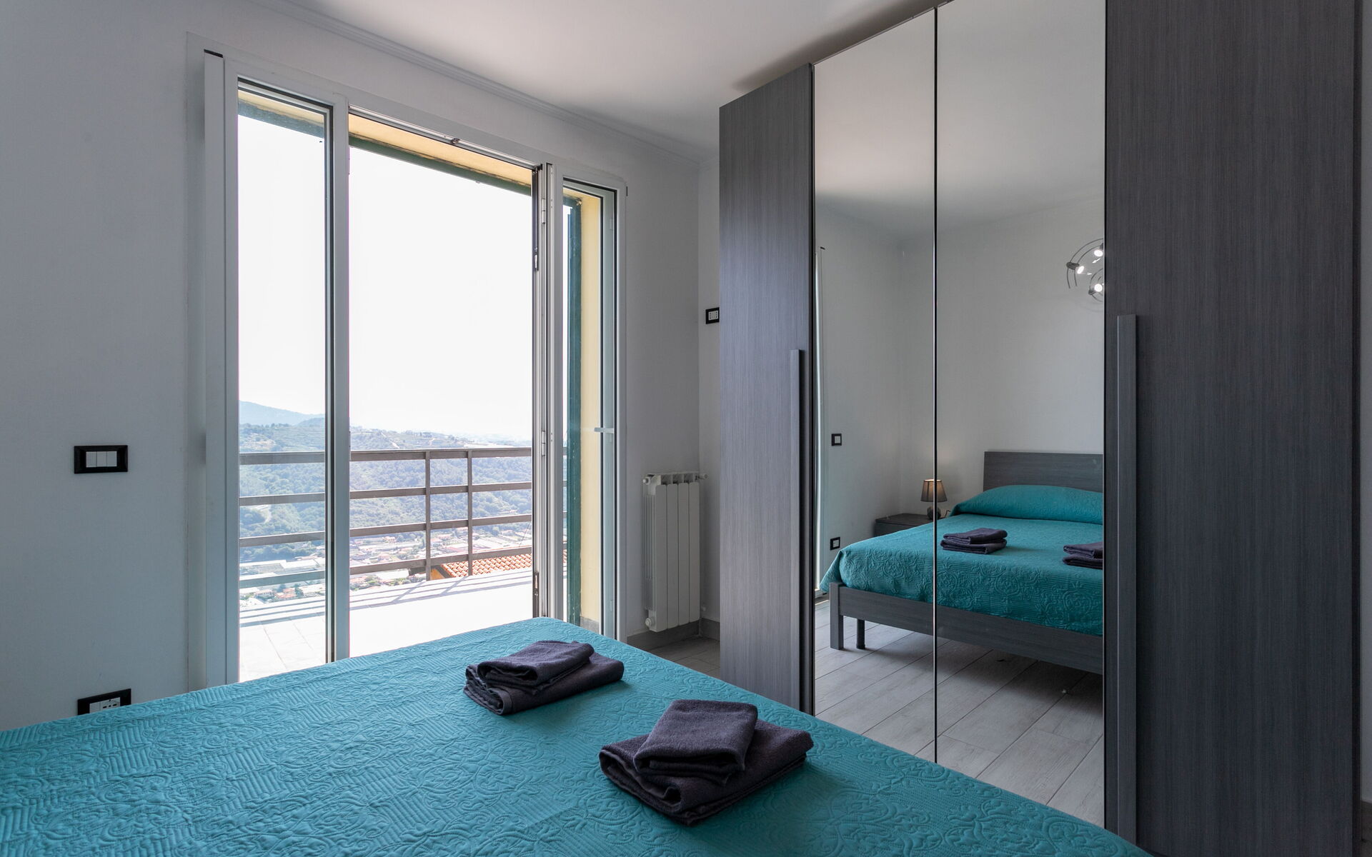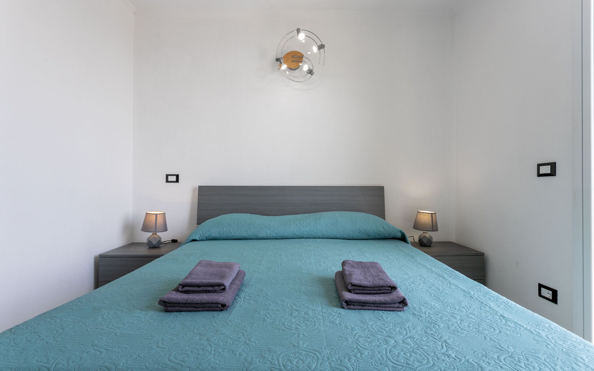 The living area has access to a second private terrace, complete with table for 4 people and comfortable deck chairsand leads to the large bedroom with double bed, 4-door wardrobe and bedside tables.