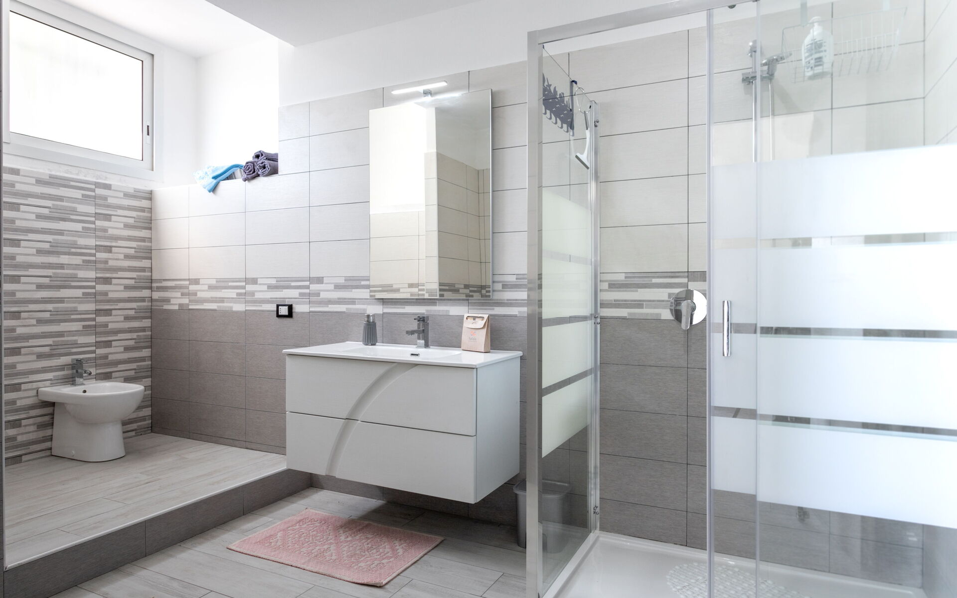 Then we find the very spacious bathroom with window, with shower, sink, bidet and toilet.