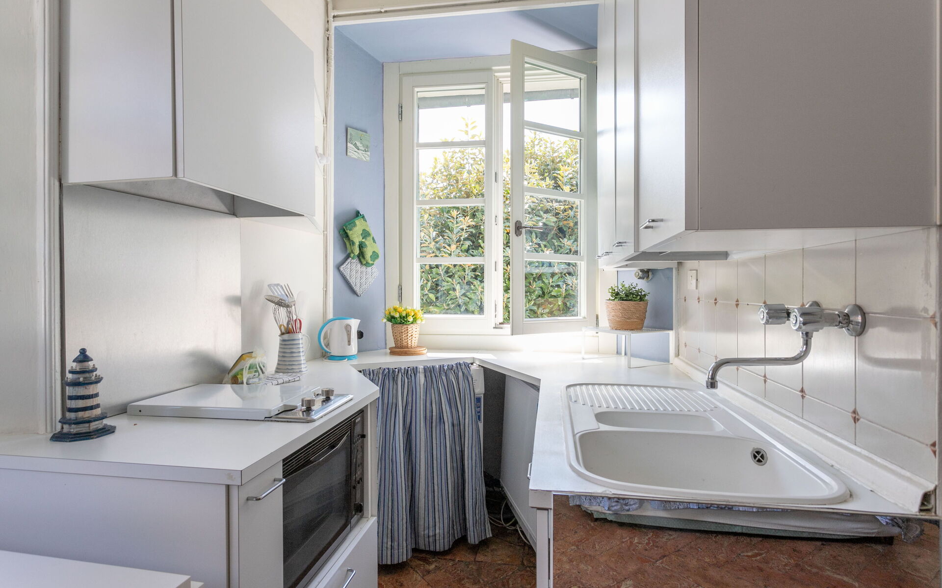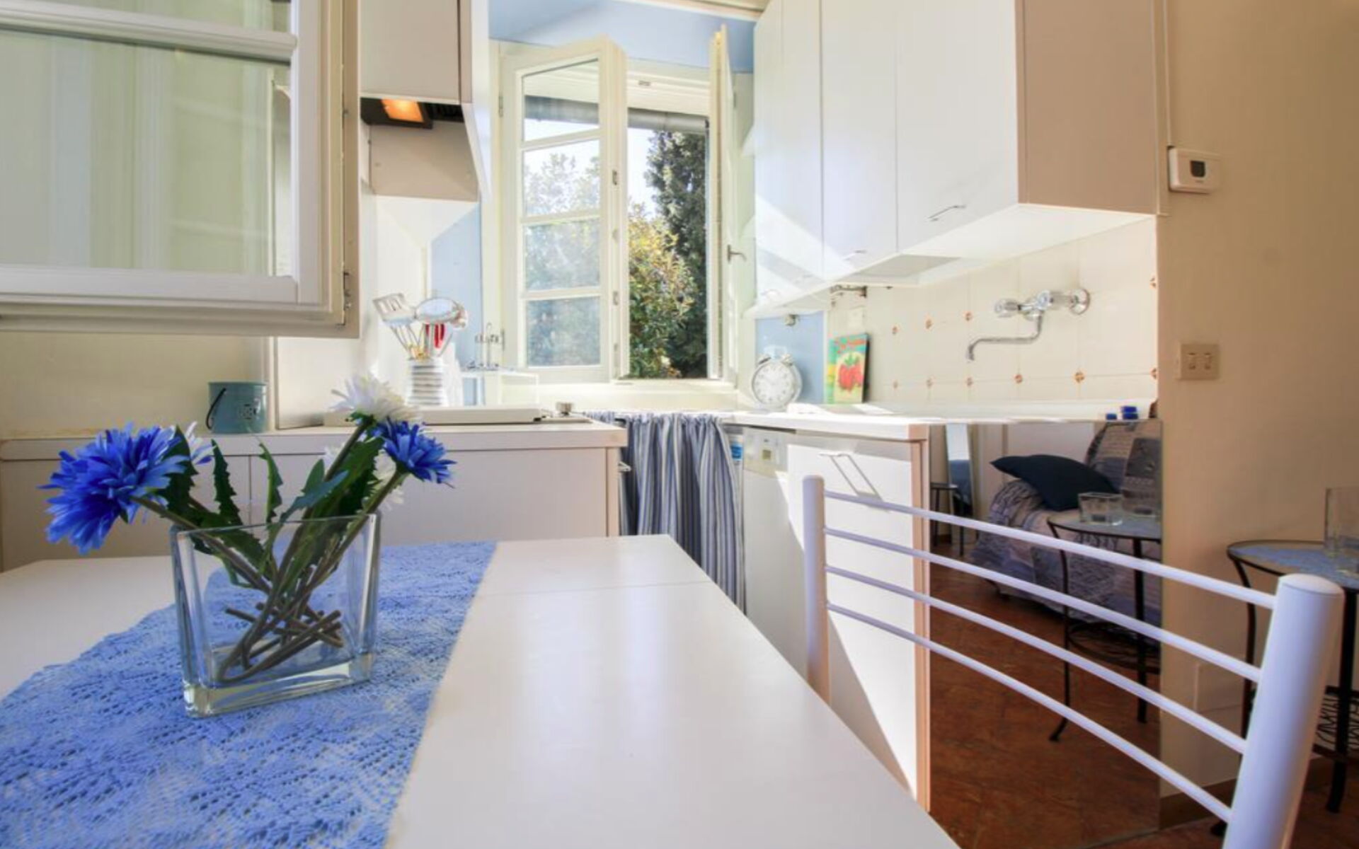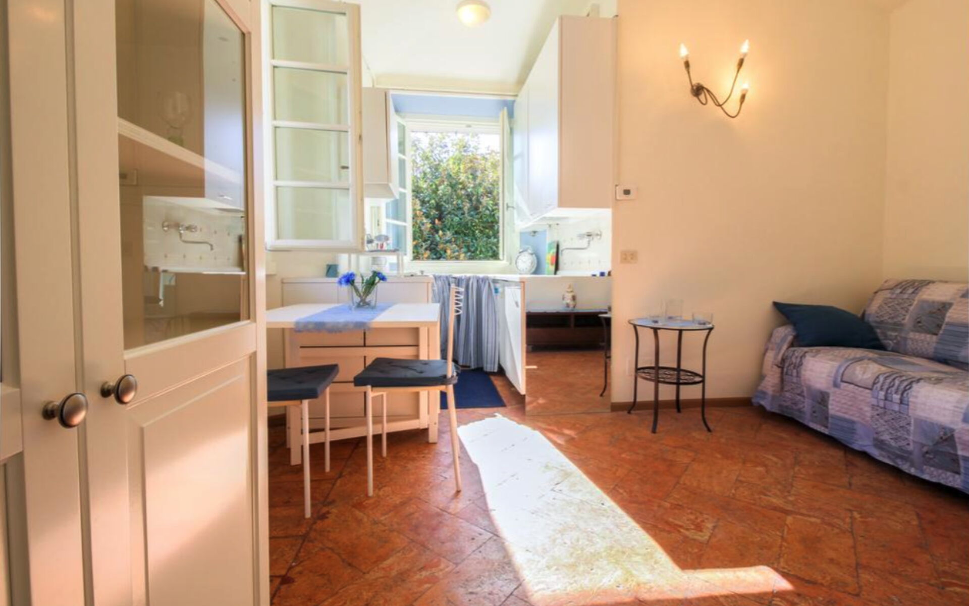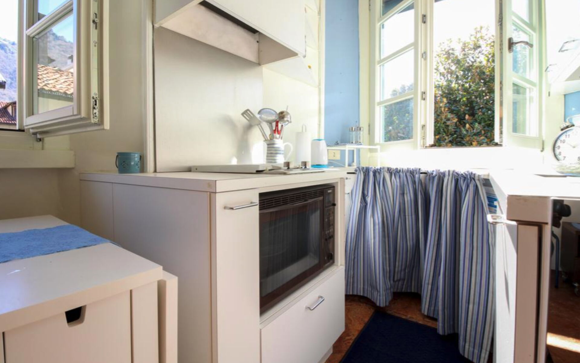 Make a delicious Italian meal in the kitchenette and dine at the small table for two.