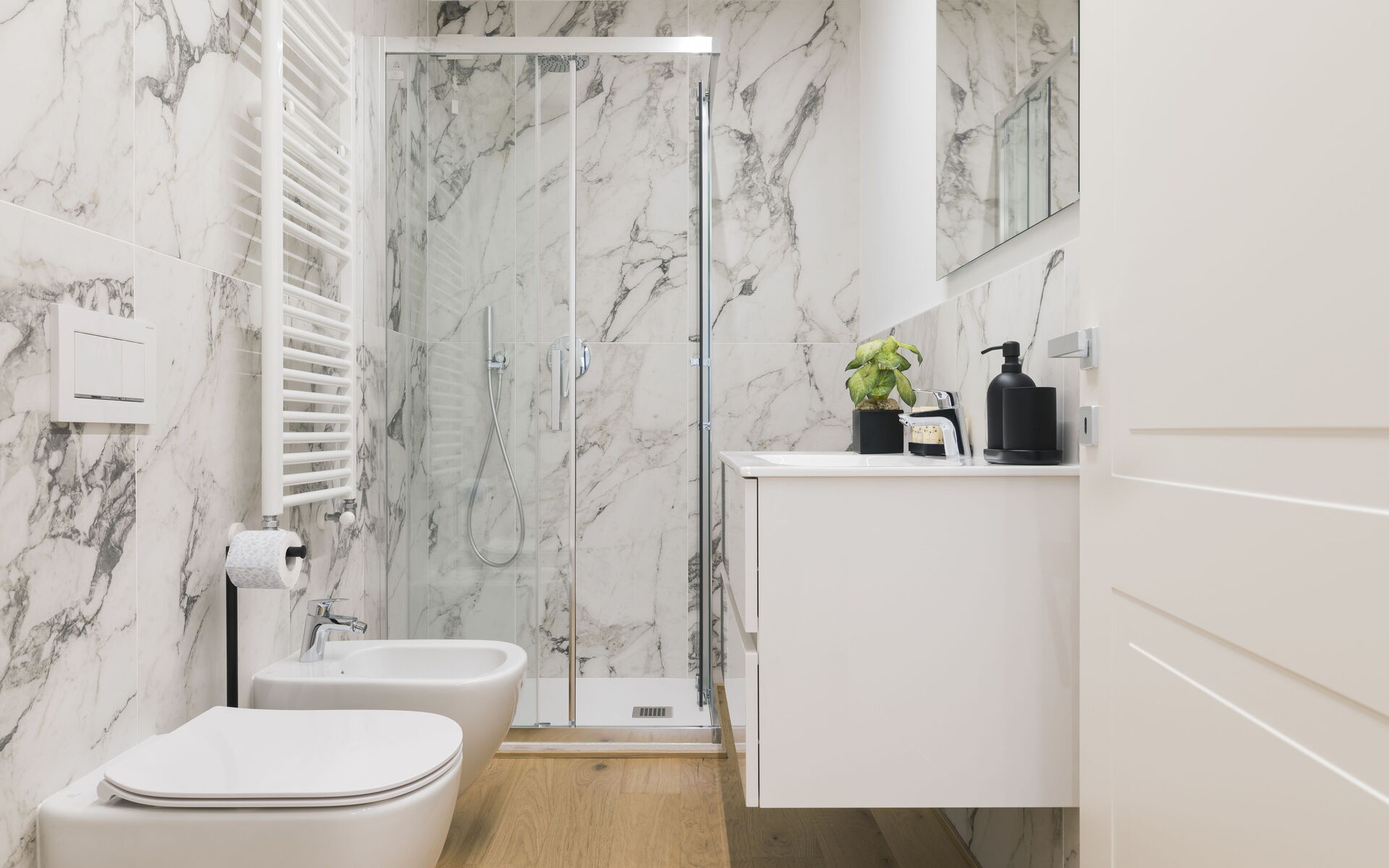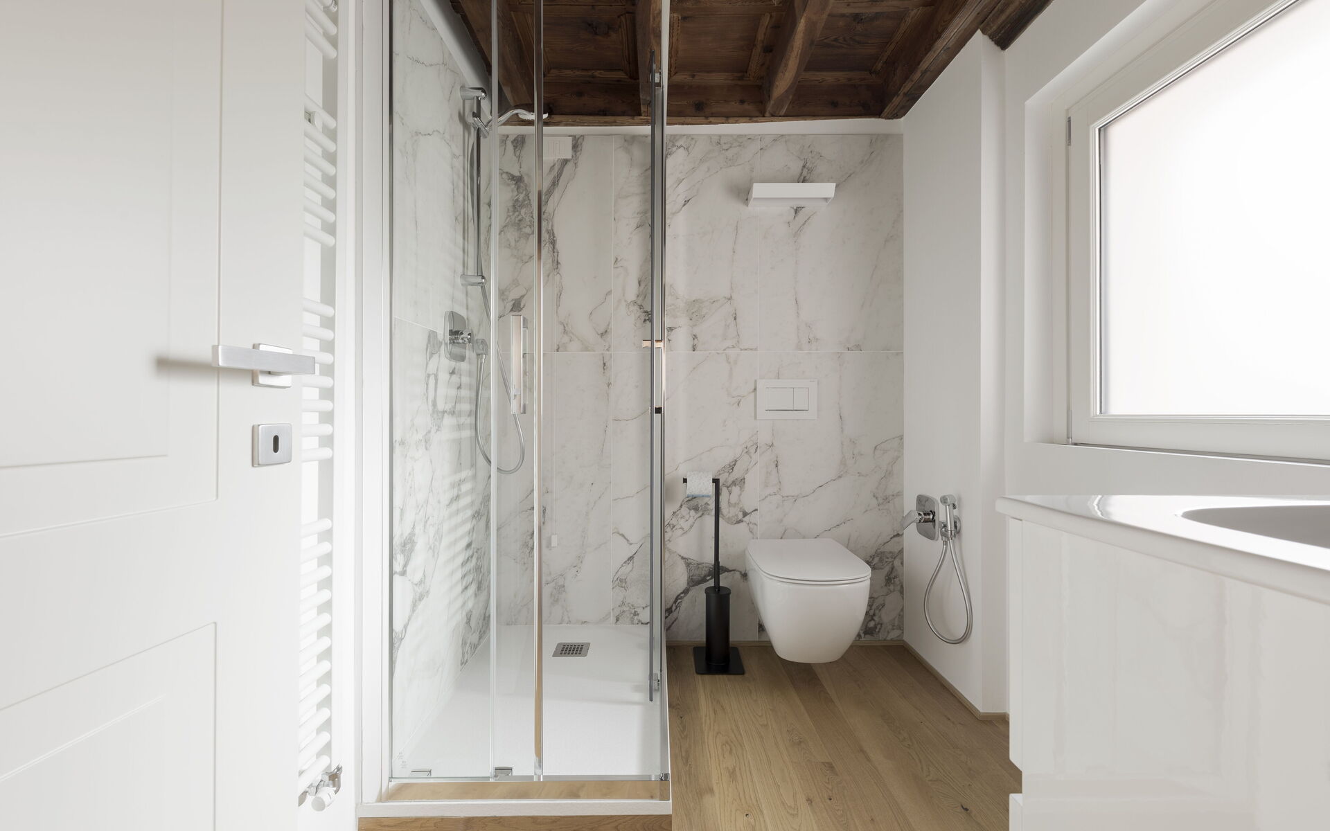 There is also a controlled mechanical ventilation system that maintains an ideal climate by also regulating humidity, to the point that it is recommended to always keep the windows closed.