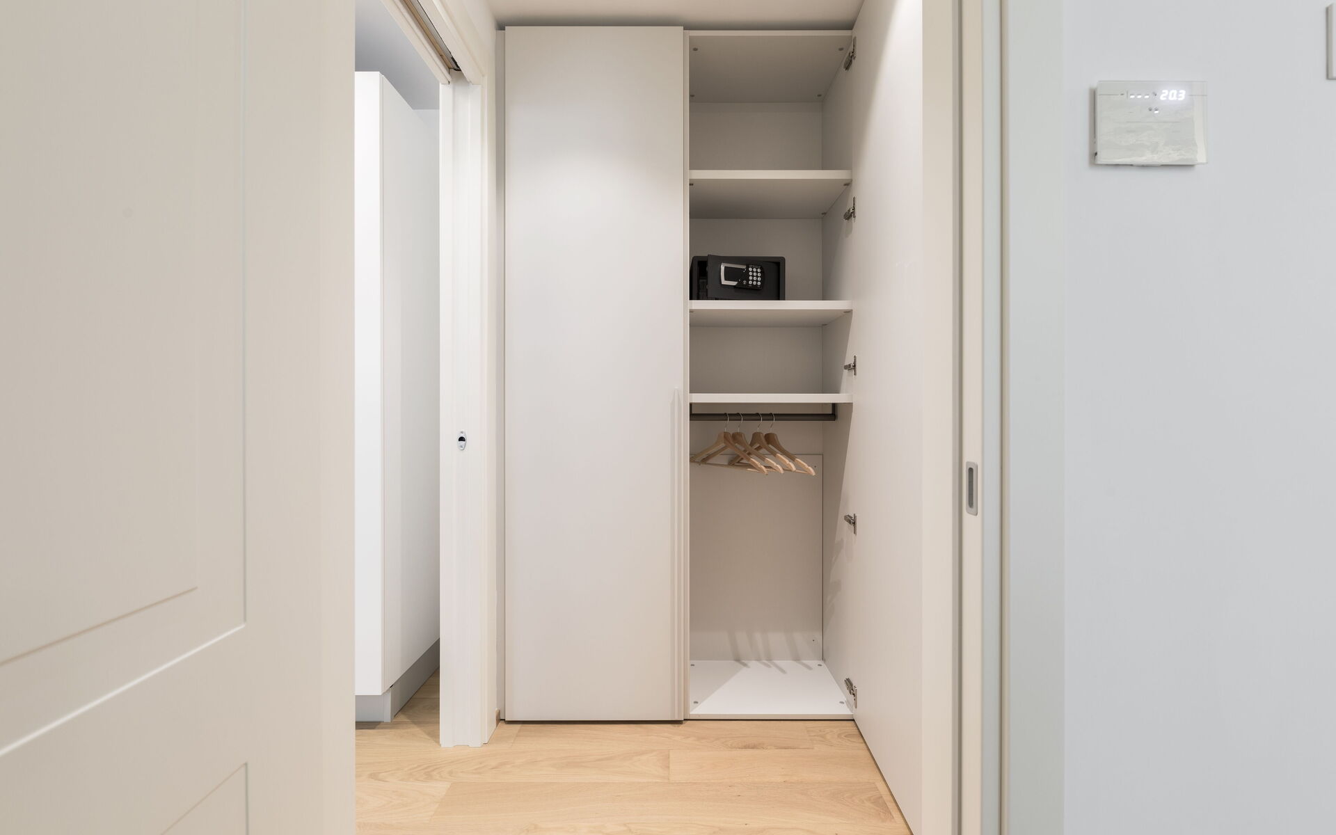 The apartment is equipped with an air conditioning system managed by a remote system that automatically regulates temperatures to avoid wasting energy.
