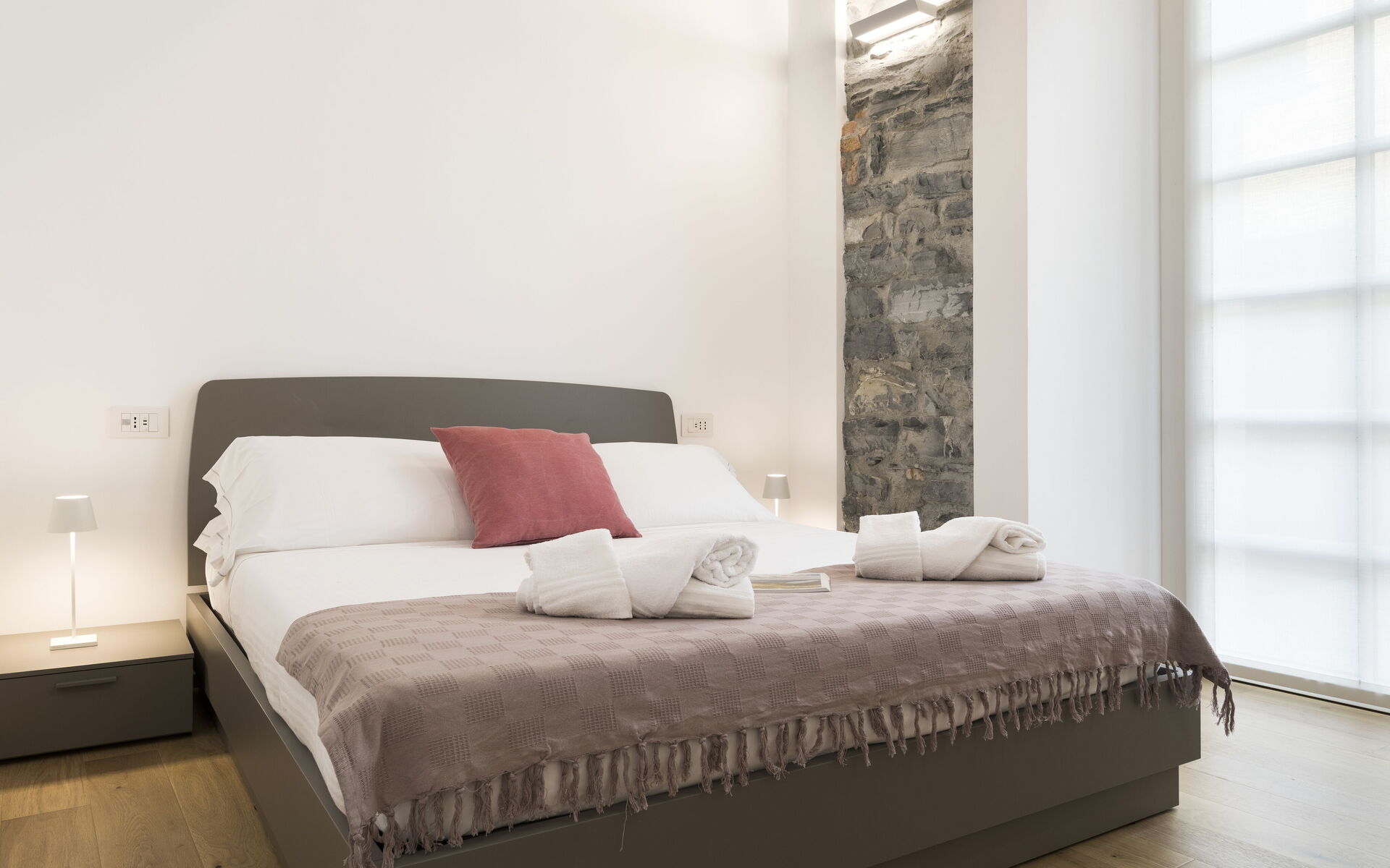 We had two apartments and both were spotlessly clean, nicely designed (exposed stone walls, sleek furnishings), and comfortable. The showers had great water pressure. The apartments felt very secure and safe, and they were very quiet. The location is perfect: 10 minutes walk to train station, even shorter walk to ferry, dozens of great restaurants and shops in immediate area. The host was so friendly and responsive. We would absolutely stay here again.