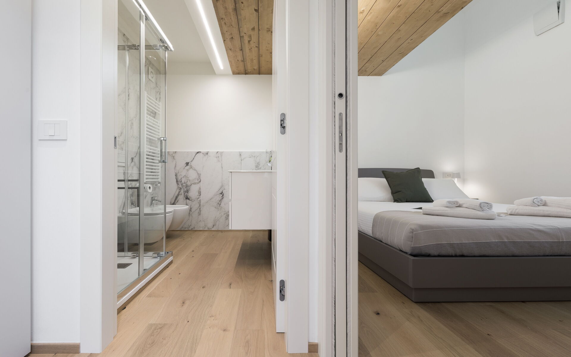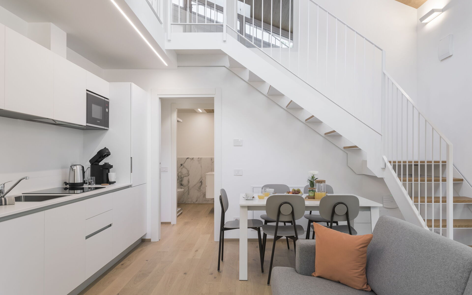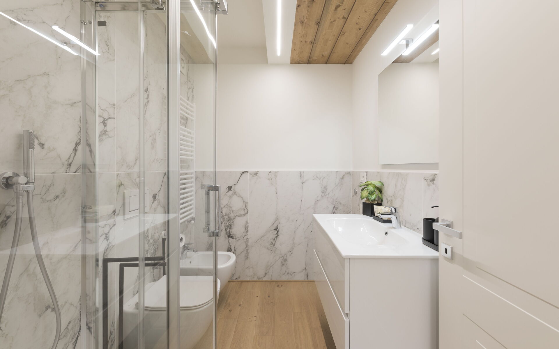 There is also a controlled mechanical ventilation system that maintains an ideal climate by also regulating humidity, to the point that it is recommended to always keep the windows closed.