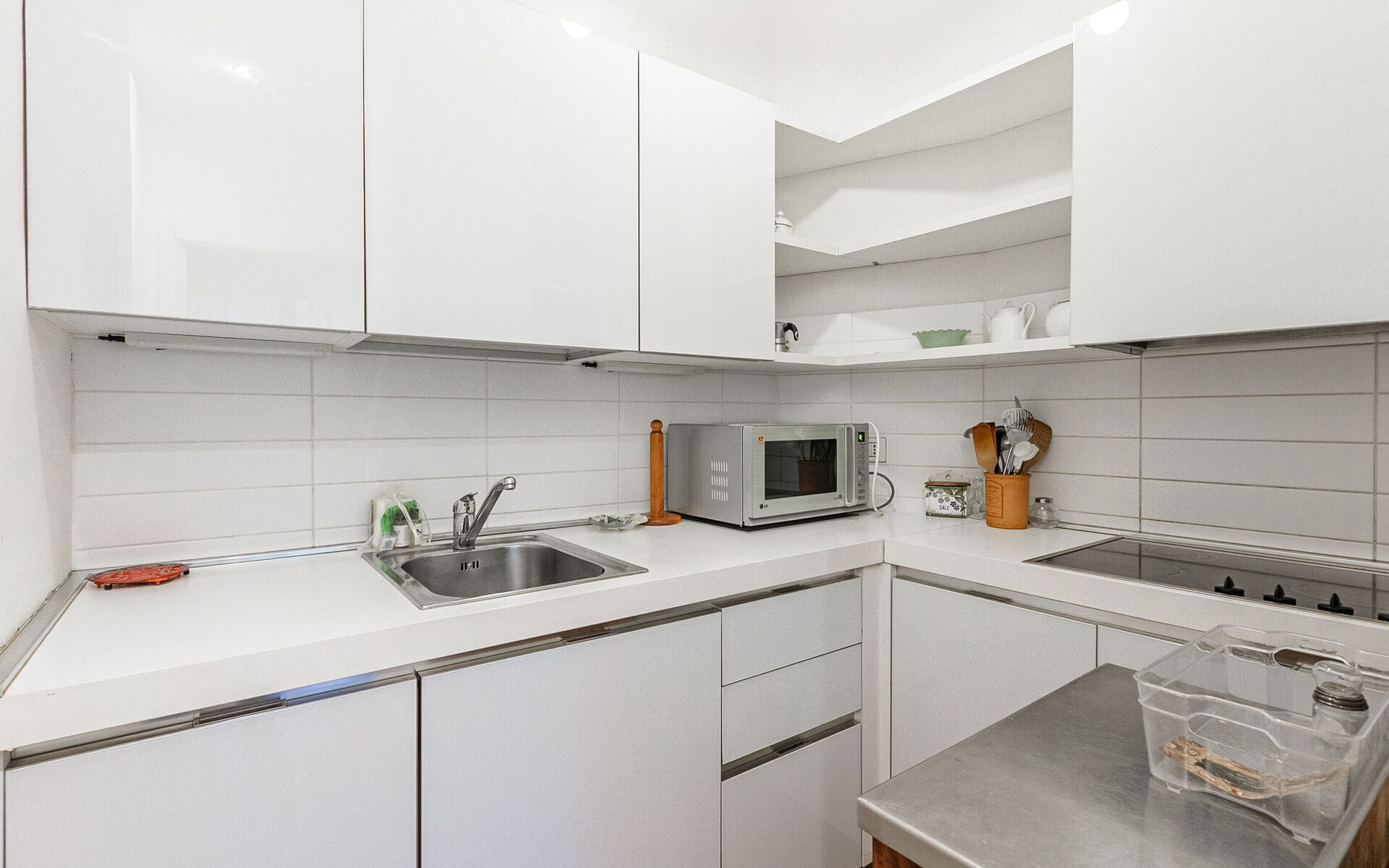 In a separate room we find the kitchen, fully equipped, with electric hob, microwave, dishwasher, fridge and freezer.