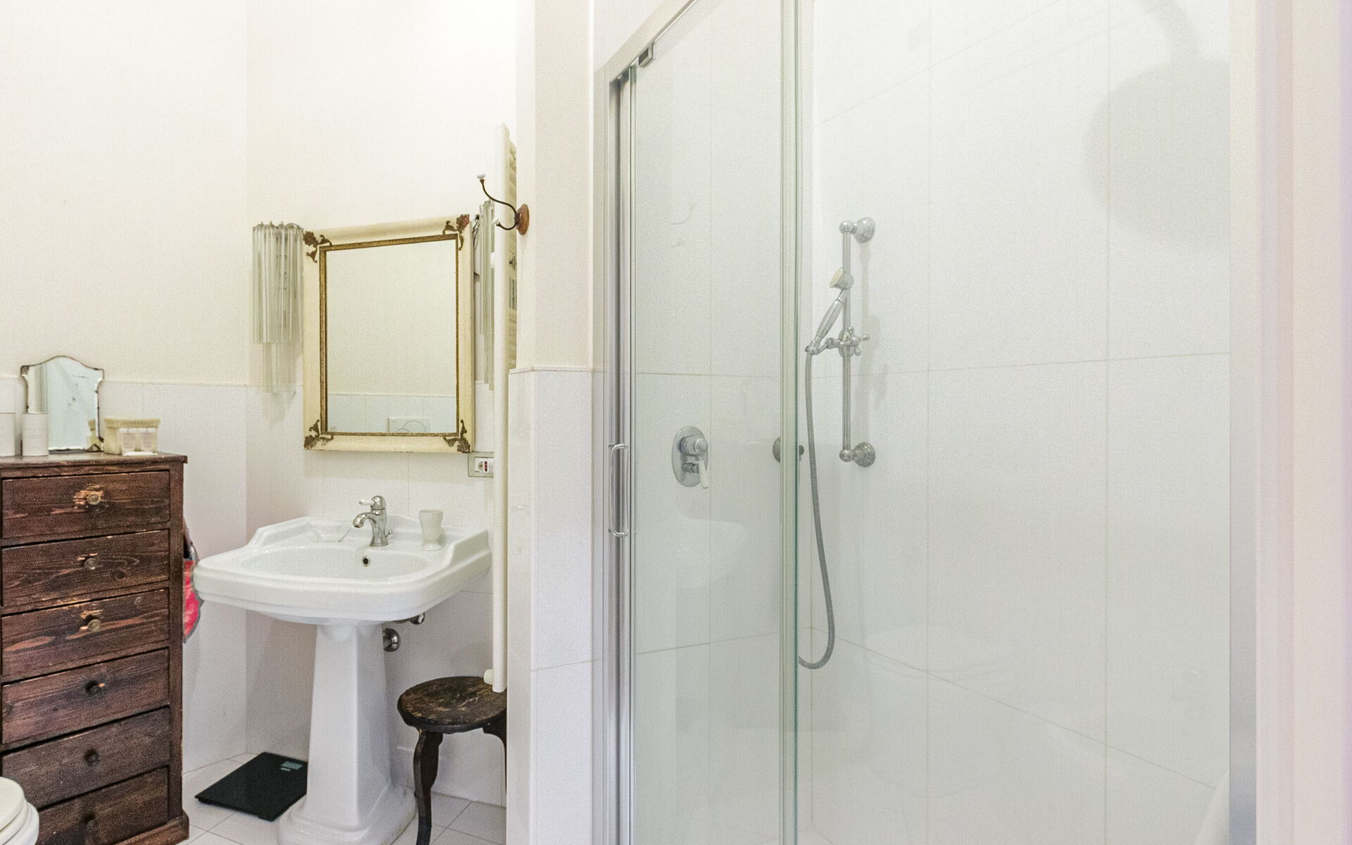 Finally, we have a bathroom complete with sanitary fixtures and a large shower box.
