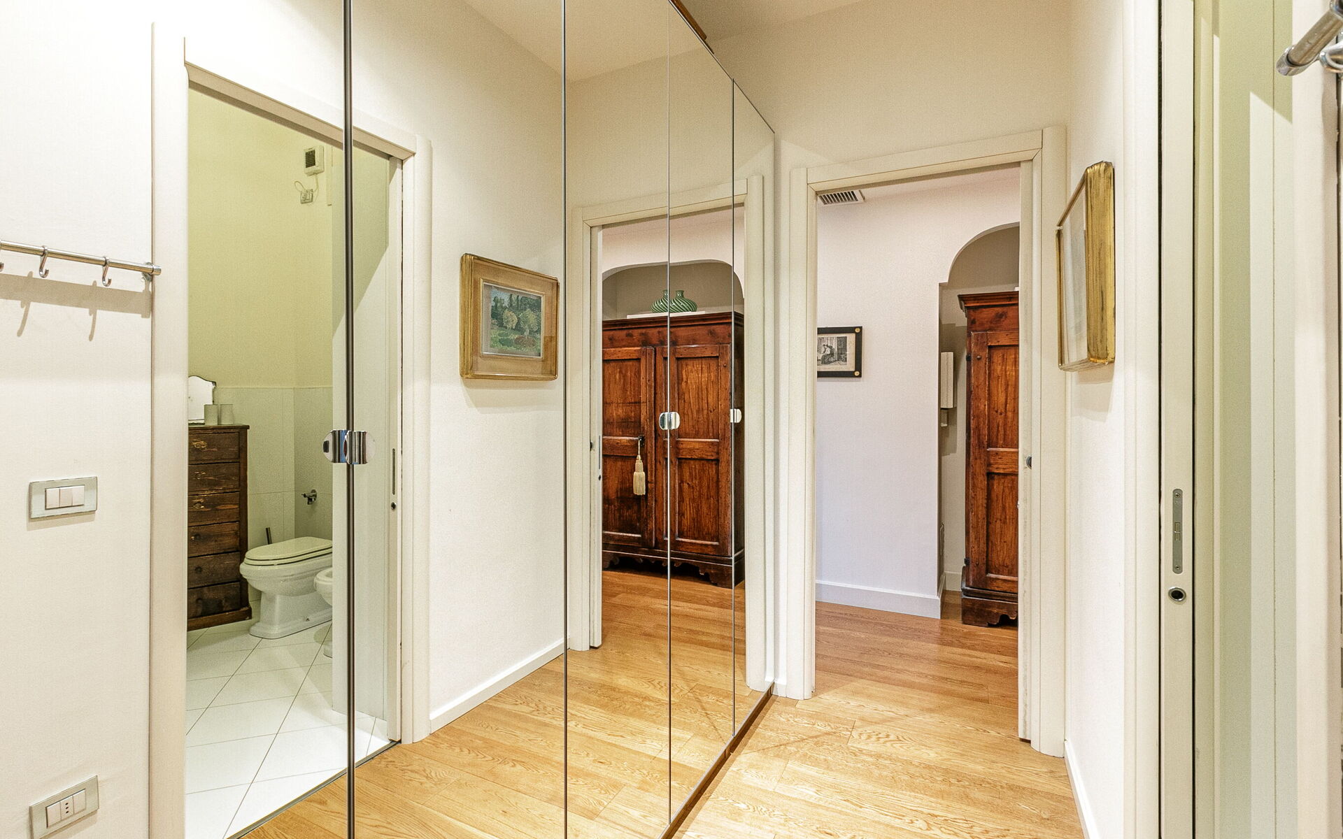 Upon entering you will find the entrance corridor and on the right the laundry room with washing machine and everything needed for cleaning the apartment.