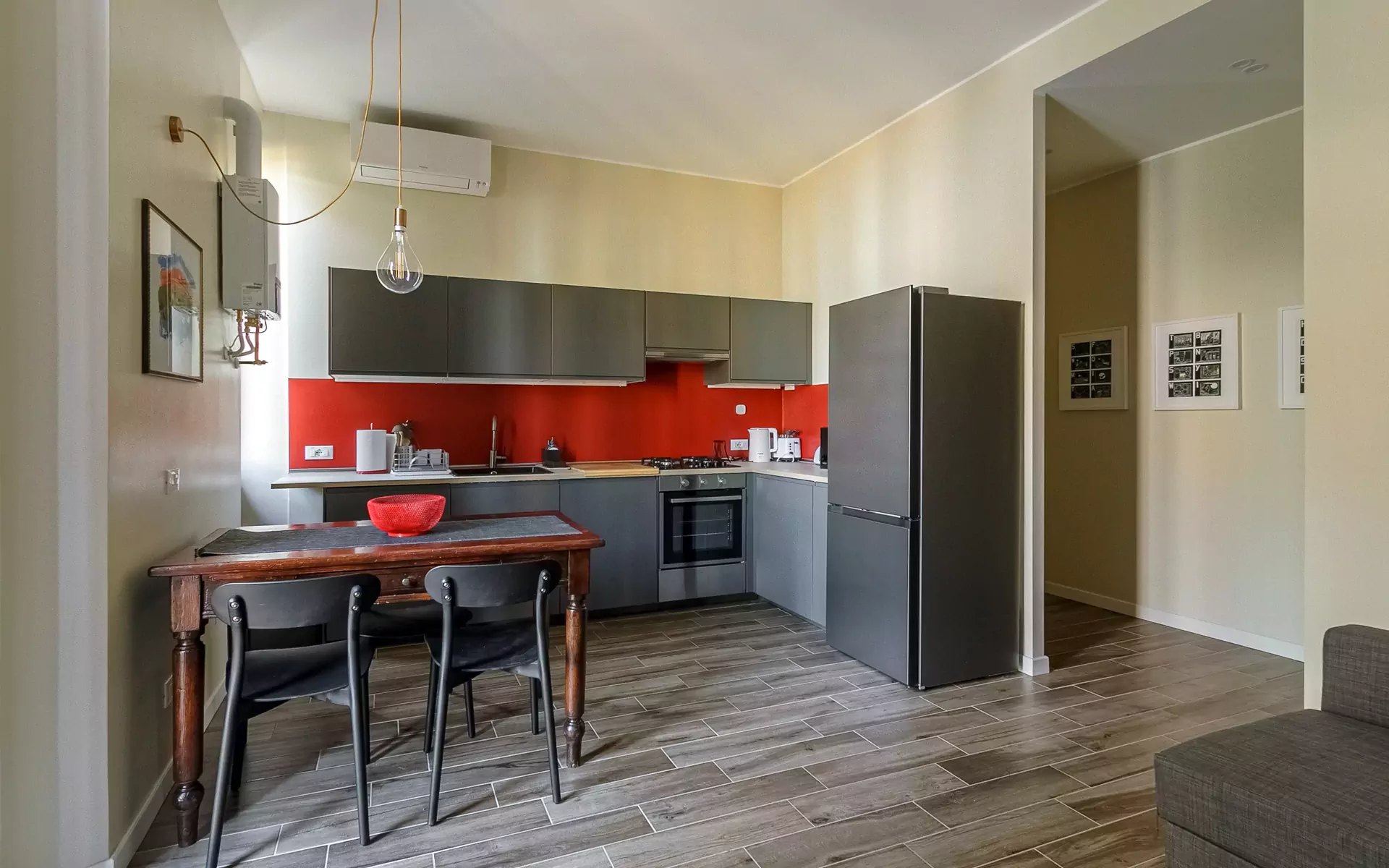 The apartment opens onto a corridor that leads to all rooms: