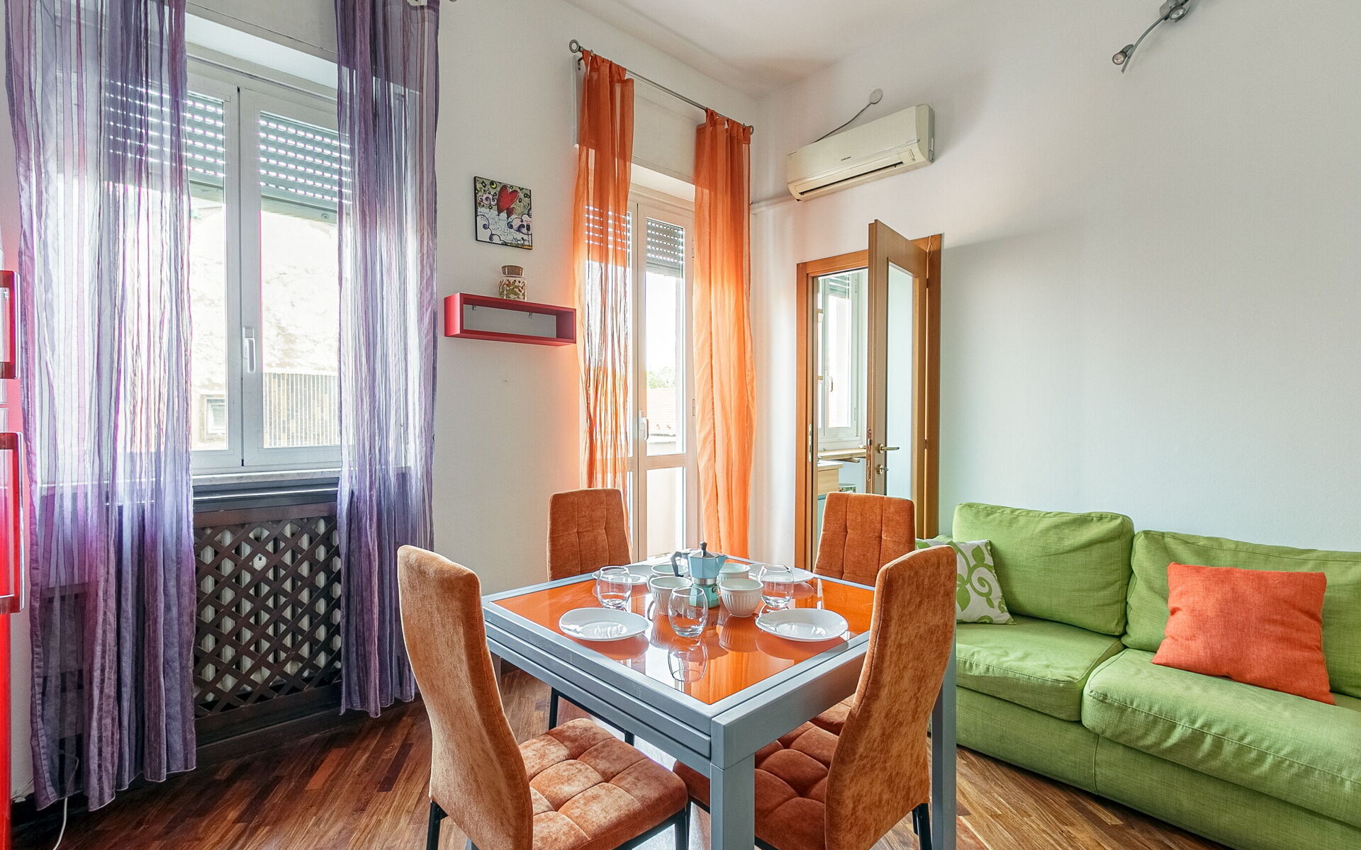 climatisation, table à manger, Sortie sur le balcon, Canapé-lit double, Chaine Hifi, Télévision, Internet WiFi, Bureau