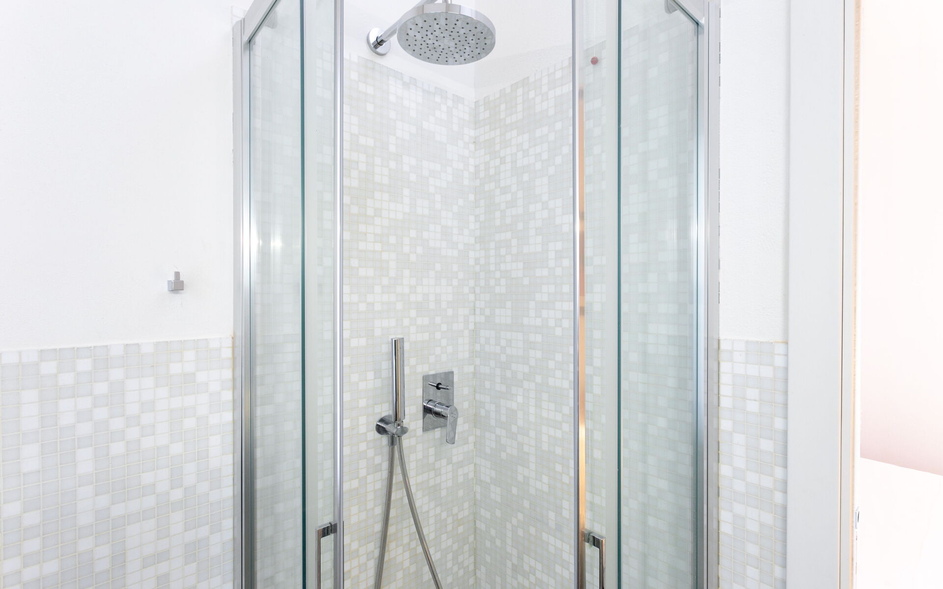 The bedroom has a double bed, bedside tables and a comfortable chest of drawers while in the bathroom with window we find a large shower cubicle, sink and toilet.