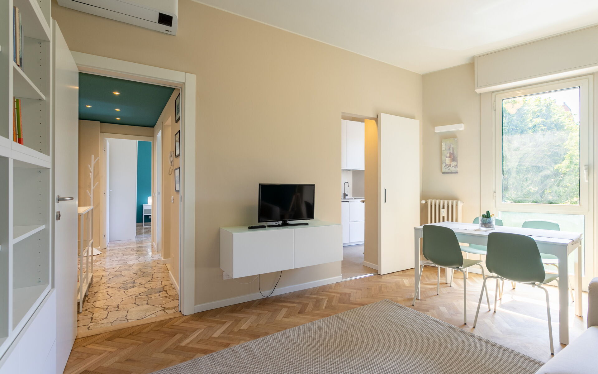 The apartment is quiet and bright.