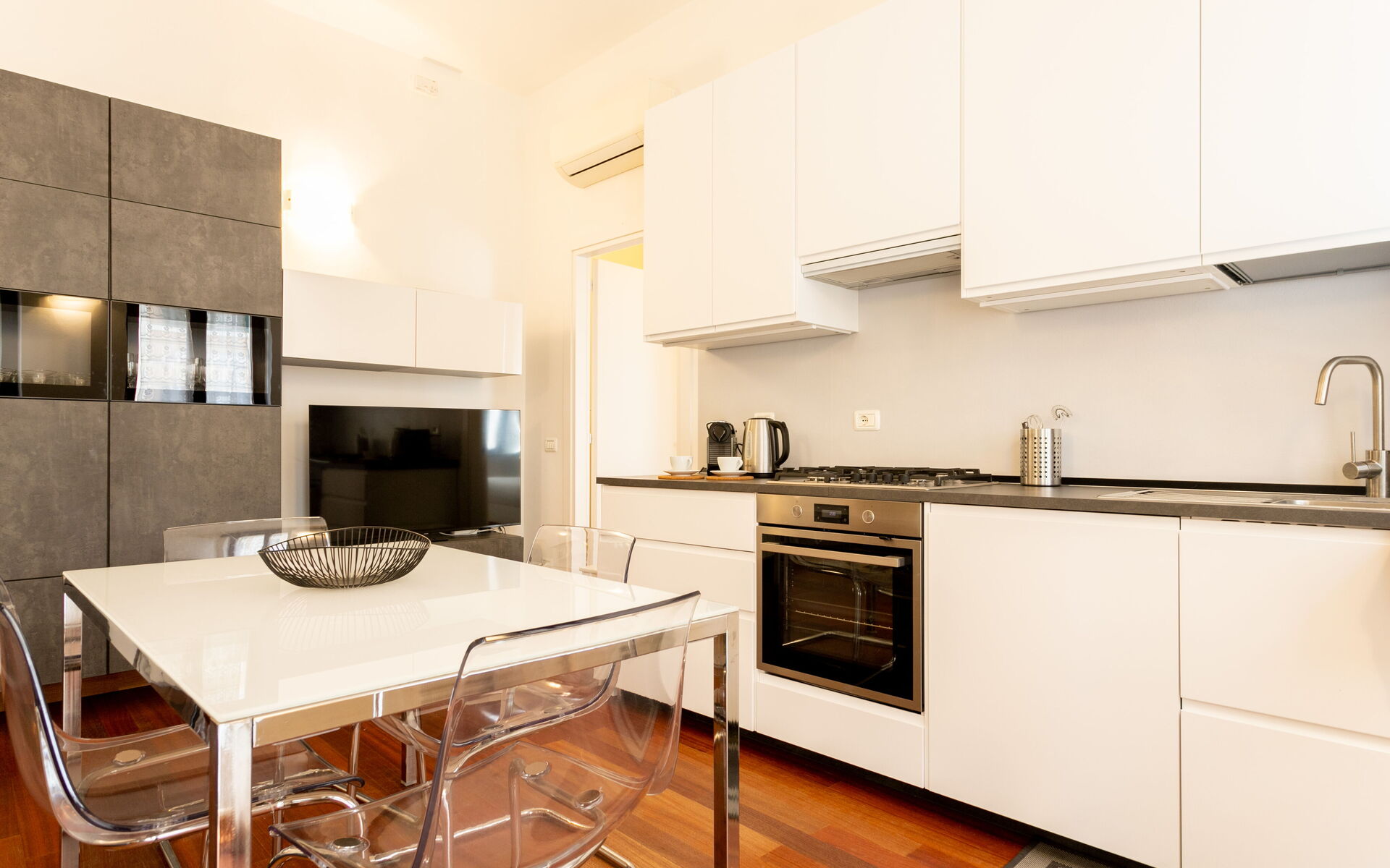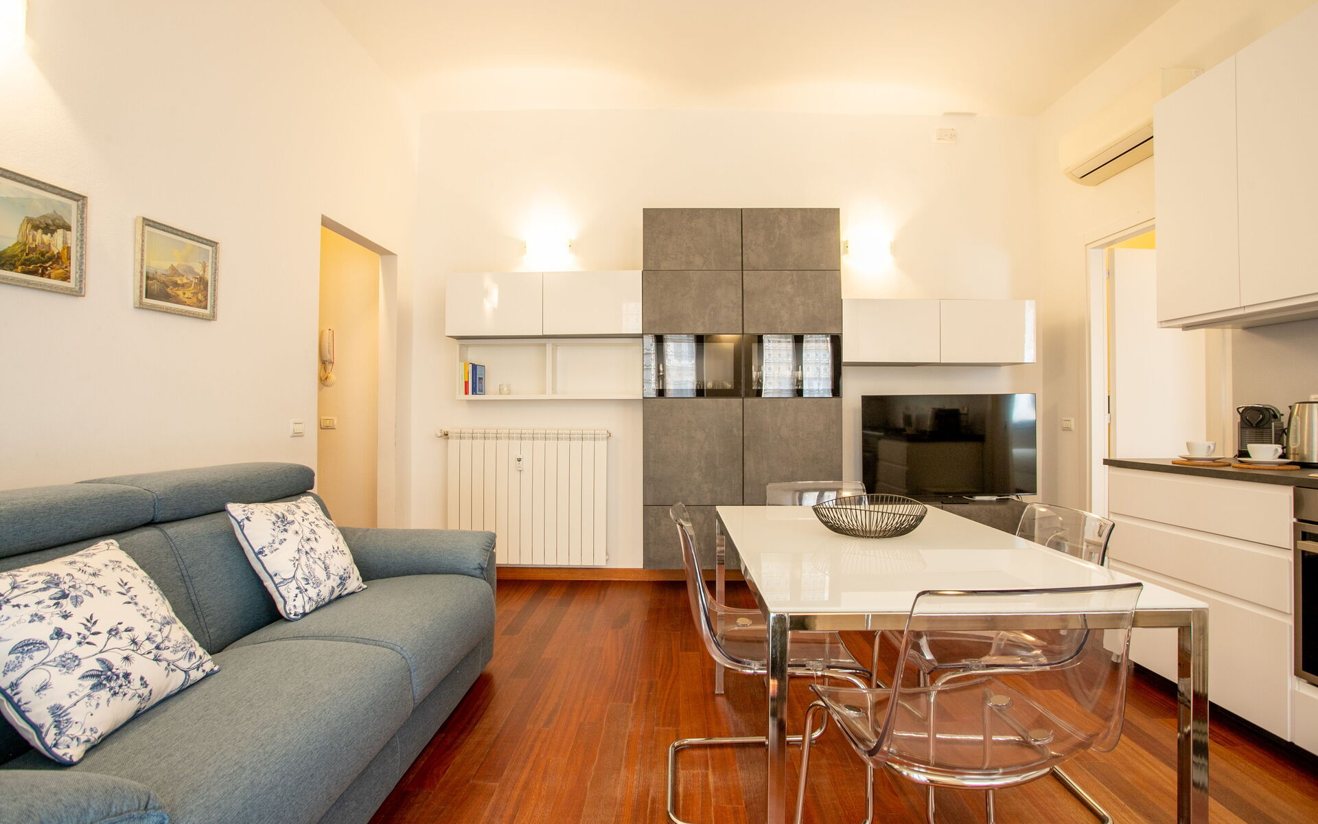 The apartment is equipped with parquet, air conditioning and ultra-fast internet connection.