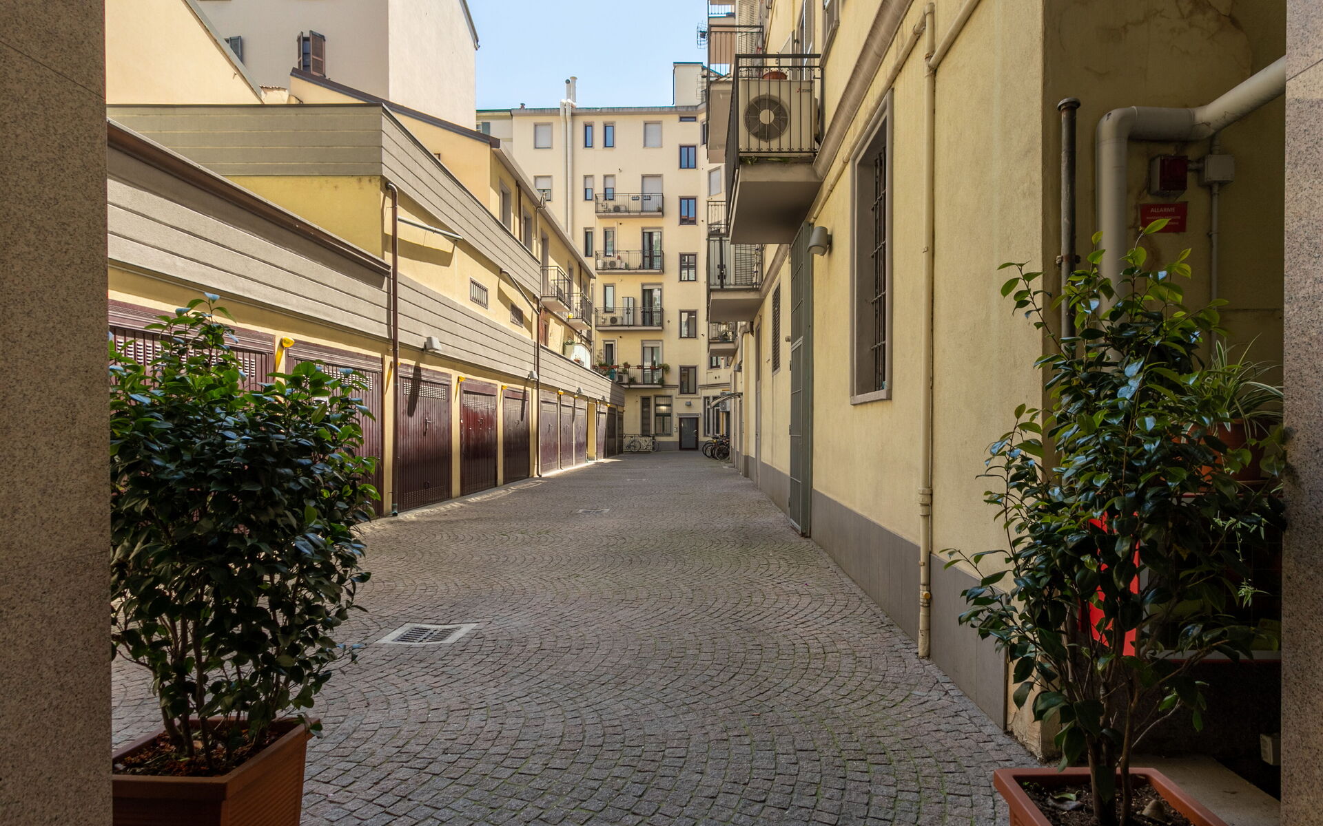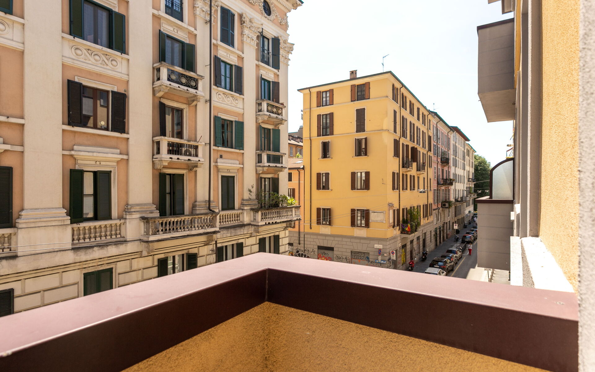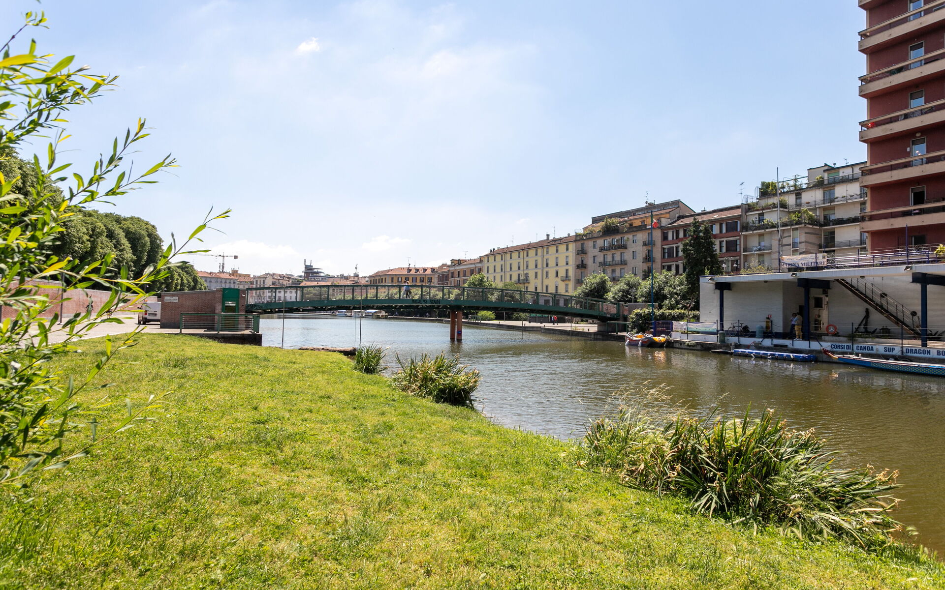 The building is located between the Conca del Naviglio gardens and the shopping area that extends along Corso Genova.