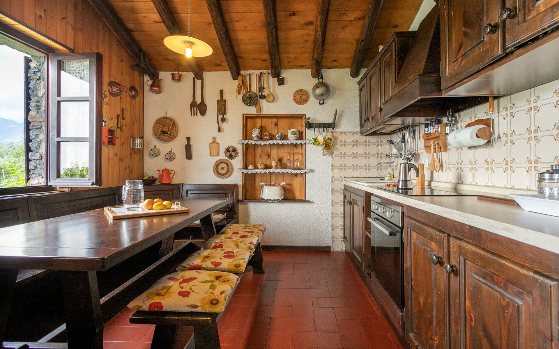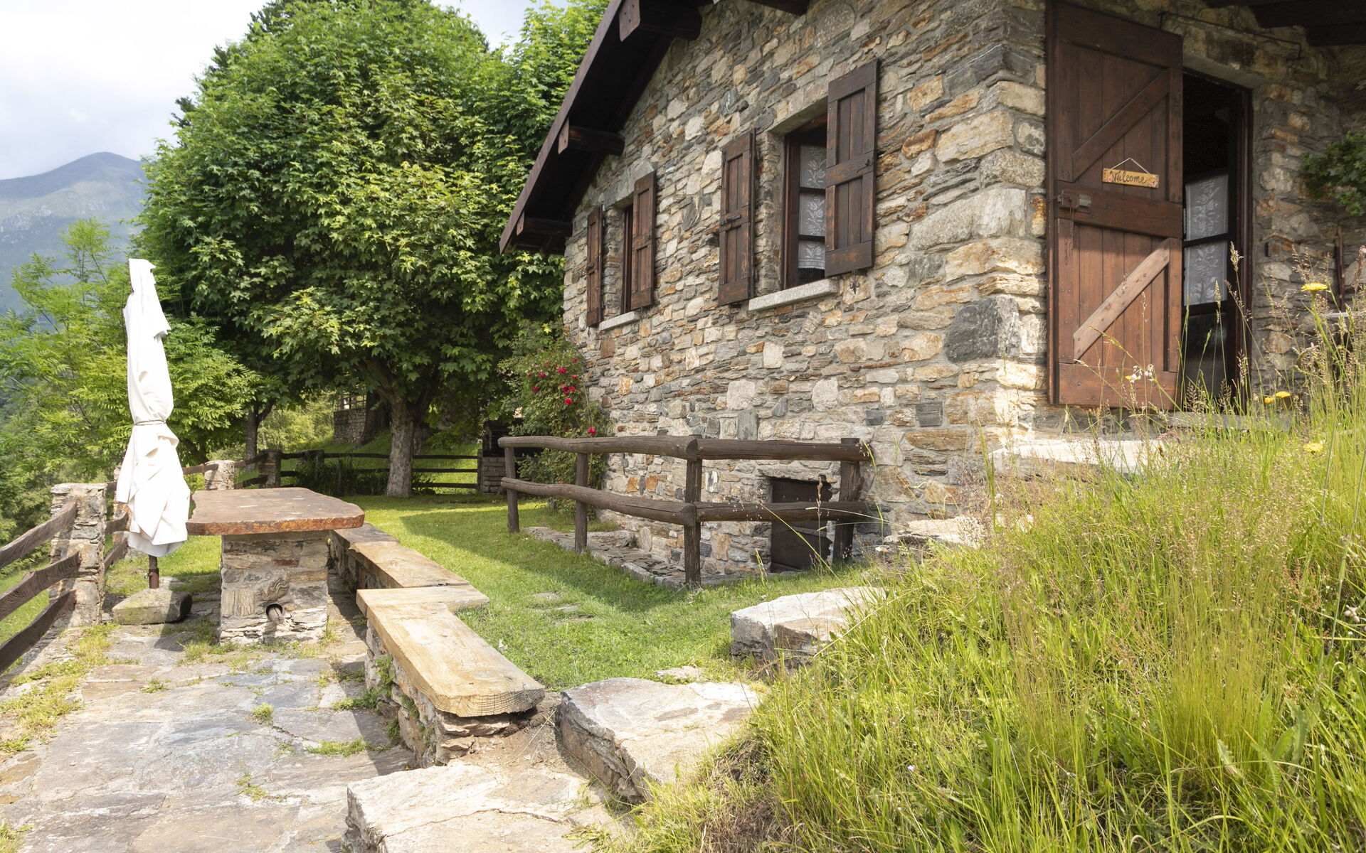 Outside, a charming garden with a typical solid wood table invites you to enjoy meals in the open air. A barbecue area and deckchairs complete the outdoor space, perfect for relaxing and admiring the mountain panorama.