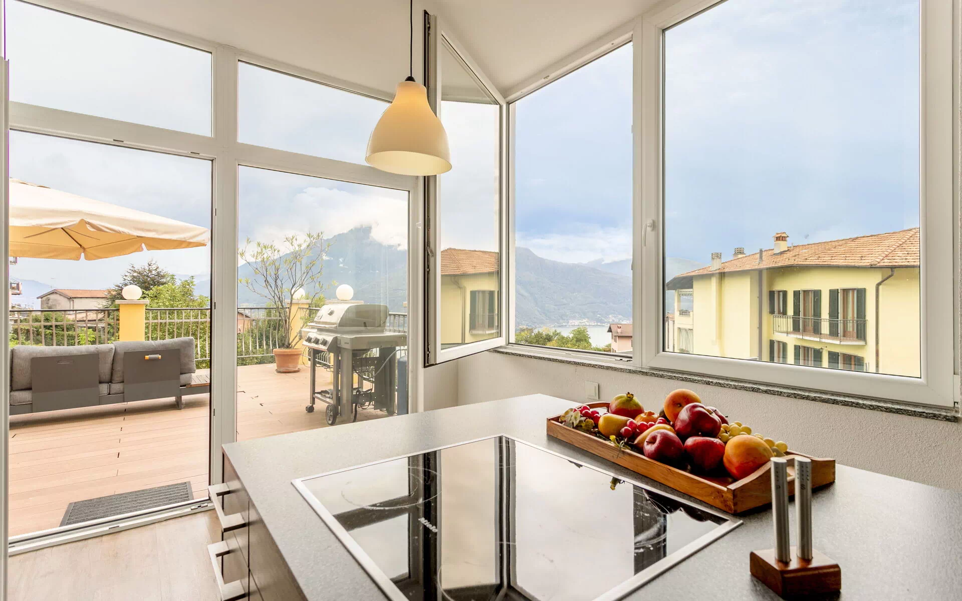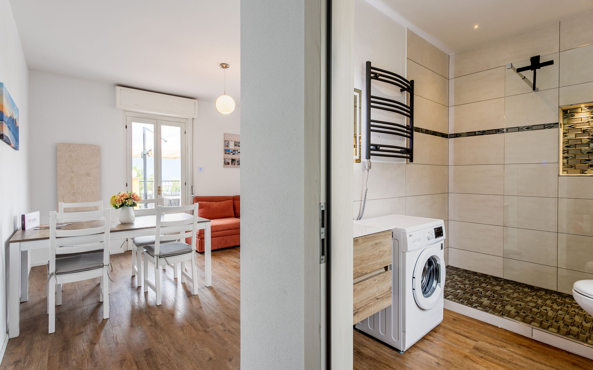 The kitchen is modern and fully equipped, perfect for preparing delicious family meals. The bathroom is spacious and equipped with a large shower and a washing machine for your convenience. From the apartment there is direct access to a large shared terrace, where you will find a private table and a barbecue to enjoy outdoor lunches and dinners.