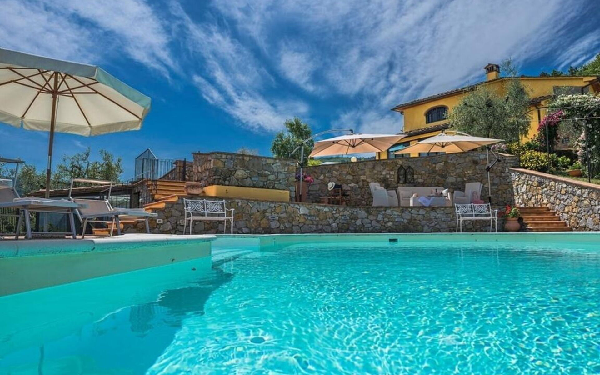 Stylistically pleasant and elegant villa with private pool and garden, located in the Pistoia countryside.
